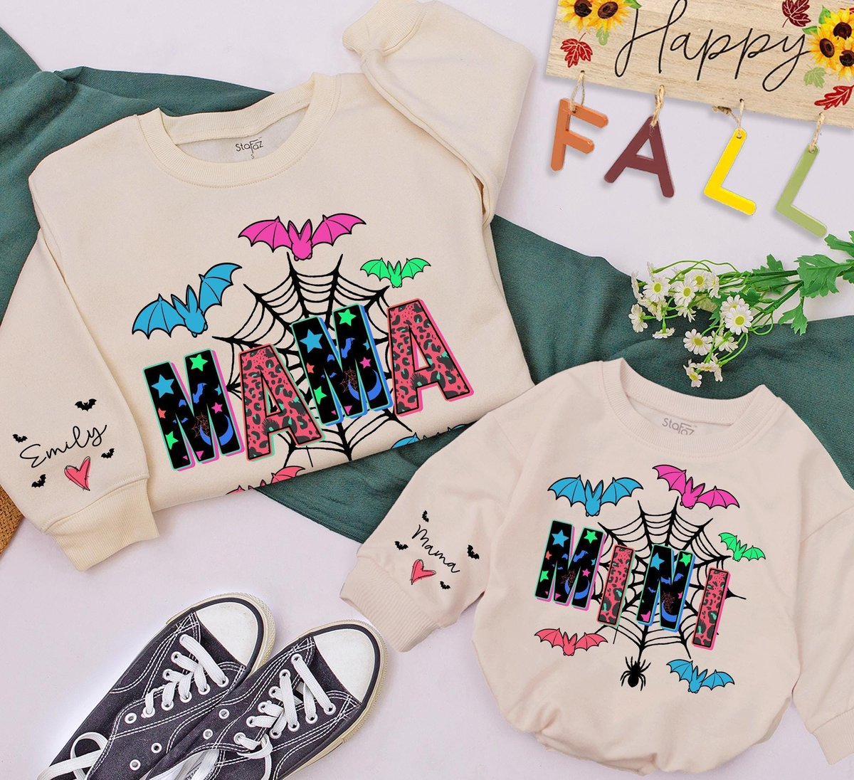 Mama and Mini Halloween Sweatshirts Baby romper gift Matching Family Outfits Best Gifts for Hallowee 433