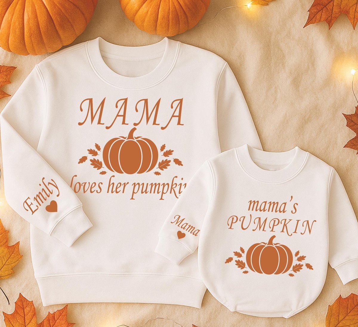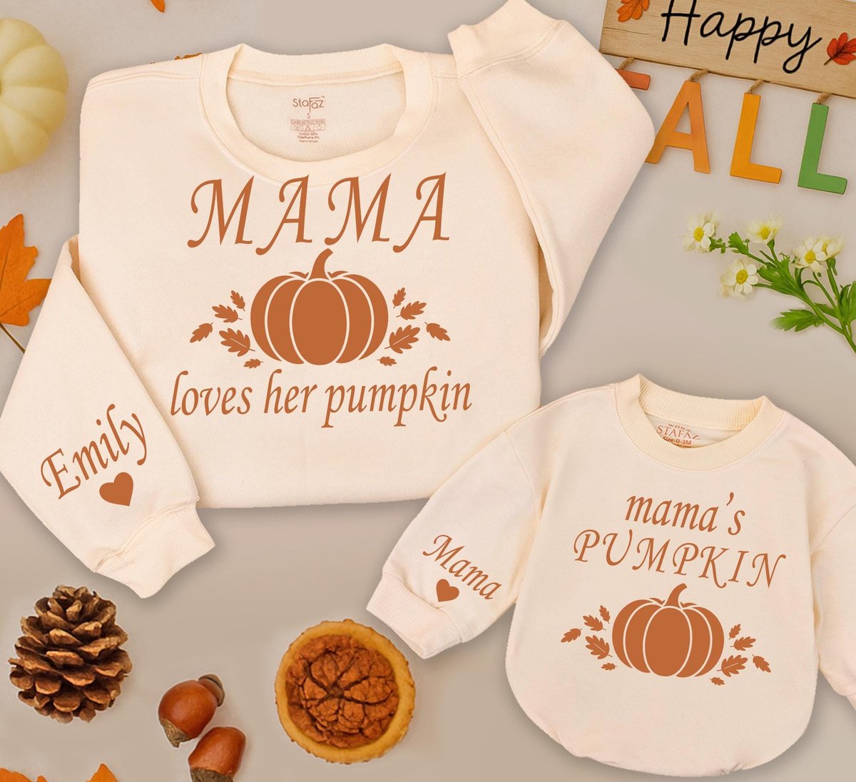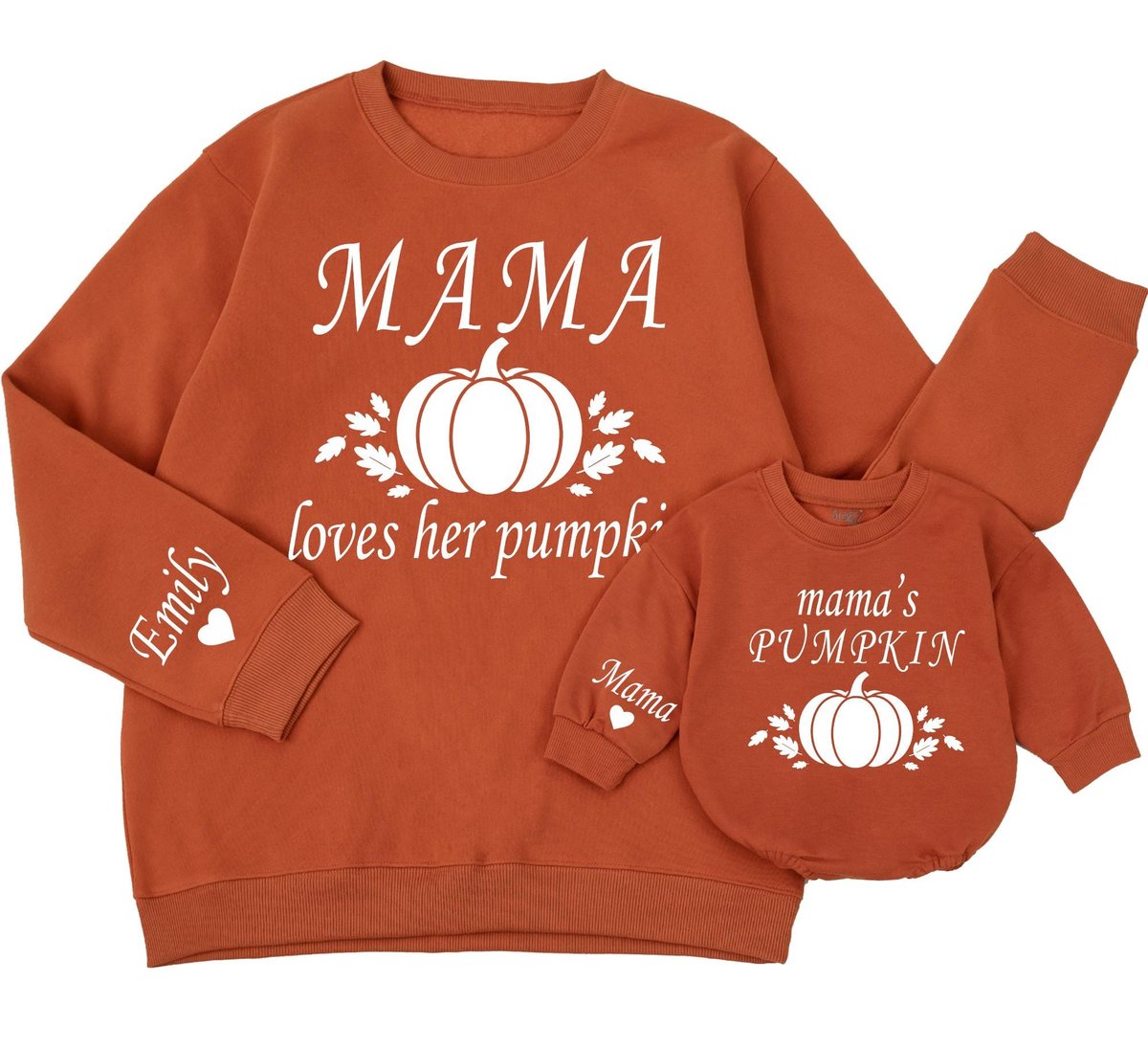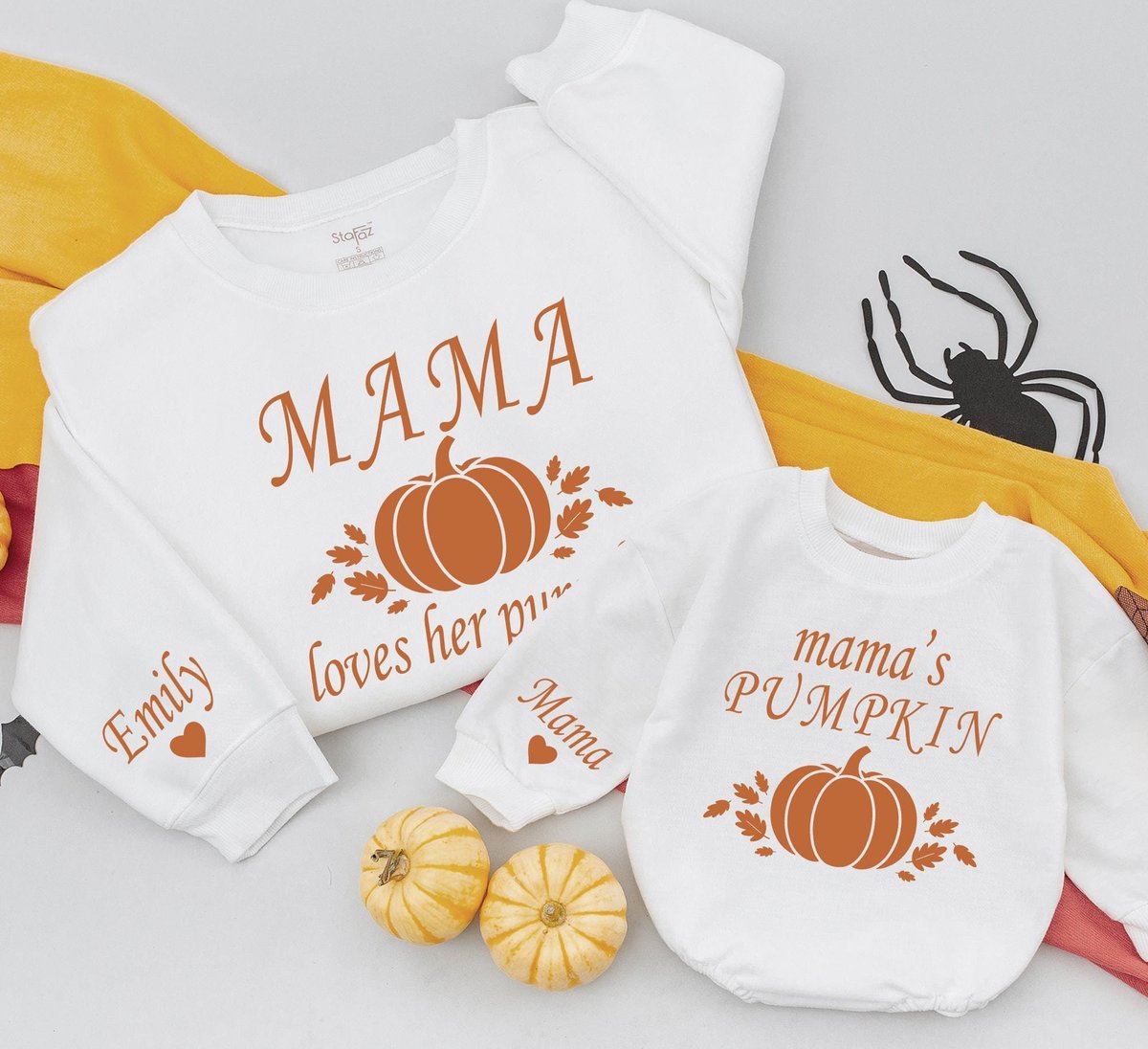 Mama loves her pumpkin and Mamas Pumpkin Sweatshirts Mommy and Me Sweaters Personalized Matching Out 434