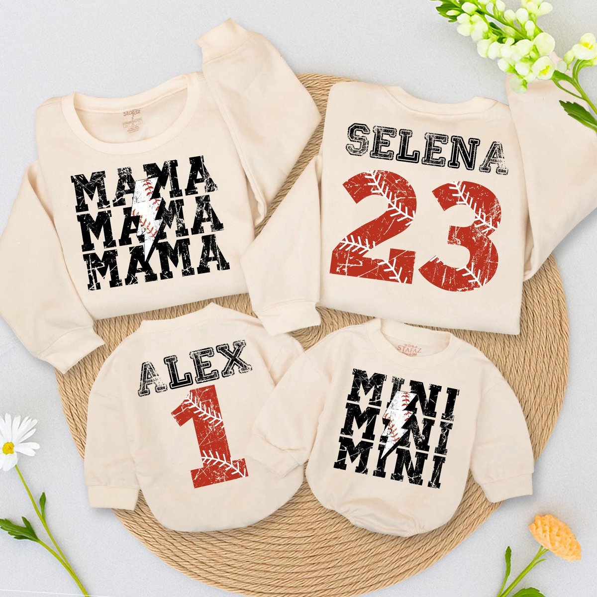 Personalize Baseball mama and mini Sweatshirt Baseball Season Mom and baby outfits Mom Sport Sweater 433