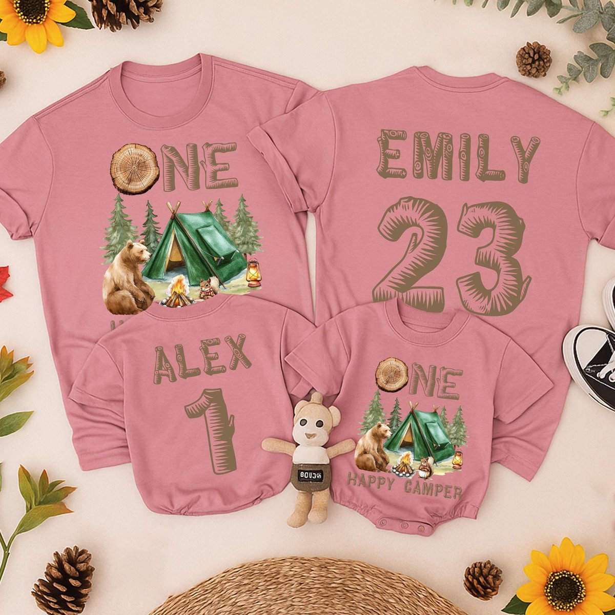 Personalized Birthday Family Matching Shirt Custom Camping First Birthday Shirt One Happy Camper 1st 434