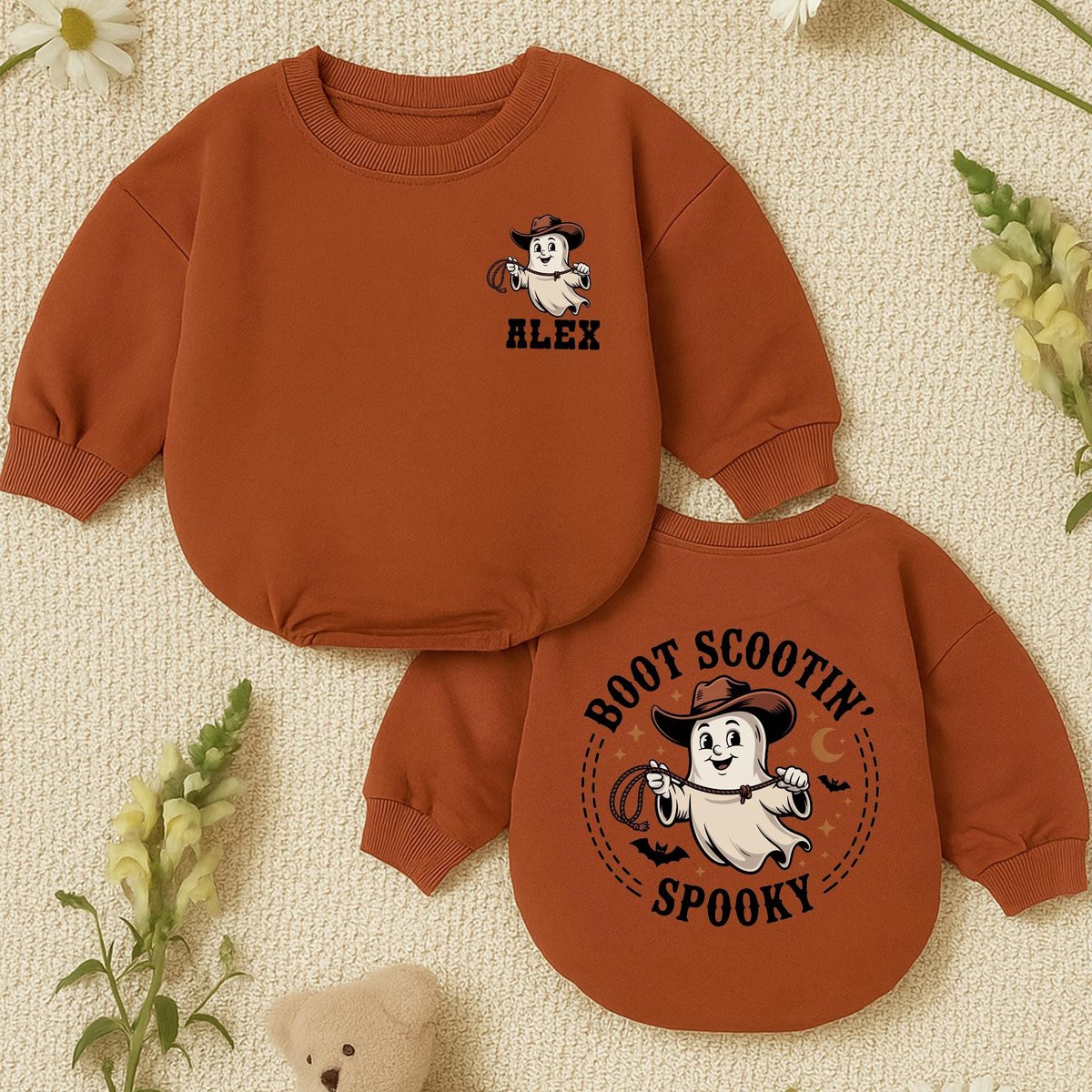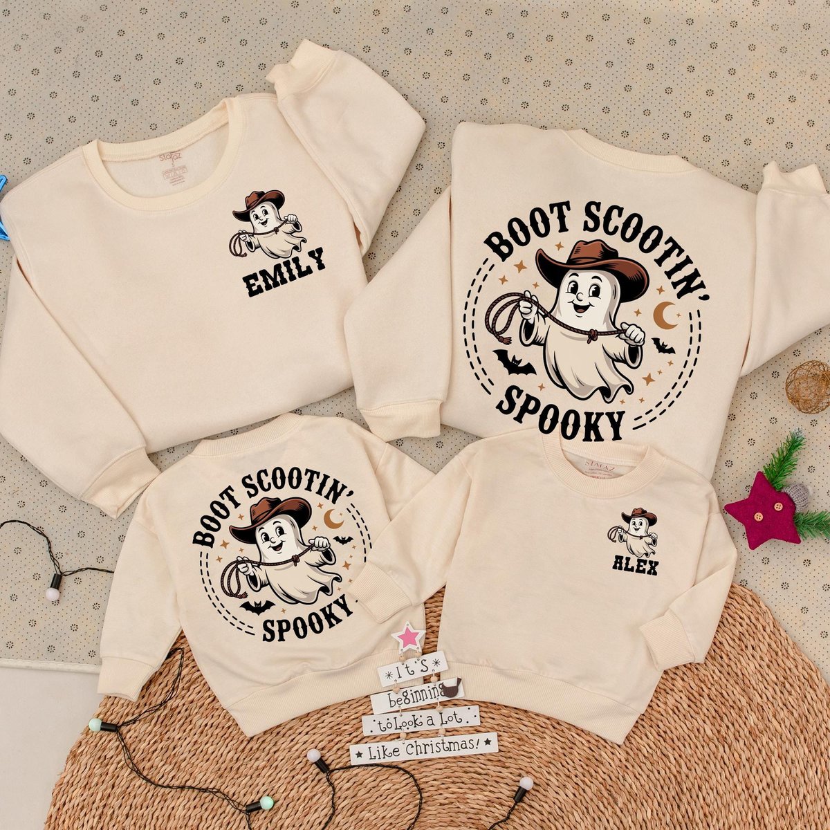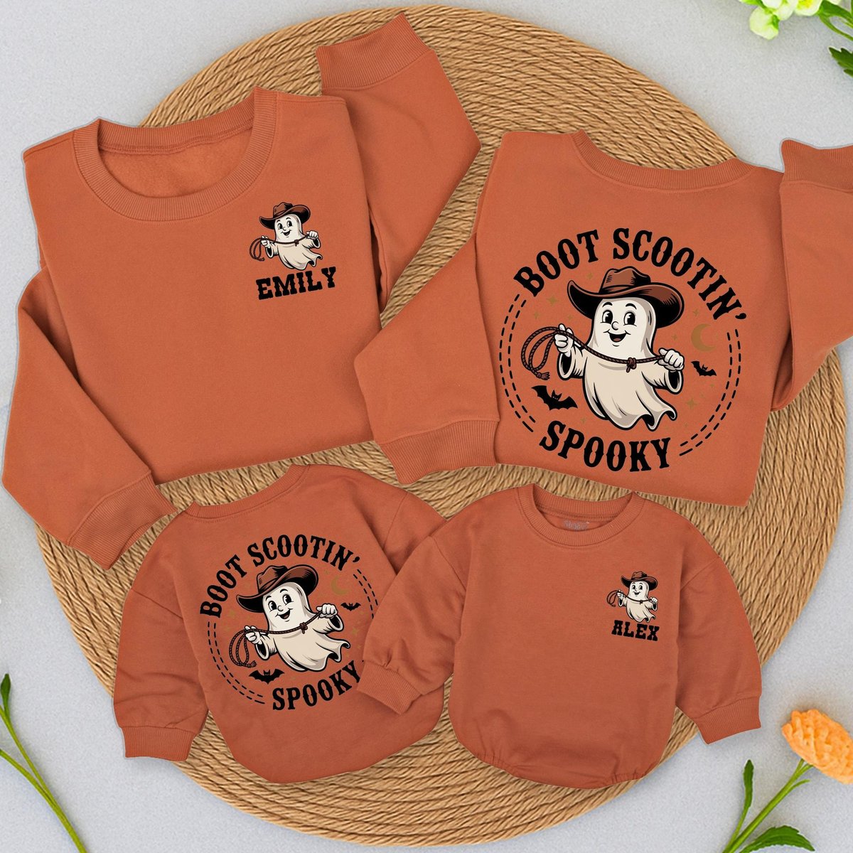 Personalized Boot Scooting Spooky Romper Halloween Family sweatshirt Baby Shower Mommy and me Cowboy 434