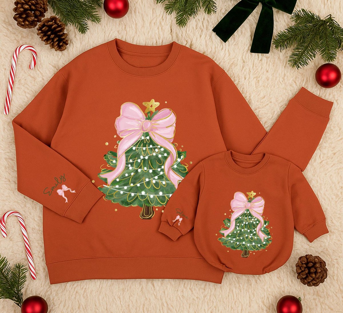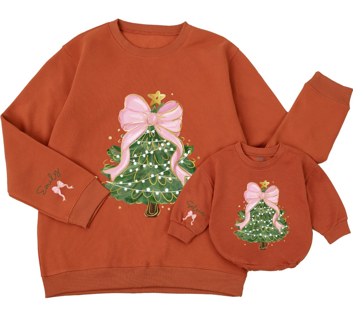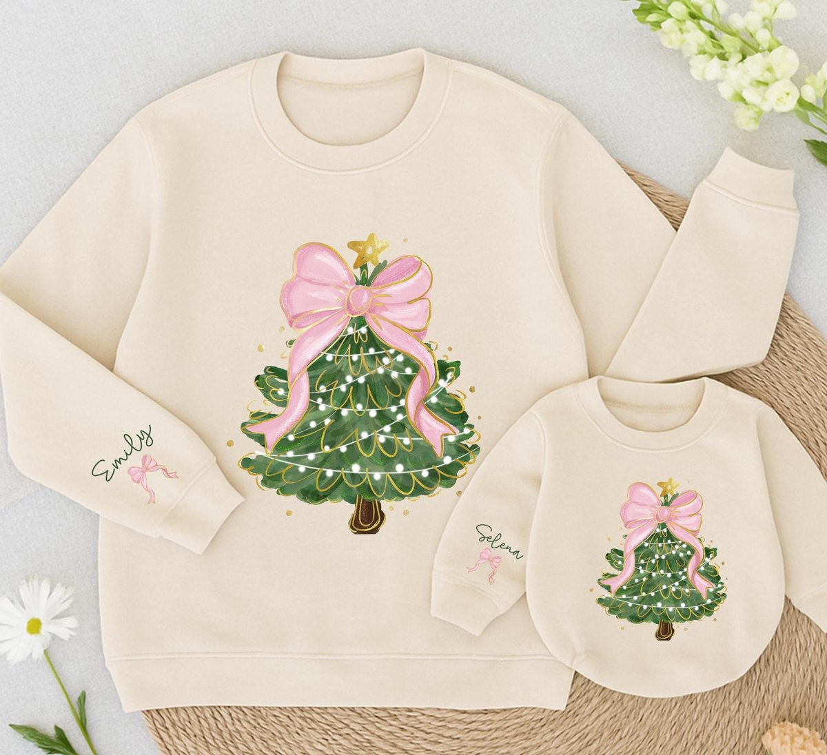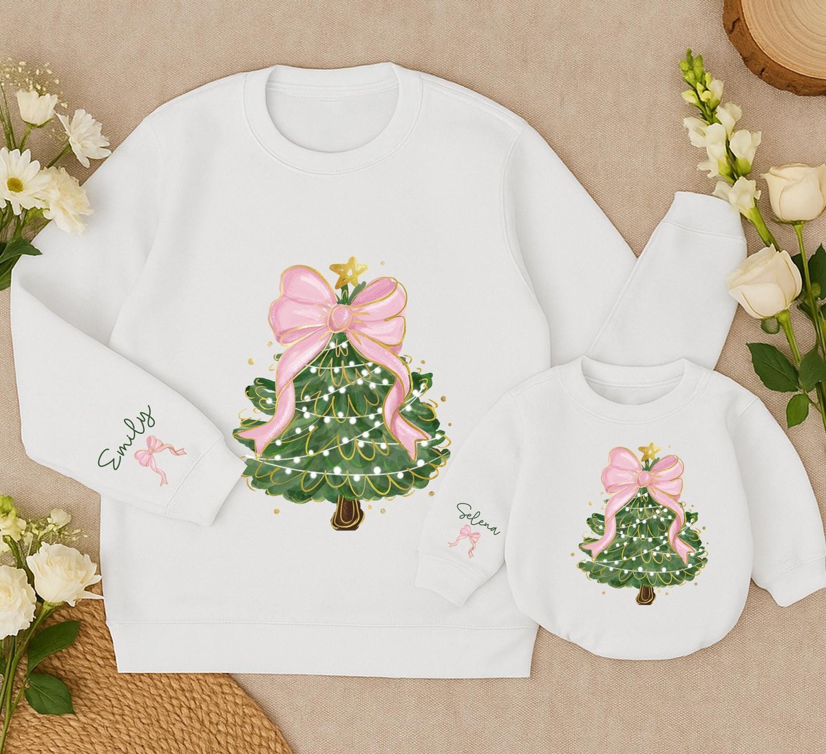 Personalized Christmas Tree Bow Sweatshirt Mom And Baby Matching Shirt Daughter Kid Sweatshirt Chris 436