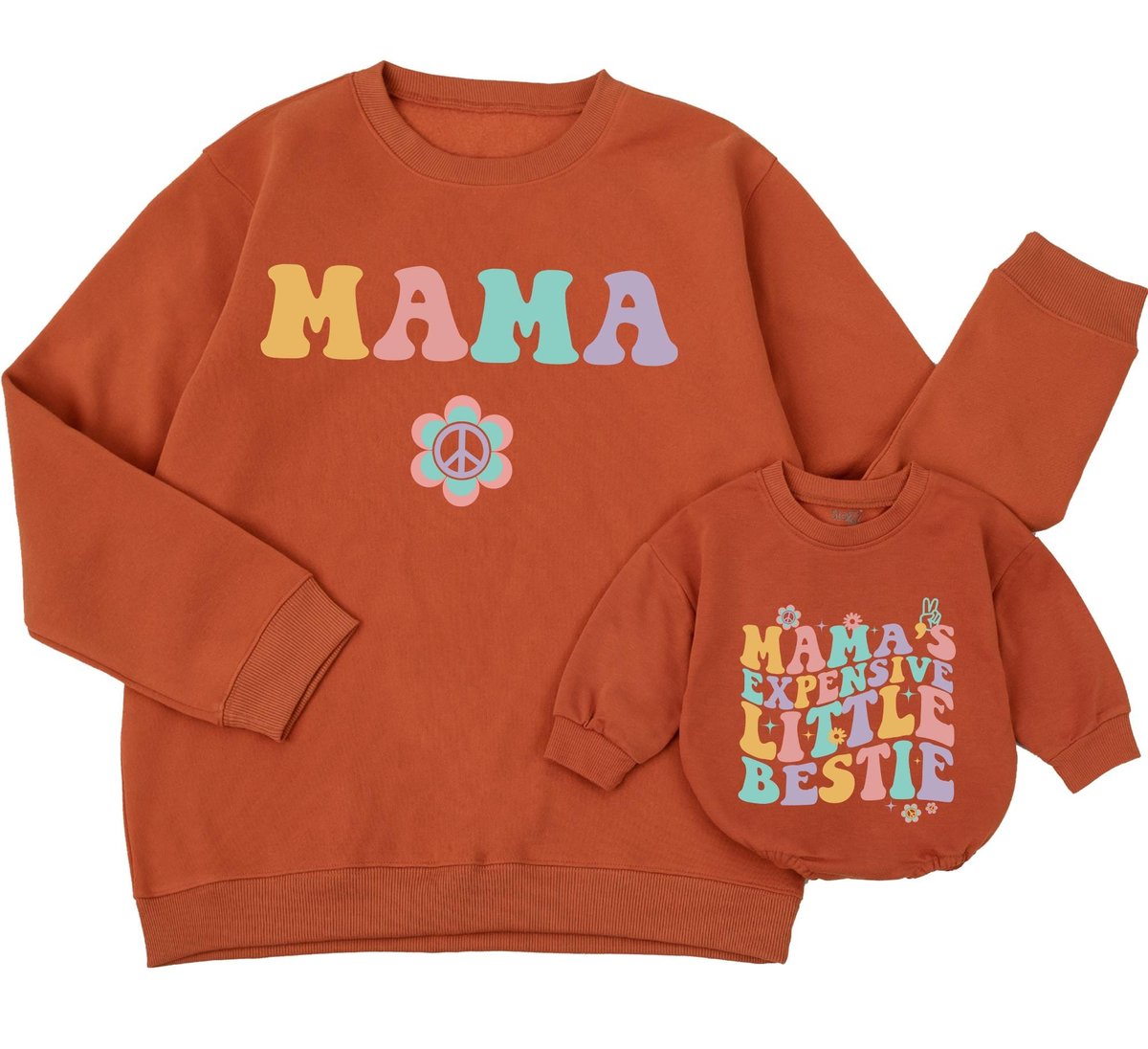 Personalized Mama and Mama’s Expensive Little Bestie Sweatshirt Retro Infant Mommy and Me Retro Mat 434