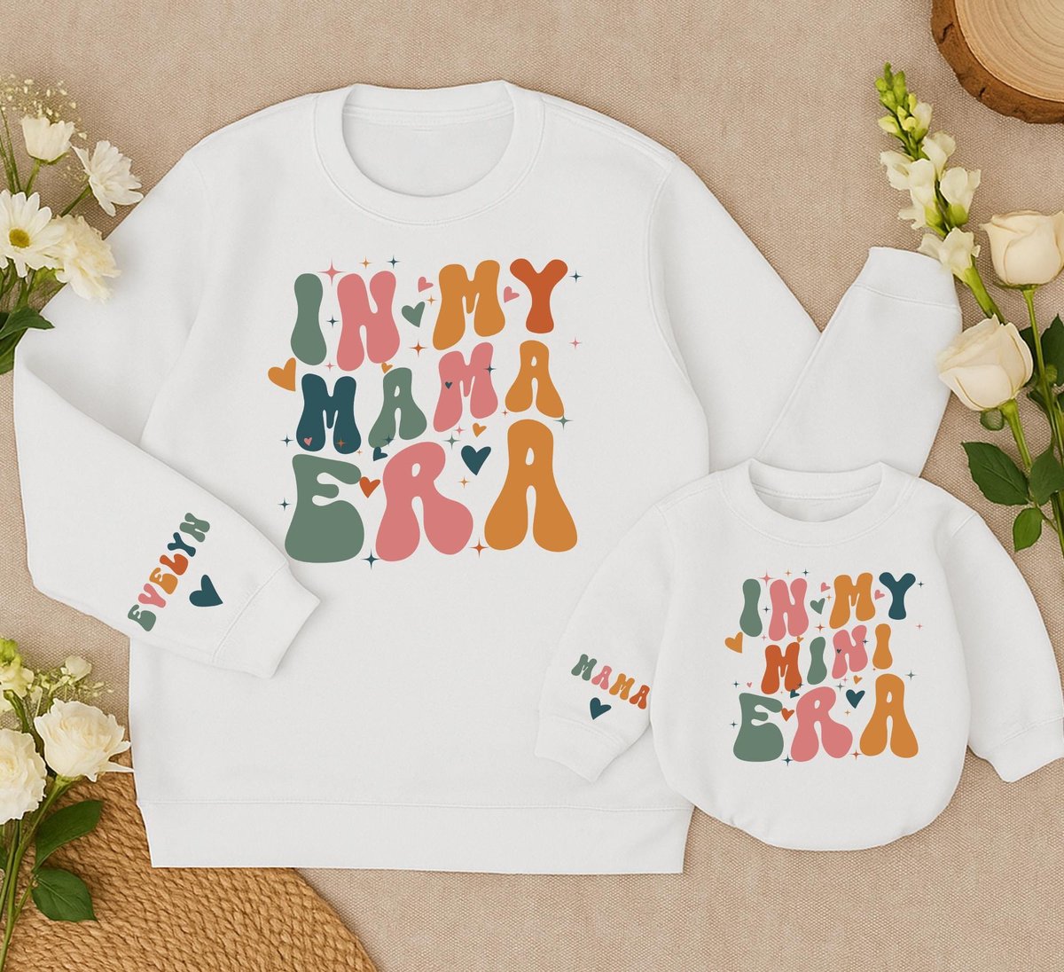 Personalized Mama And Mini Sweatshirt In my mama era retro Sweatshirt Groovy matching family sweatsh 433