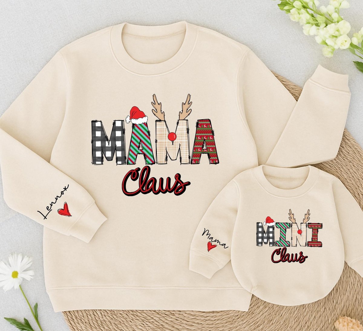 Personalized Mama And Mini Claus Sweatshirt Mom And Baby Matching Family Daughter Kid Sweatshirt Chr 436