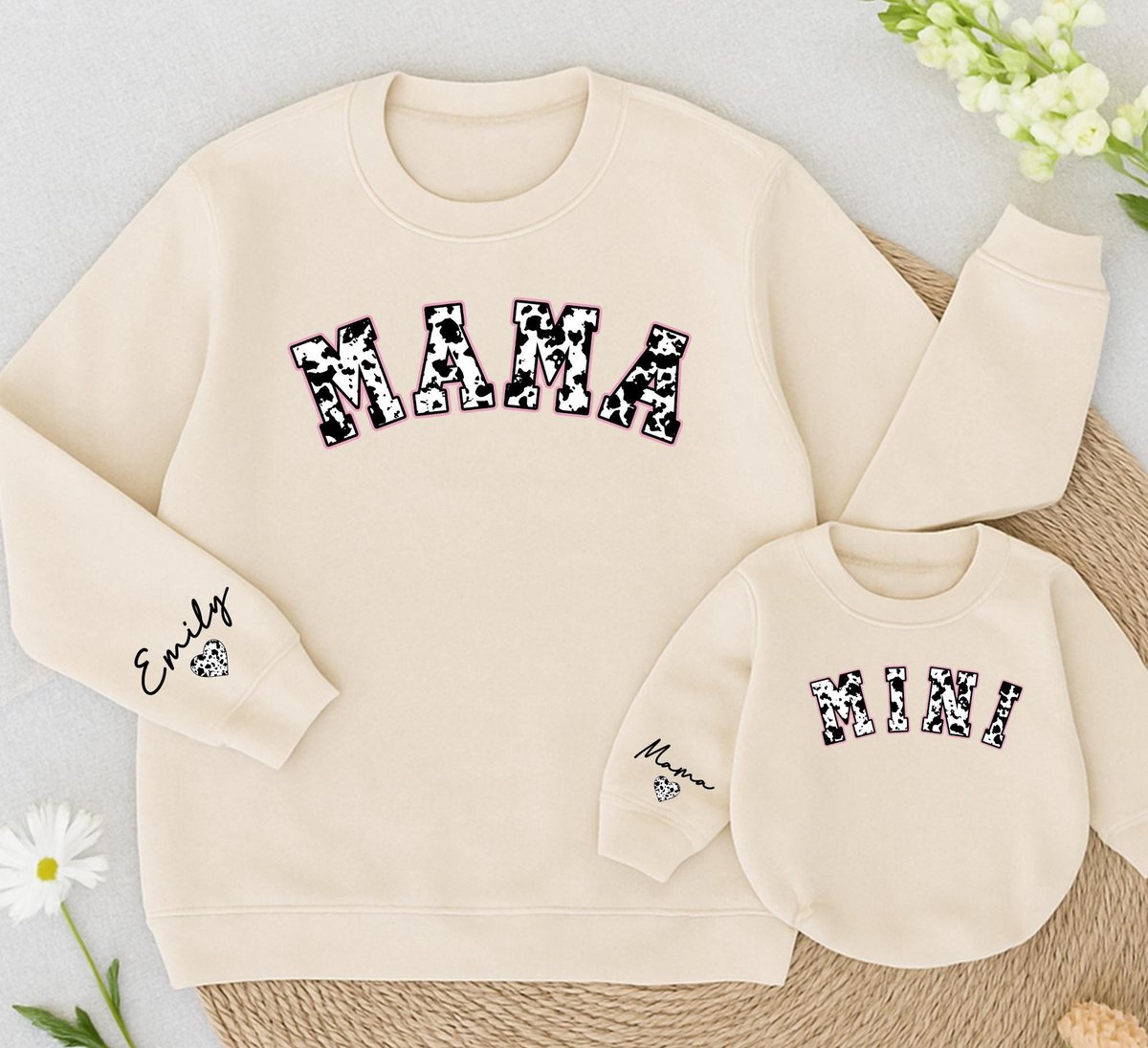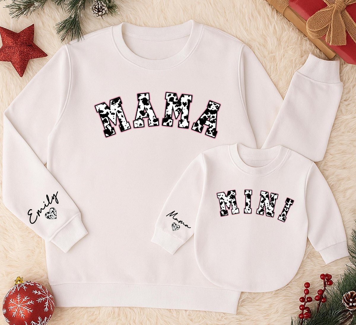 Personalized mama And mini Cowhide Sweatshirt Mom And Baby Matching clothing Country Western Christm 434