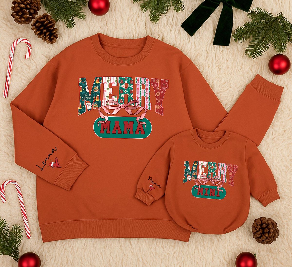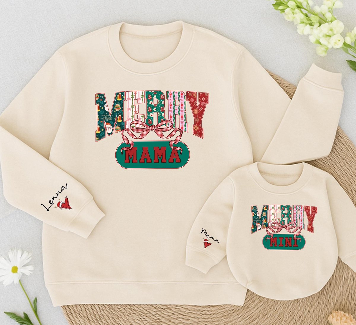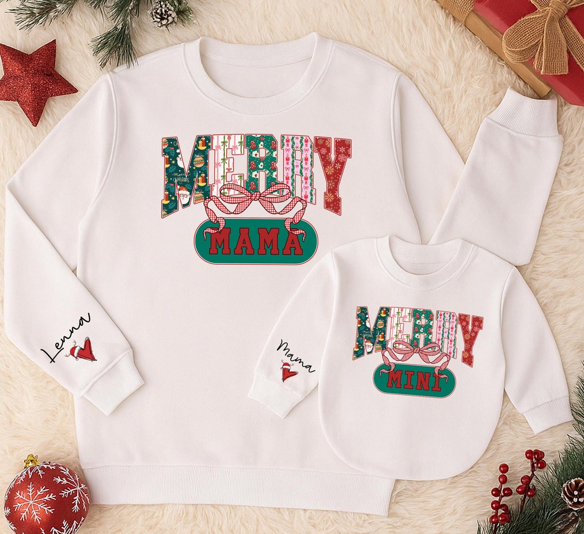 Retro Christmas Sweatshirt Mom And Baby Matching Family Sweater Daughter Kid Sweatshirt Merry mama m 436