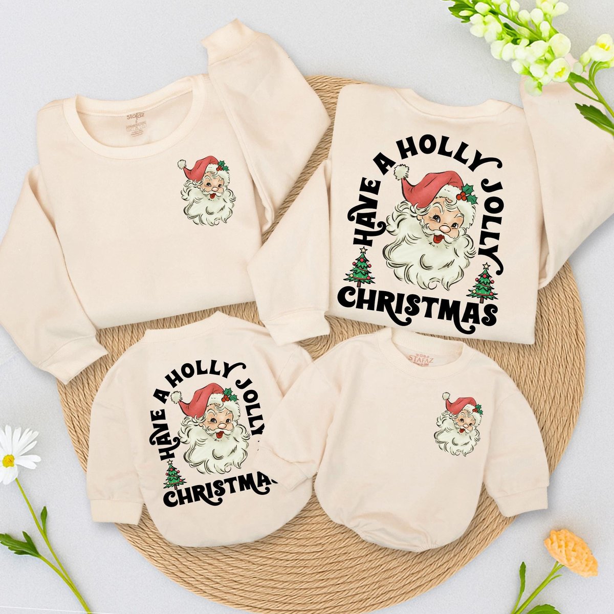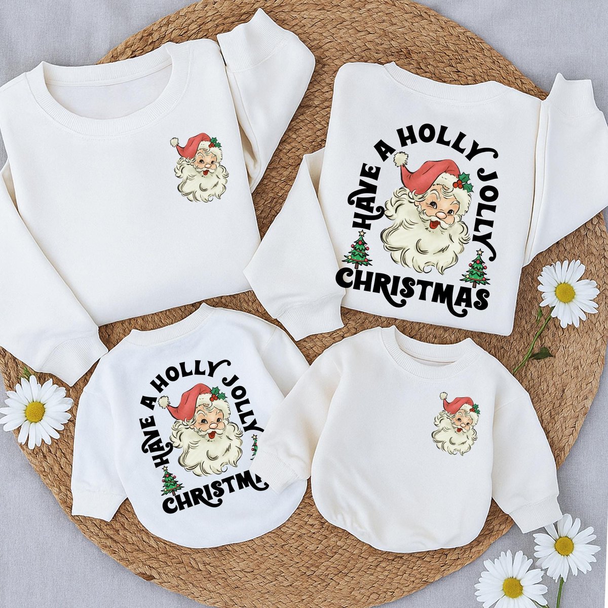Retro Santa Christmas Sweatshirt Vintage Graphic Holiday Toddler Outfit 2 Sided sweater baby romper 436
