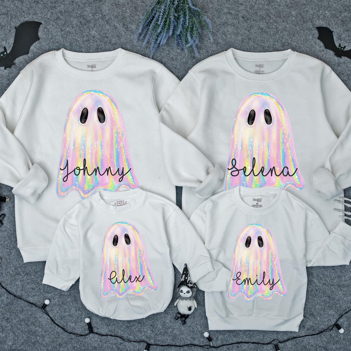 Shimmering Ghost Sweatshirt Iridescent Ghost Crewneck Cute Ghost Sweatshirt Glitter Ghost Toddler sw 436