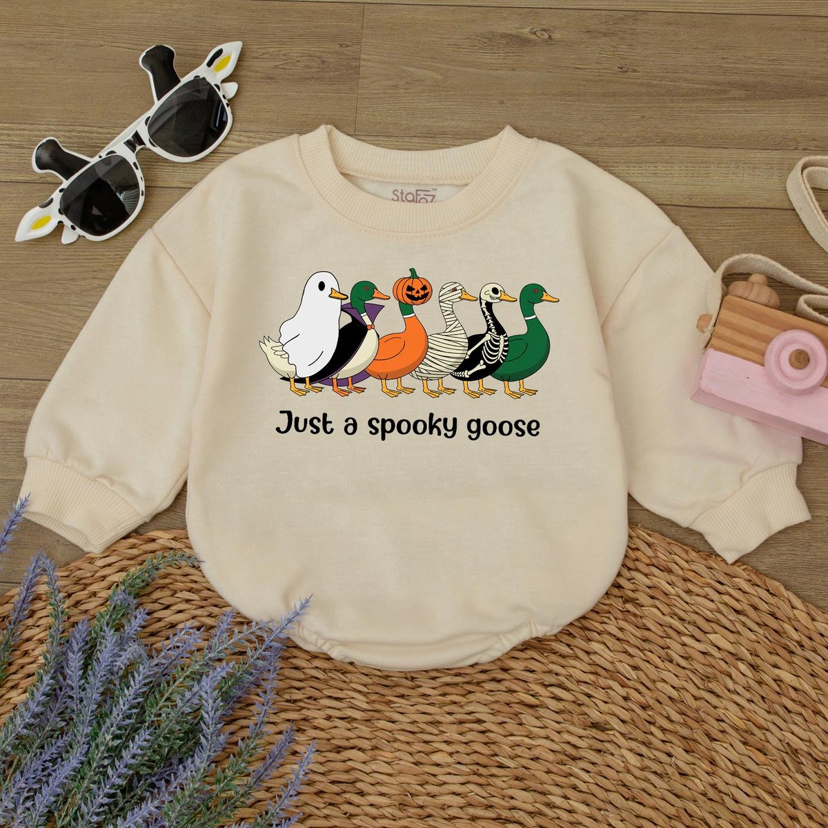 Spooky Goose Baby Romper Sweatshirt Halloween Baby Outfit Funny Goose Costume Fall Baby Clothes Todd 433