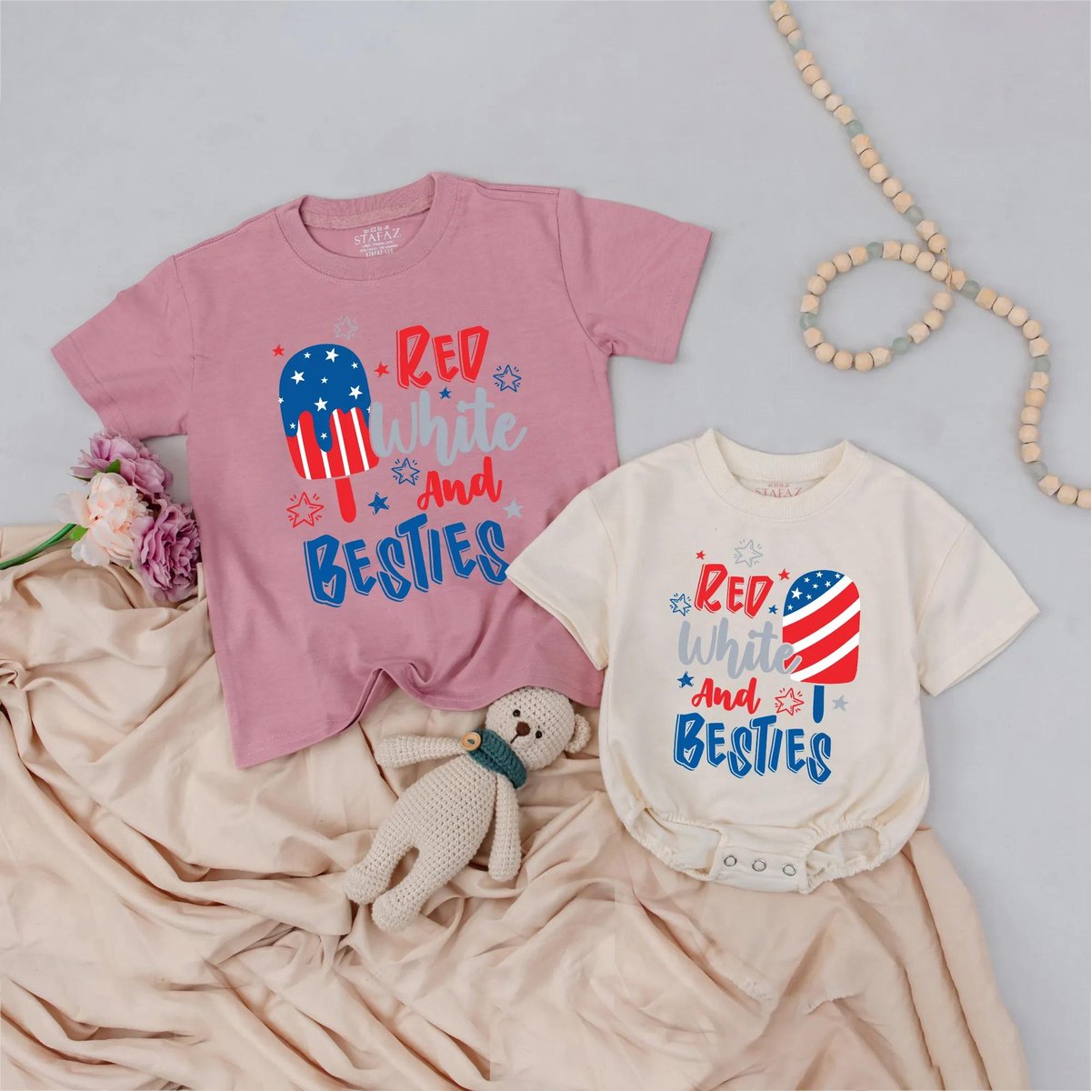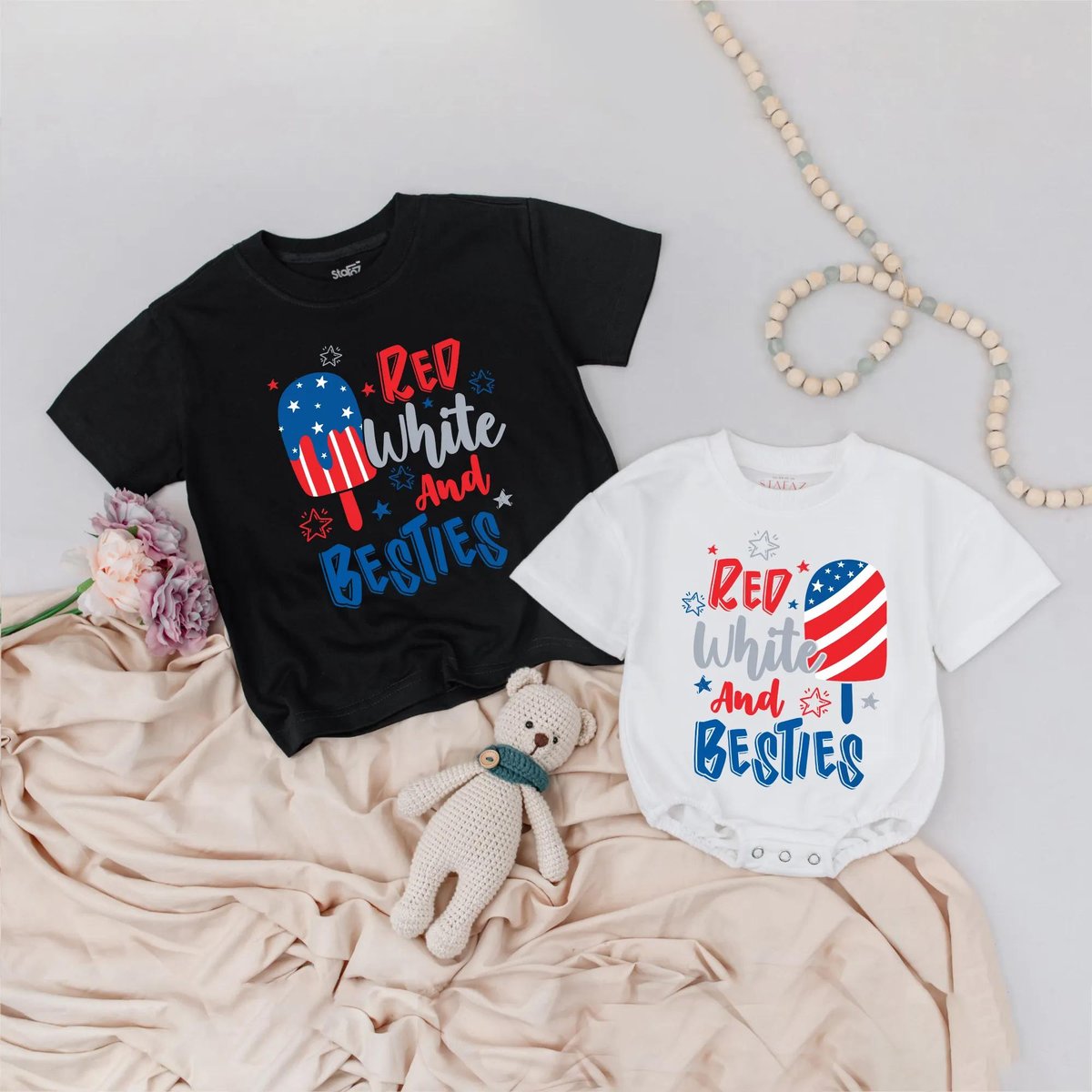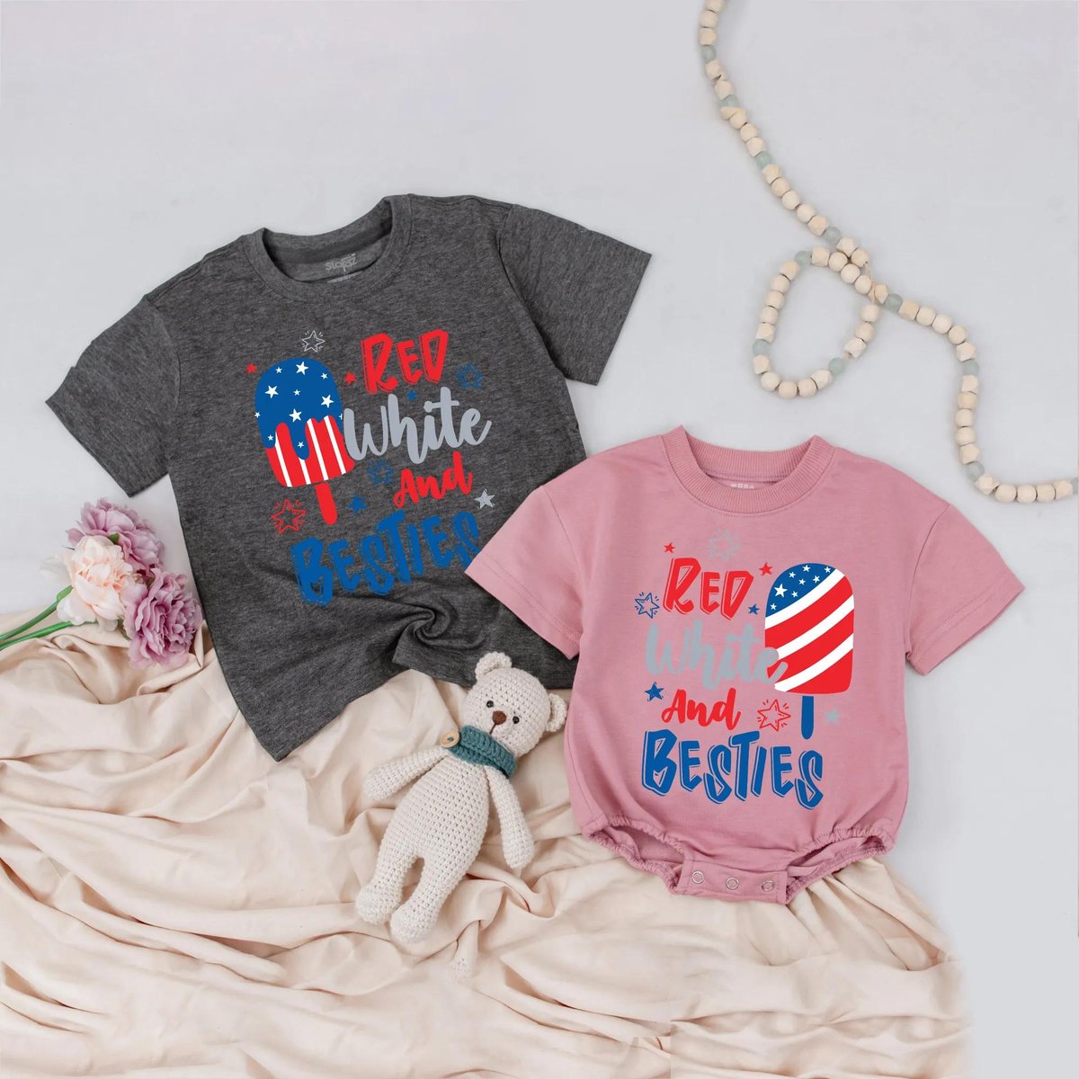4th of July Besties Matching Shirts Red White and Besties Romper Patriotic USA Fourth of July Outfit 430