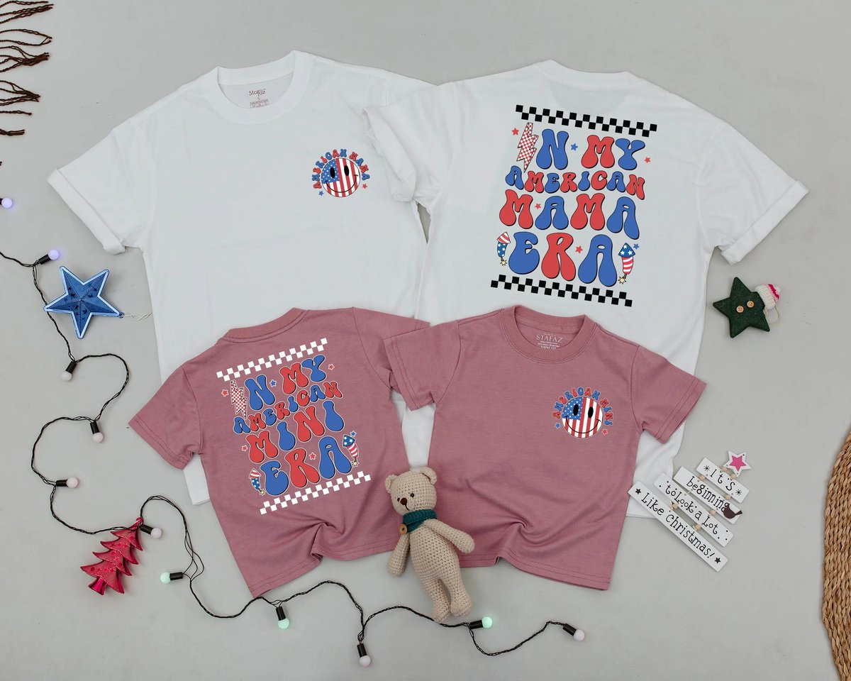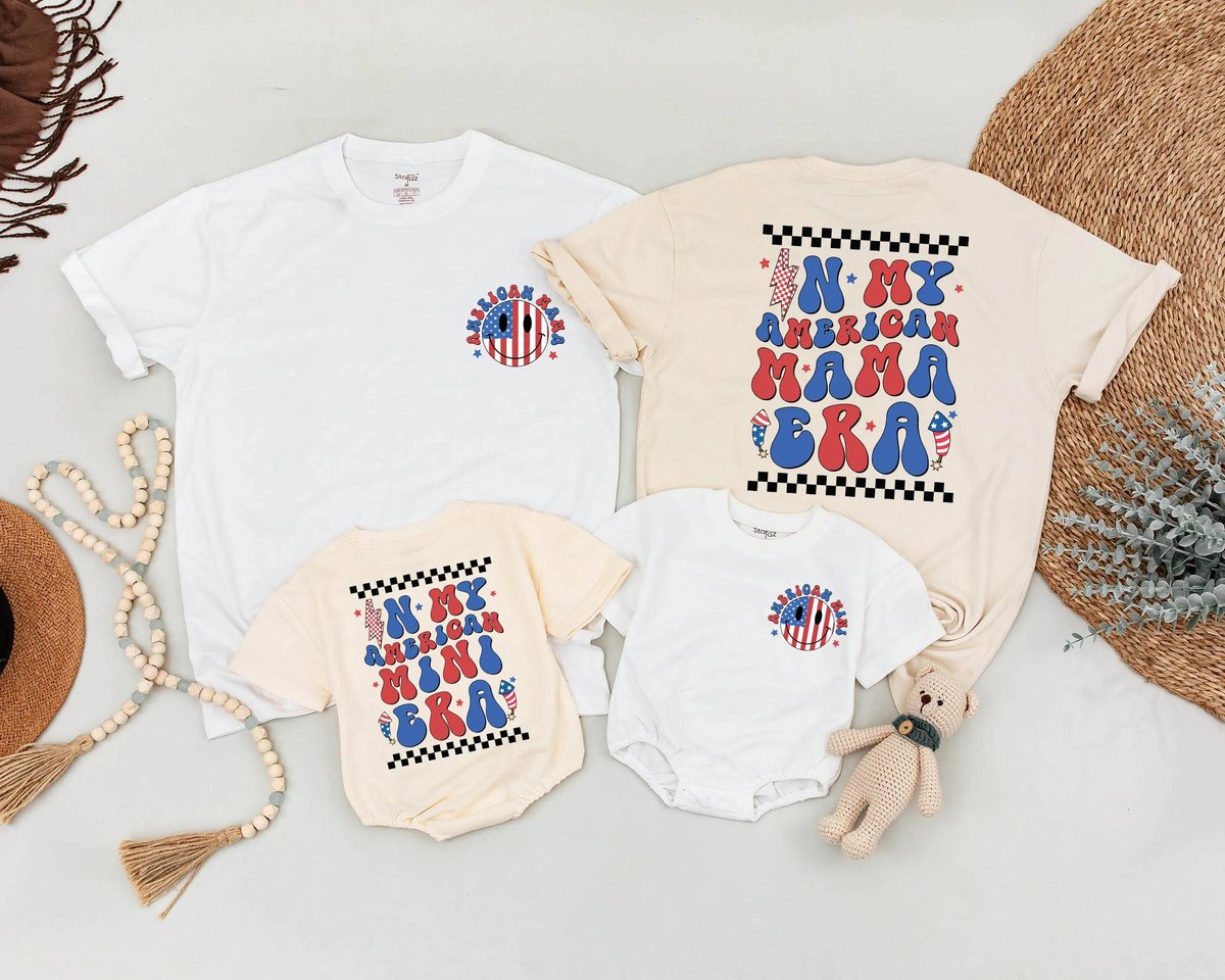 4th of July Family Shirts Matching American Mama And Mini Era Outfit Retro USA Summer Look Patriotic 430