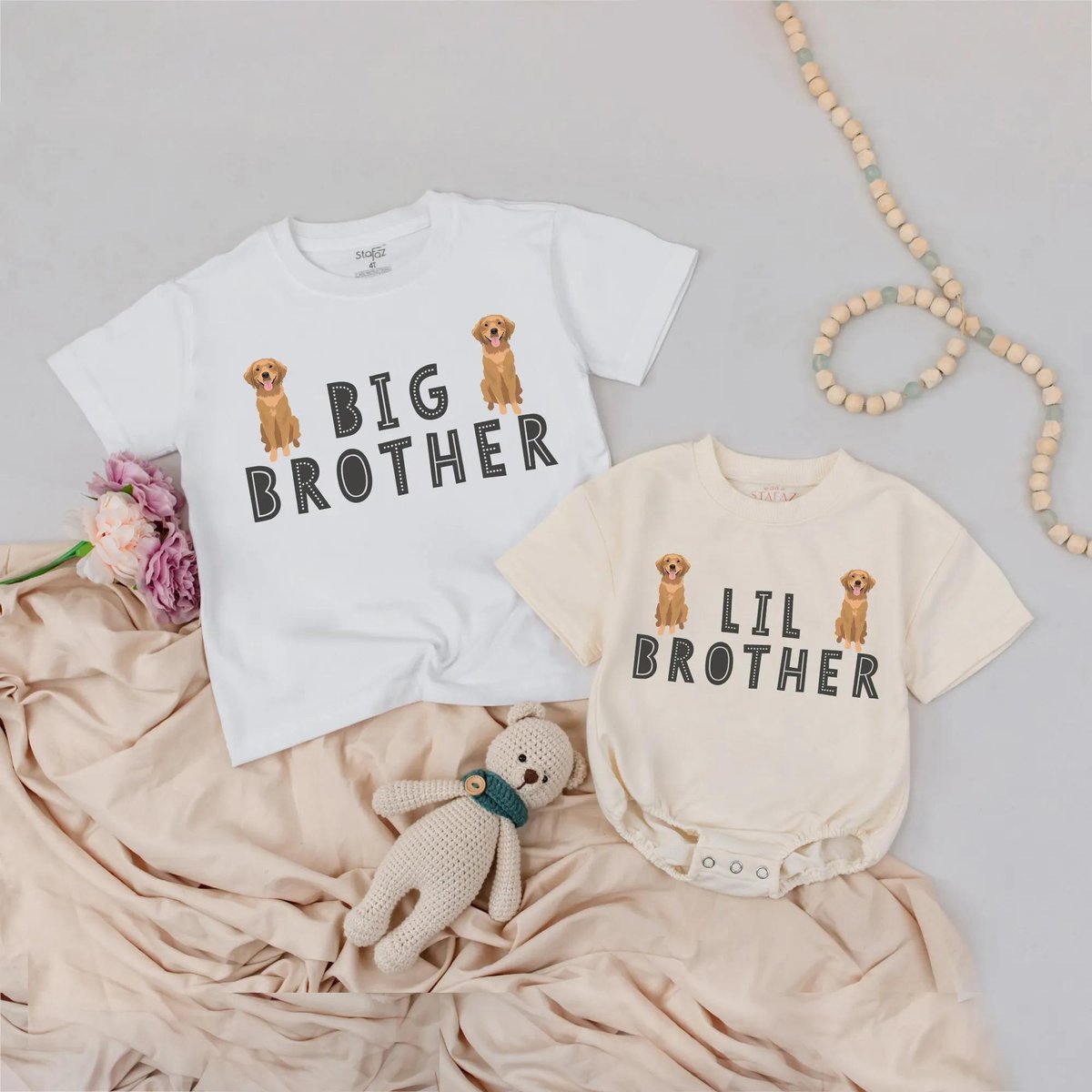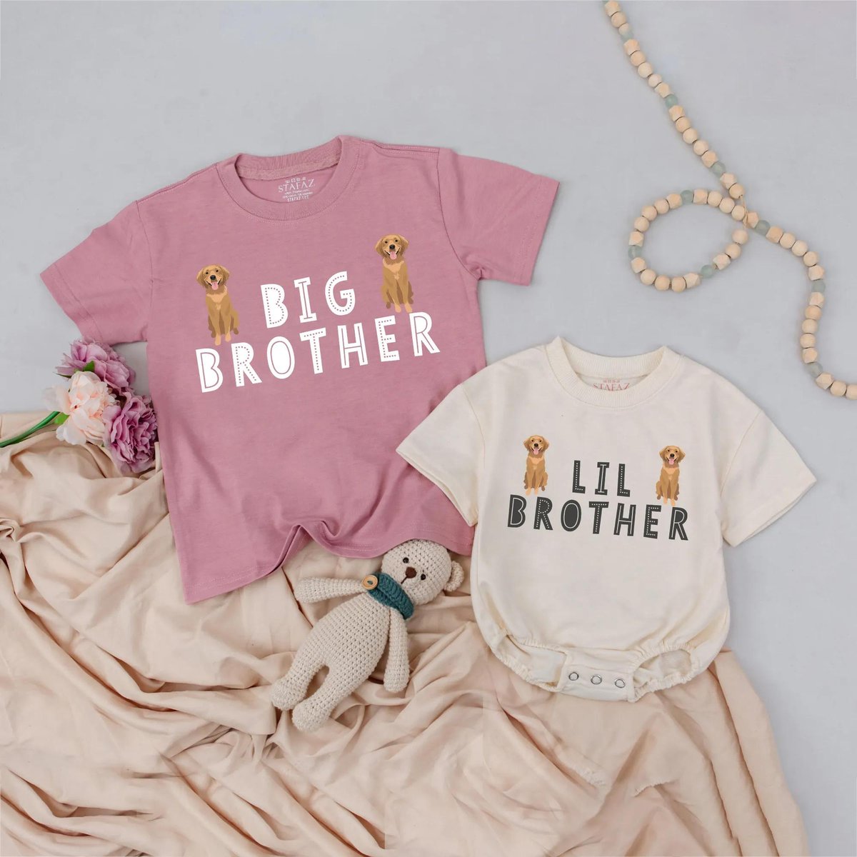Big Brother Lil Brother Matching Shirts Dog Theme Sibling Outfits Toddler Shirt Baby Bodysuit Puppy 432
