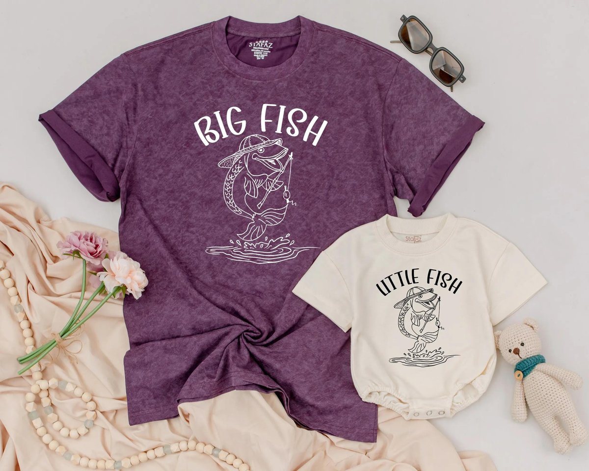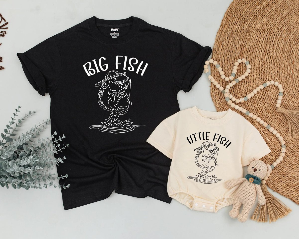 Big Fish Little Fish Matching Shirt Daddy and Me Fishing Outfit Father Son Fishing Shirt Baby Bubble 189