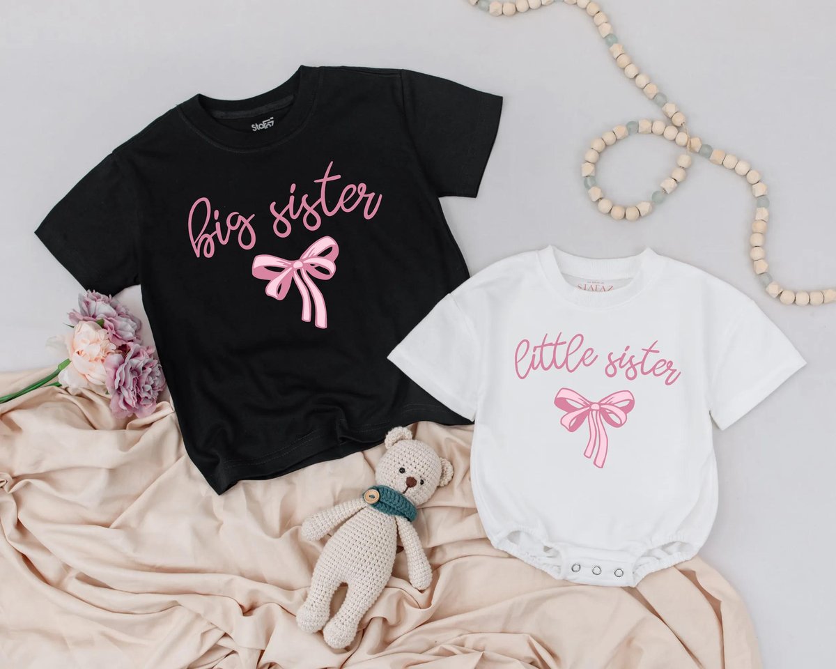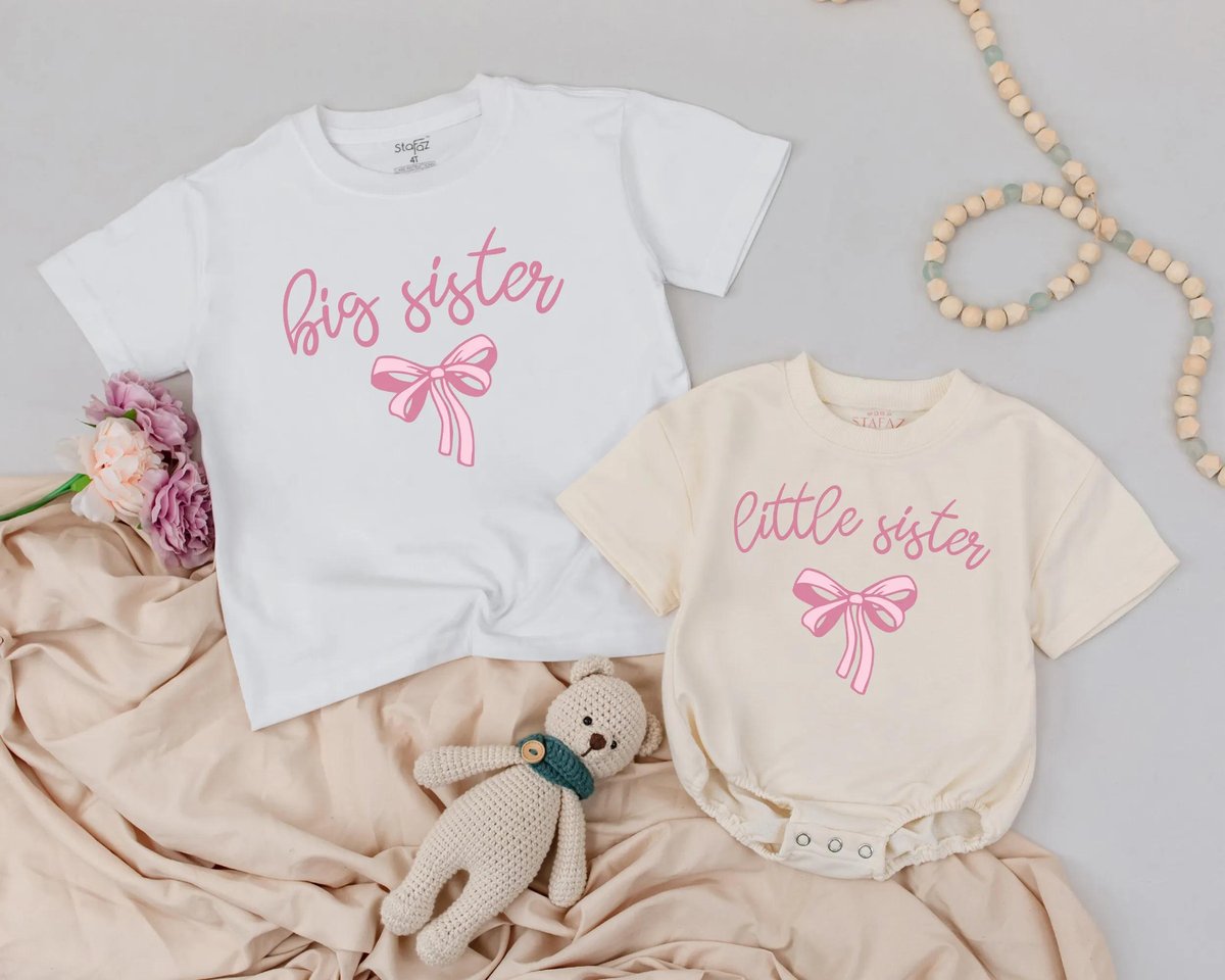 Big Sister Little Sister Matching Outfits Bow Sibling Shirts Baby Girl Clothes Toddler Sister Outfit 189