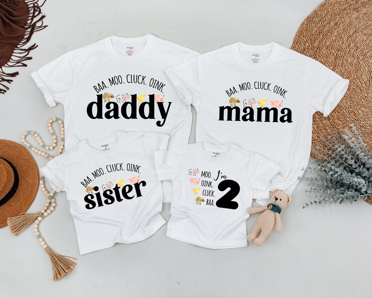 Cluck Oink Baa Moo I’m Two Shirt Farm 2nd Birthday Shirt Barnyard Farm Birthday Barn Animal Matchin 166