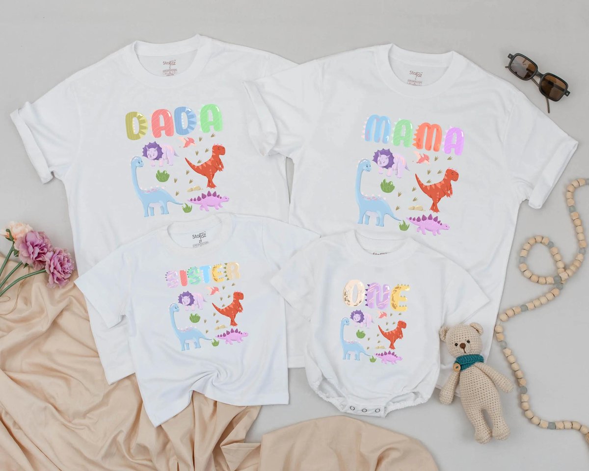 Family Dinosaur Matching Shirts First Birthday Outfit for Baby Mommy and Me Dino Party Outfit Family 430