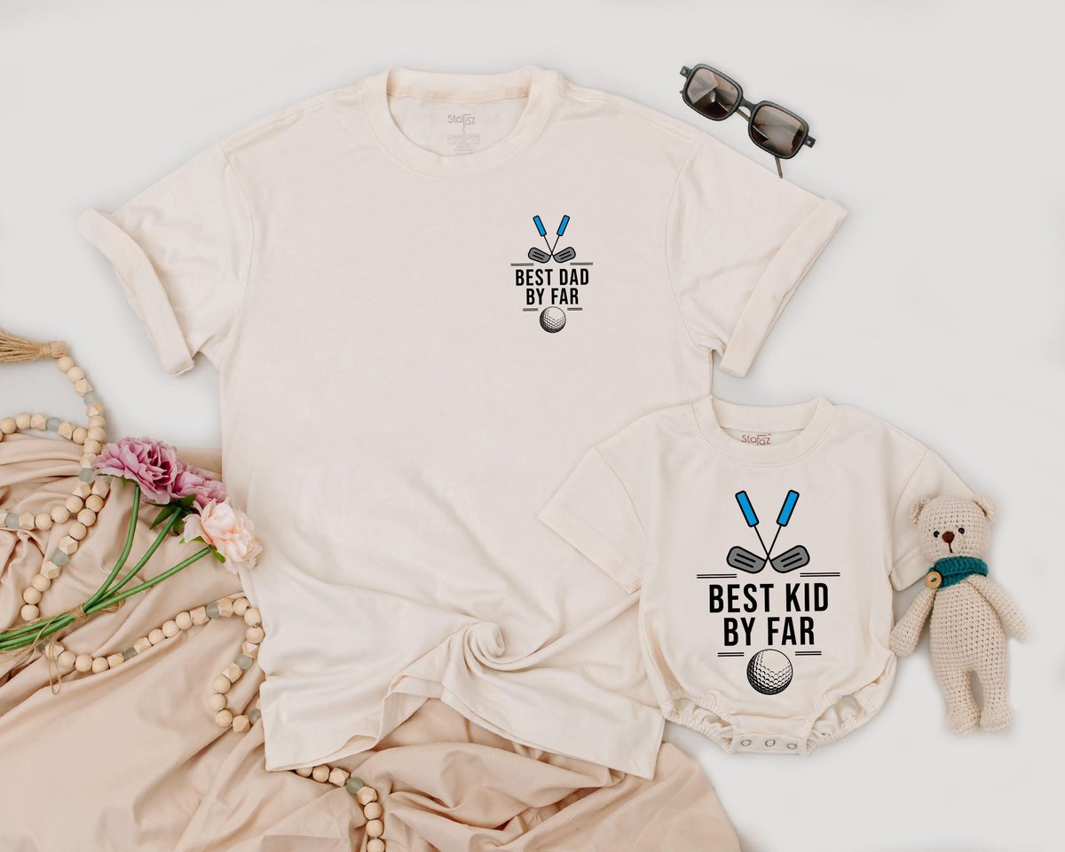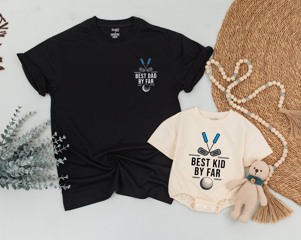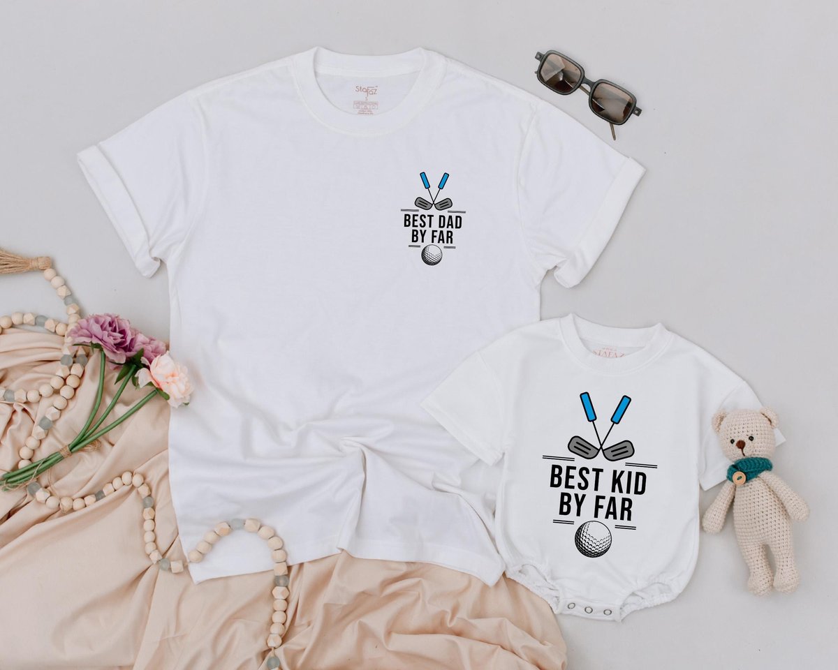 Father’s Day Matching Shirts Best Dad By Far Golf Shirt Best Kid By Far Bubble Romper Golf Dad Baby 429