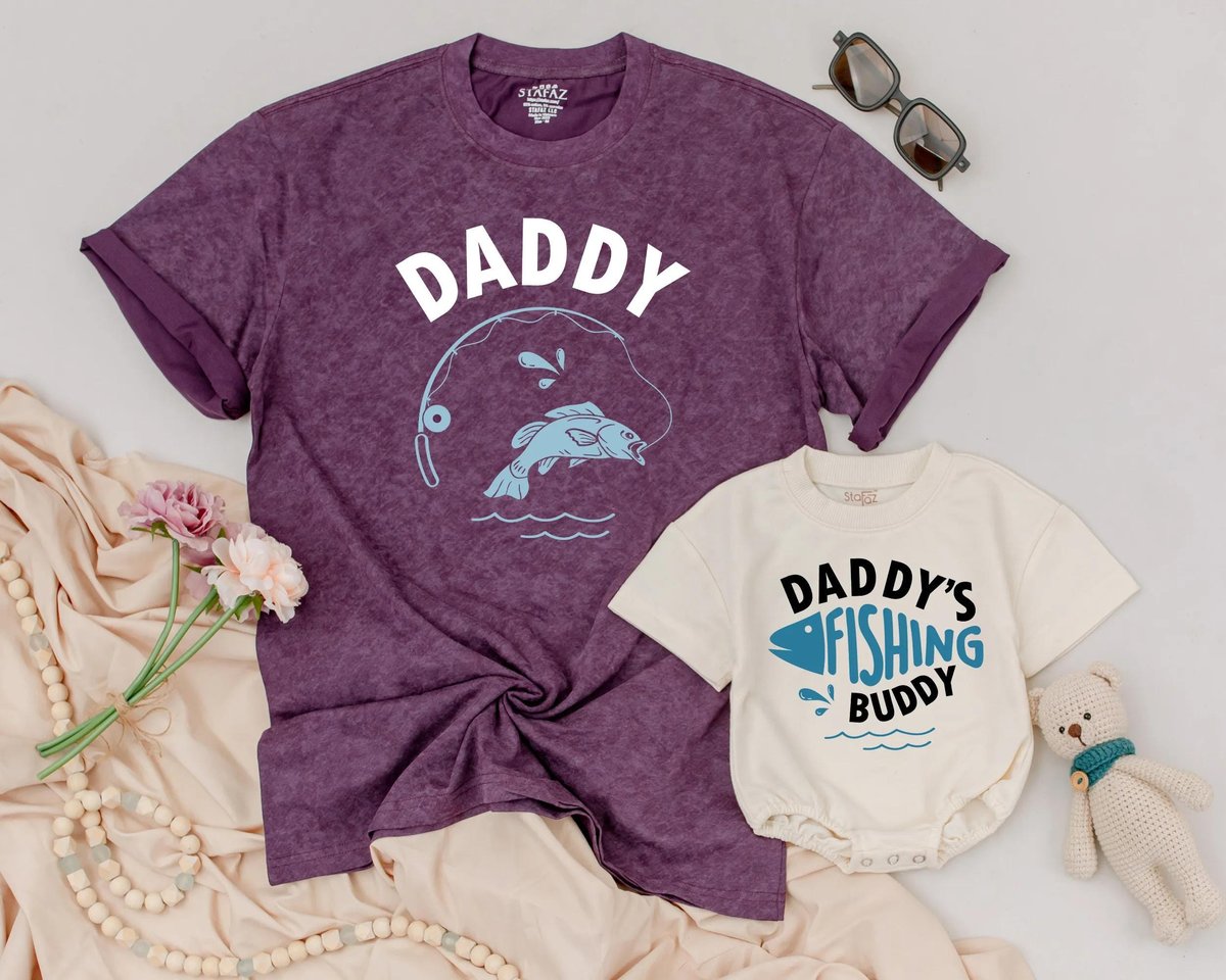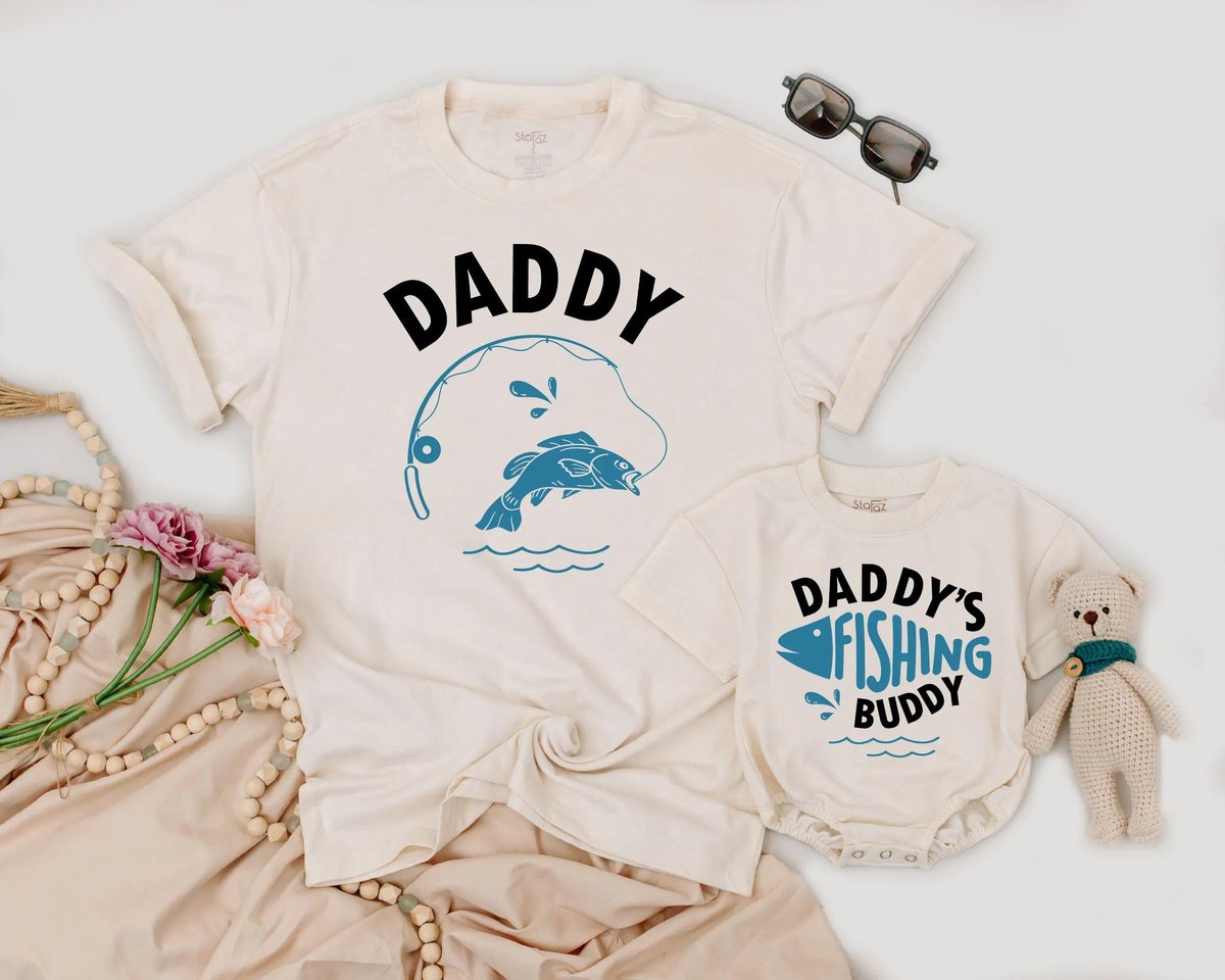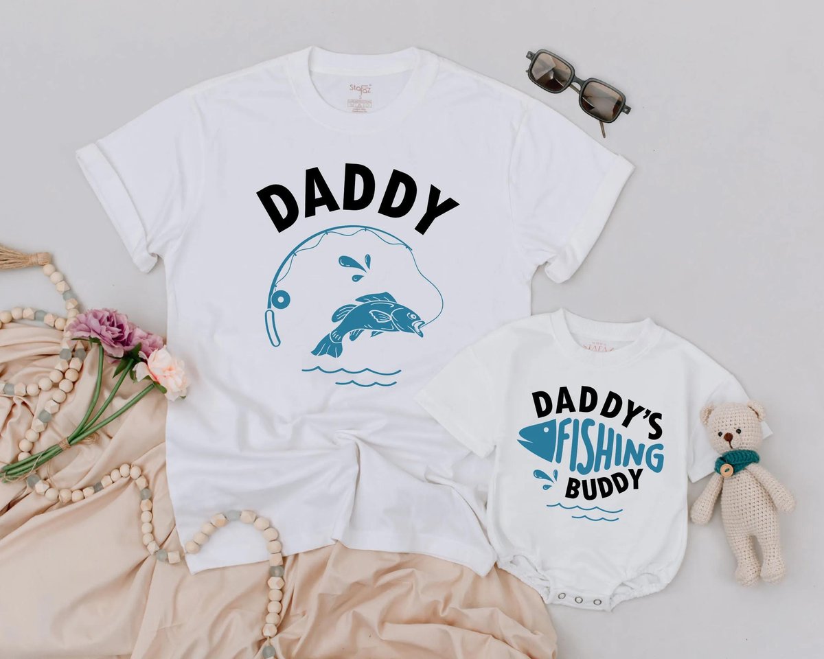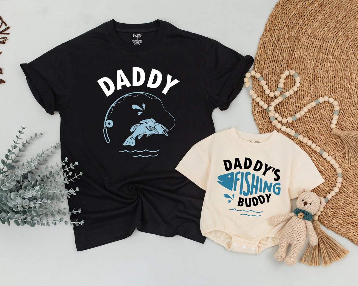 Father’s Day Matching Shirts Daddy Fishing Shirt Daddy’s Fishing Buddy Baby Romper Dad and Baby Ma 429
