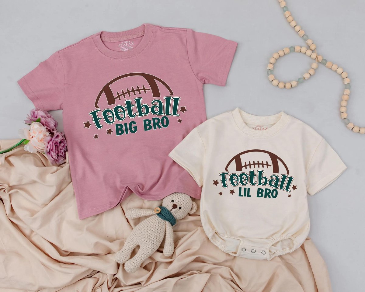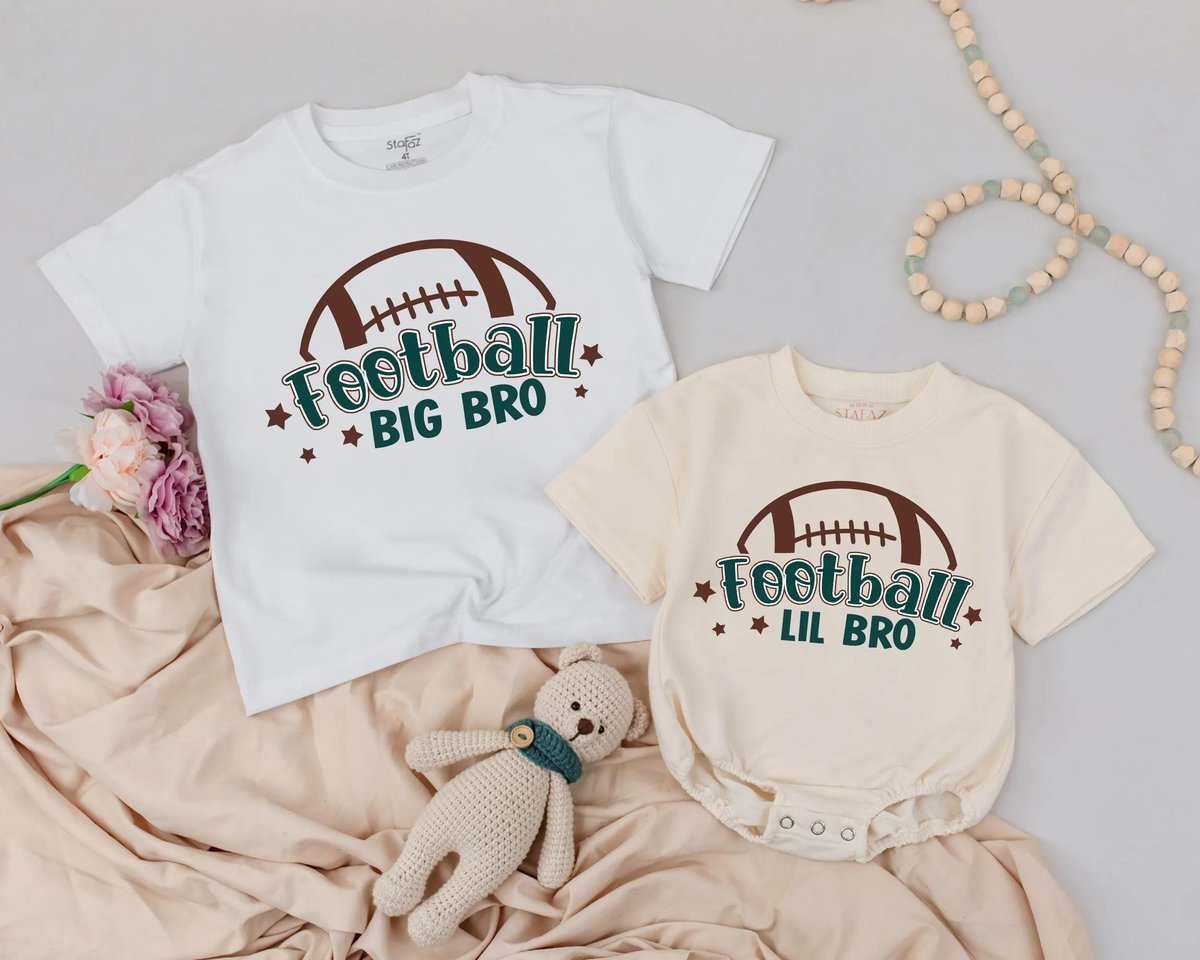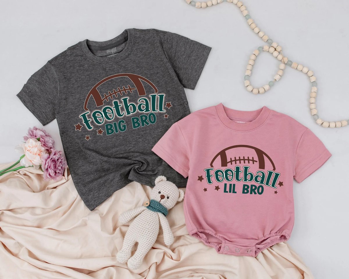 Football Big Bro and Lil Bro Outfit Matching Toddler Shirt and Romper Sibling Football Clothes Fall 188