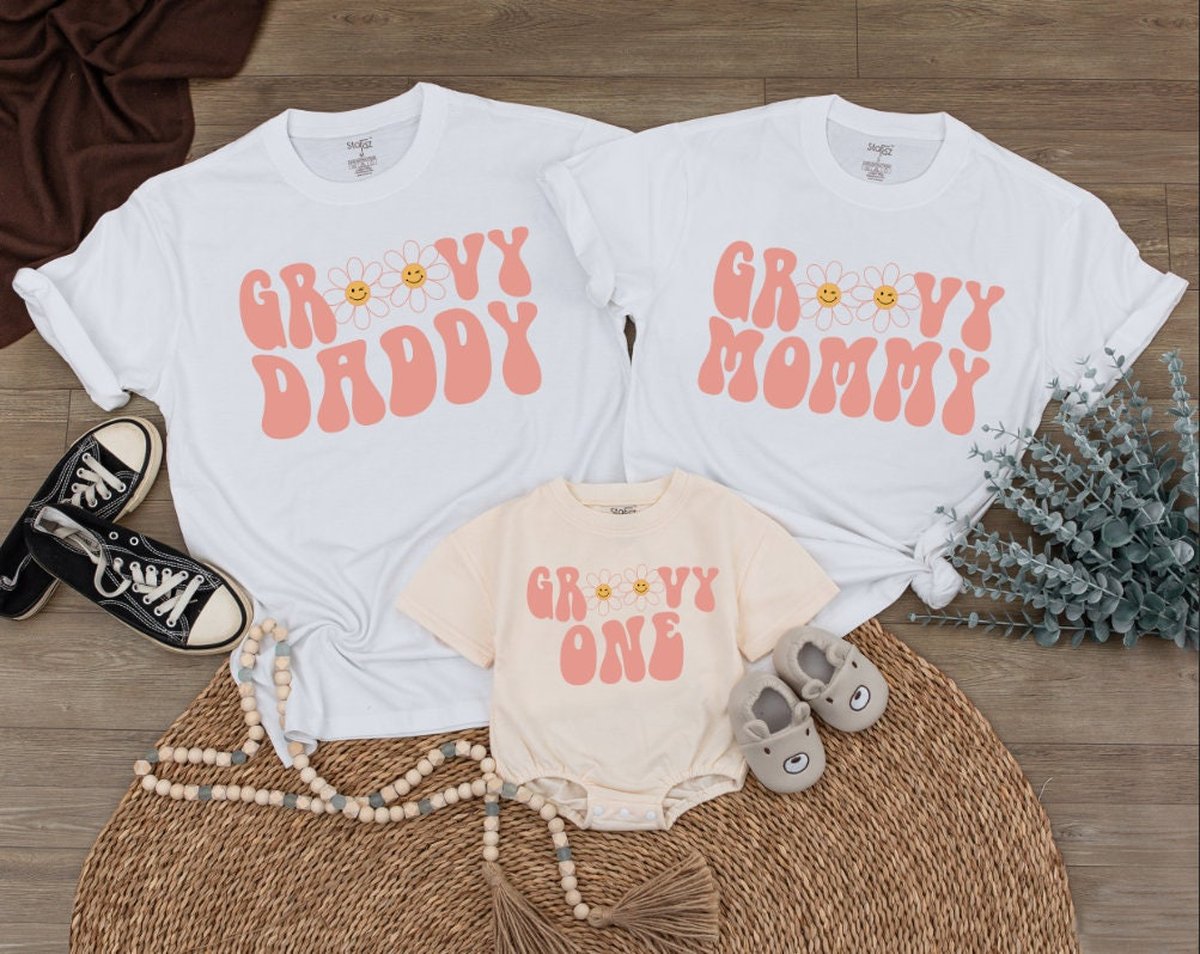 Groovy One Family First Birthday Shirts Retro 1st Birthday Tees Groovy 2nd Birthday Mommy and Me Shi 166
