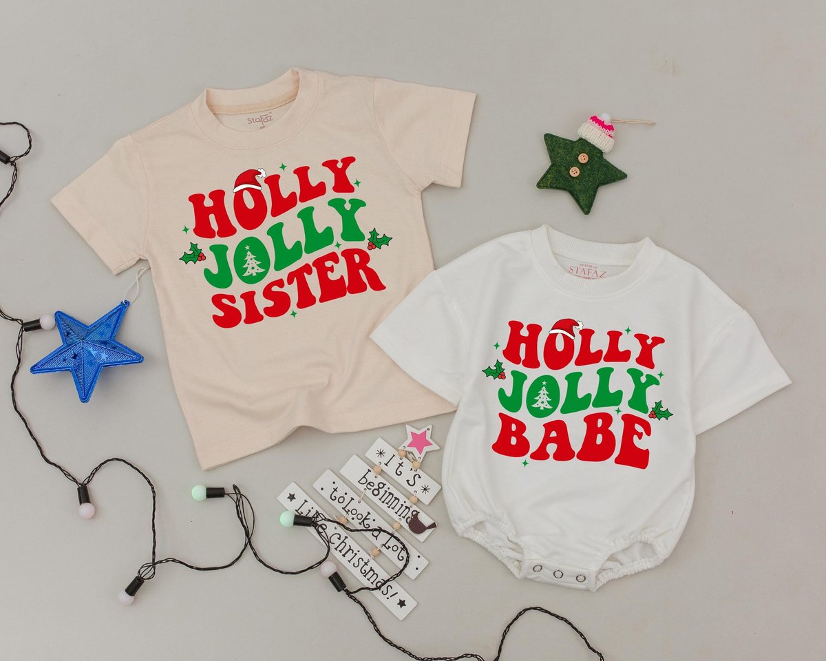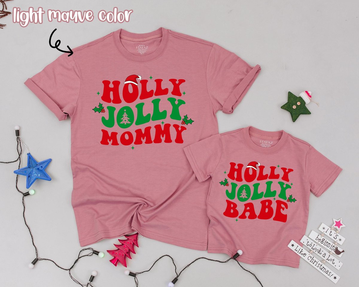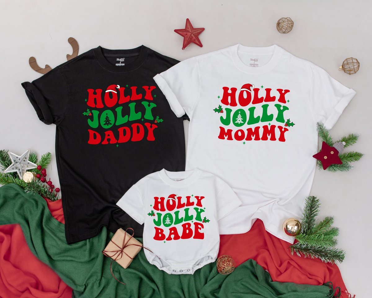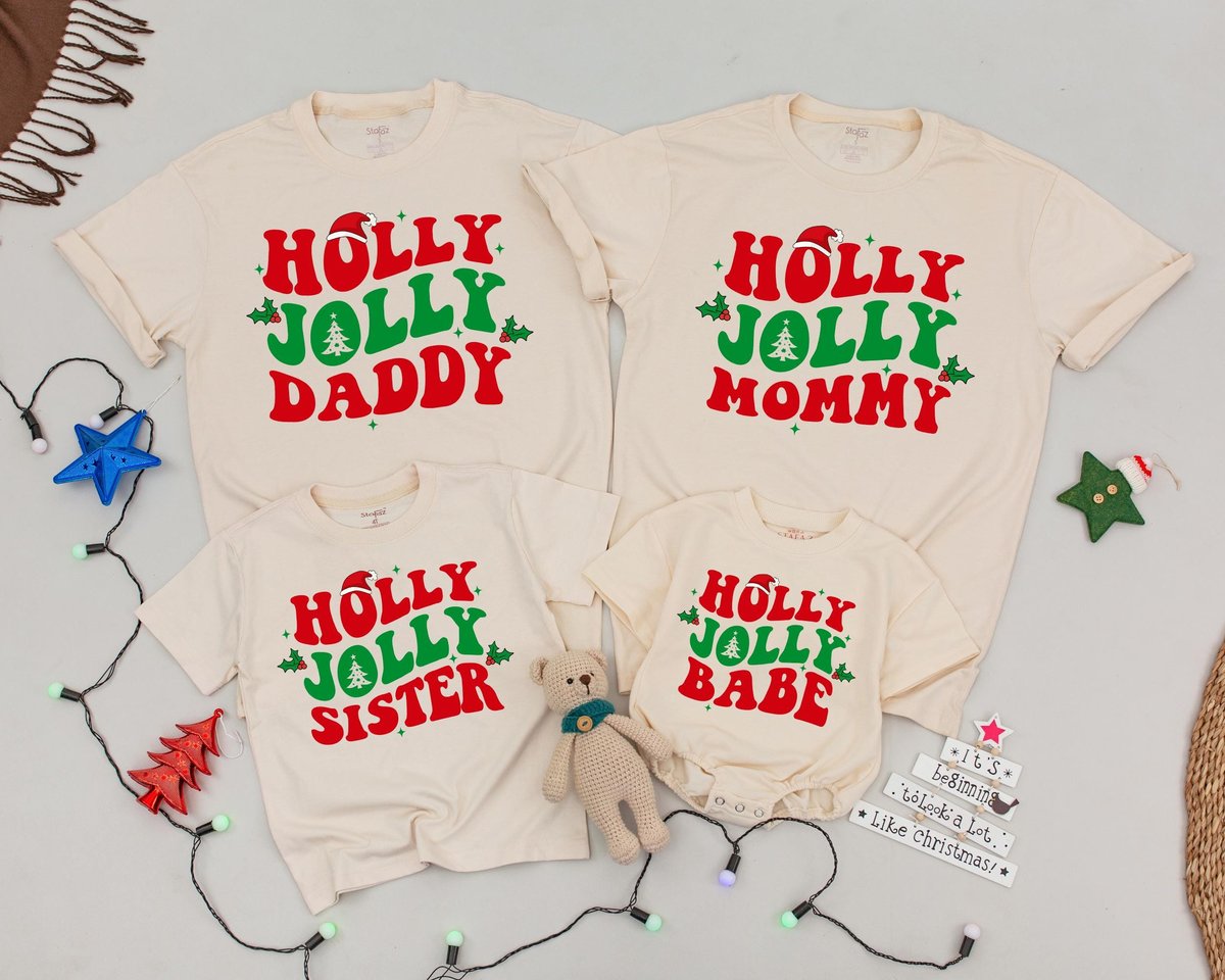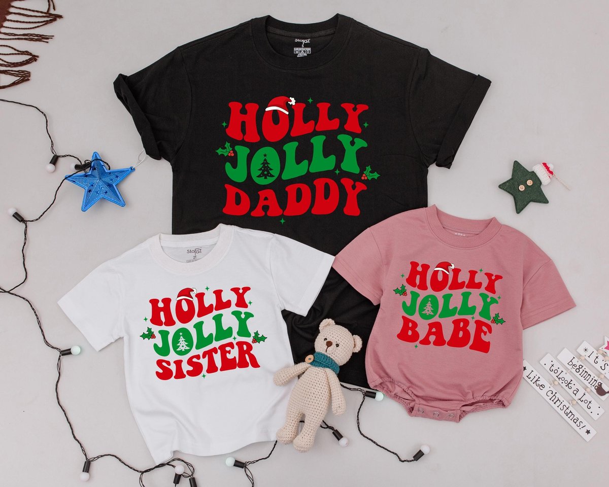 Holly Jolly Family Christmas Shirts Personalized Family Shirt Retro Christmas Mommy and Me T Shirts 179