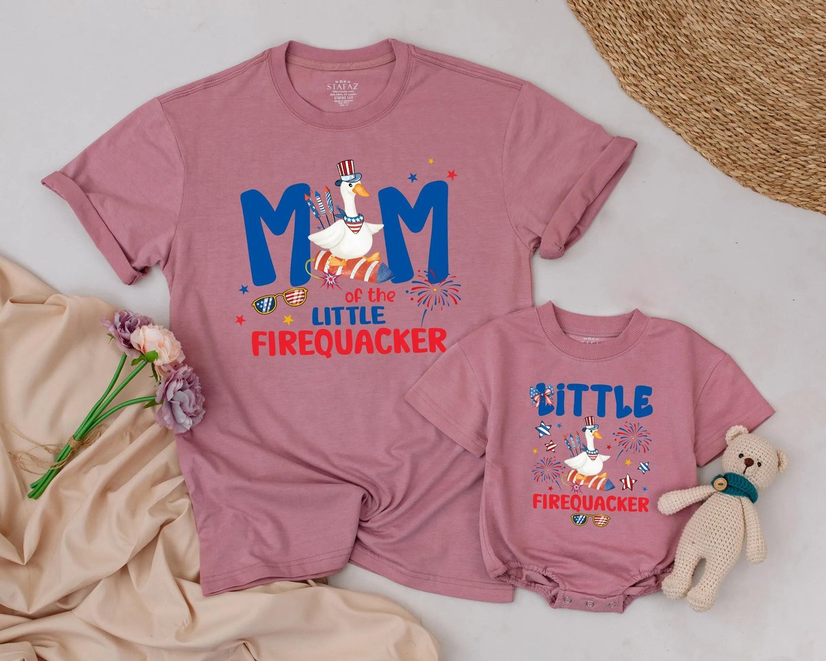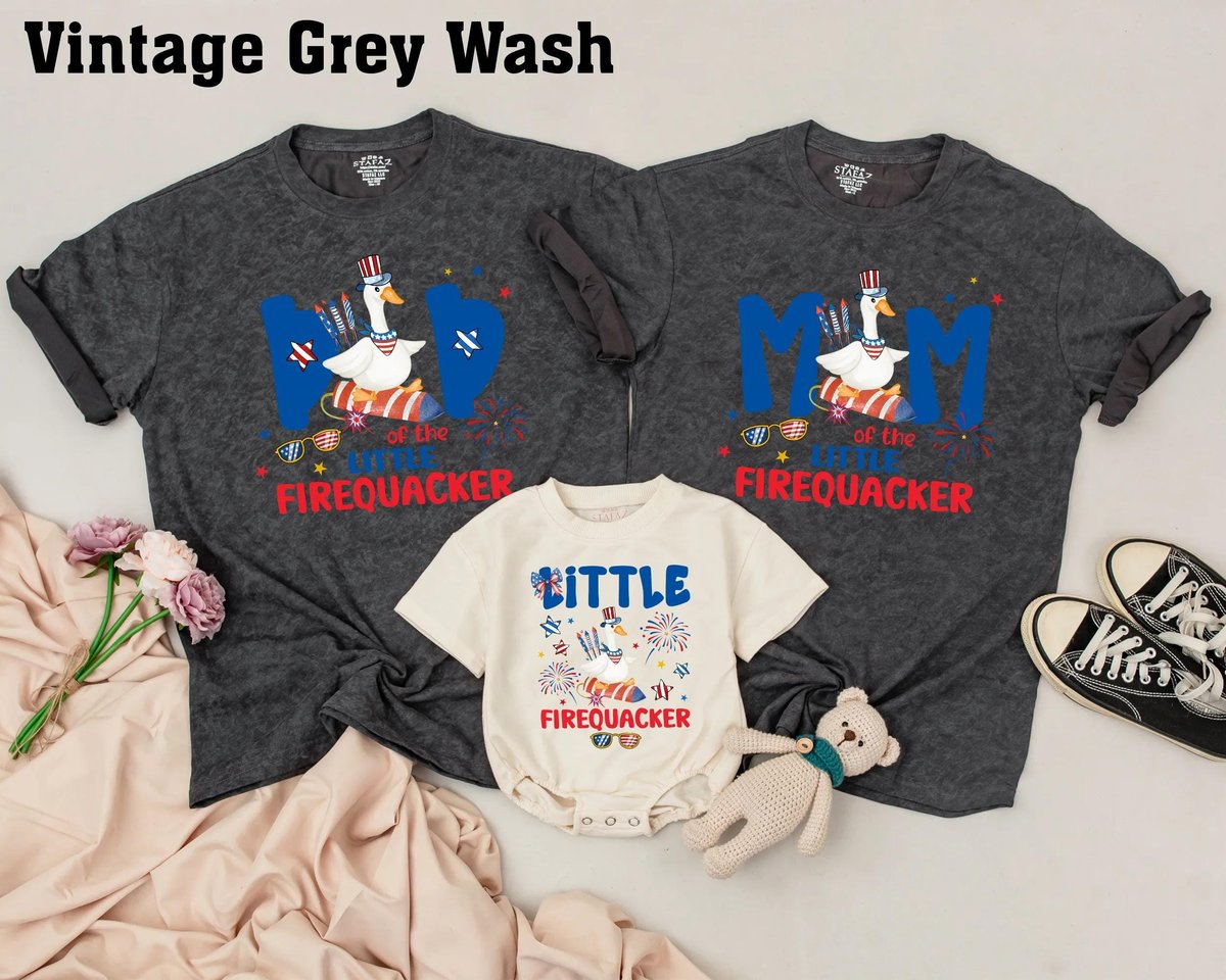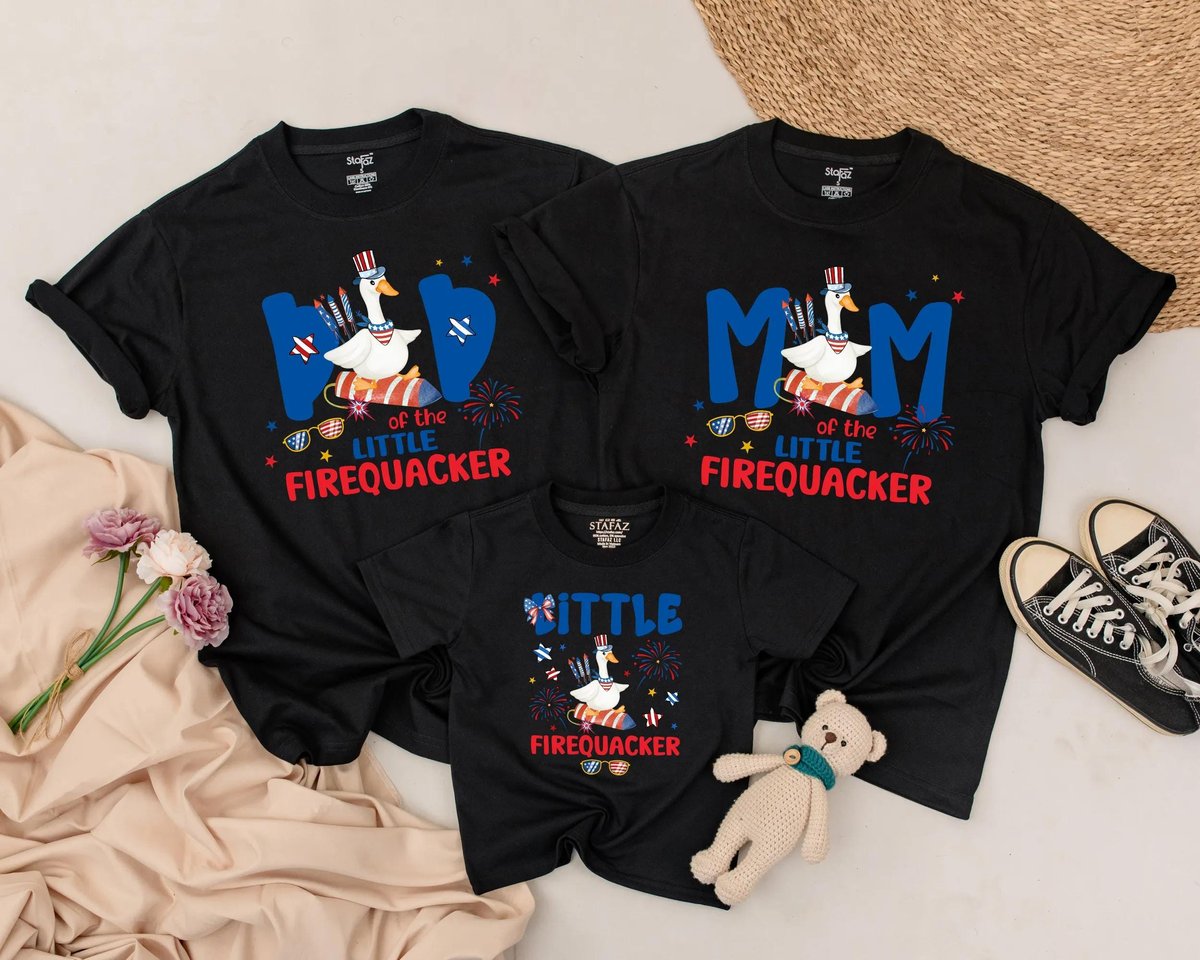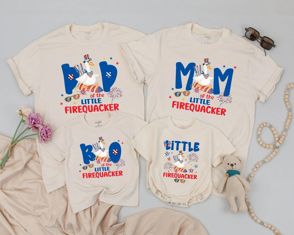 Little Firequacker Duck Matching Family Shirts Funny 4th of July Outfits Patriotic Duck Family Tees 430