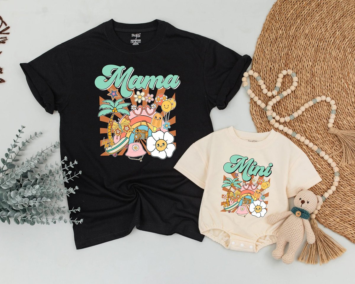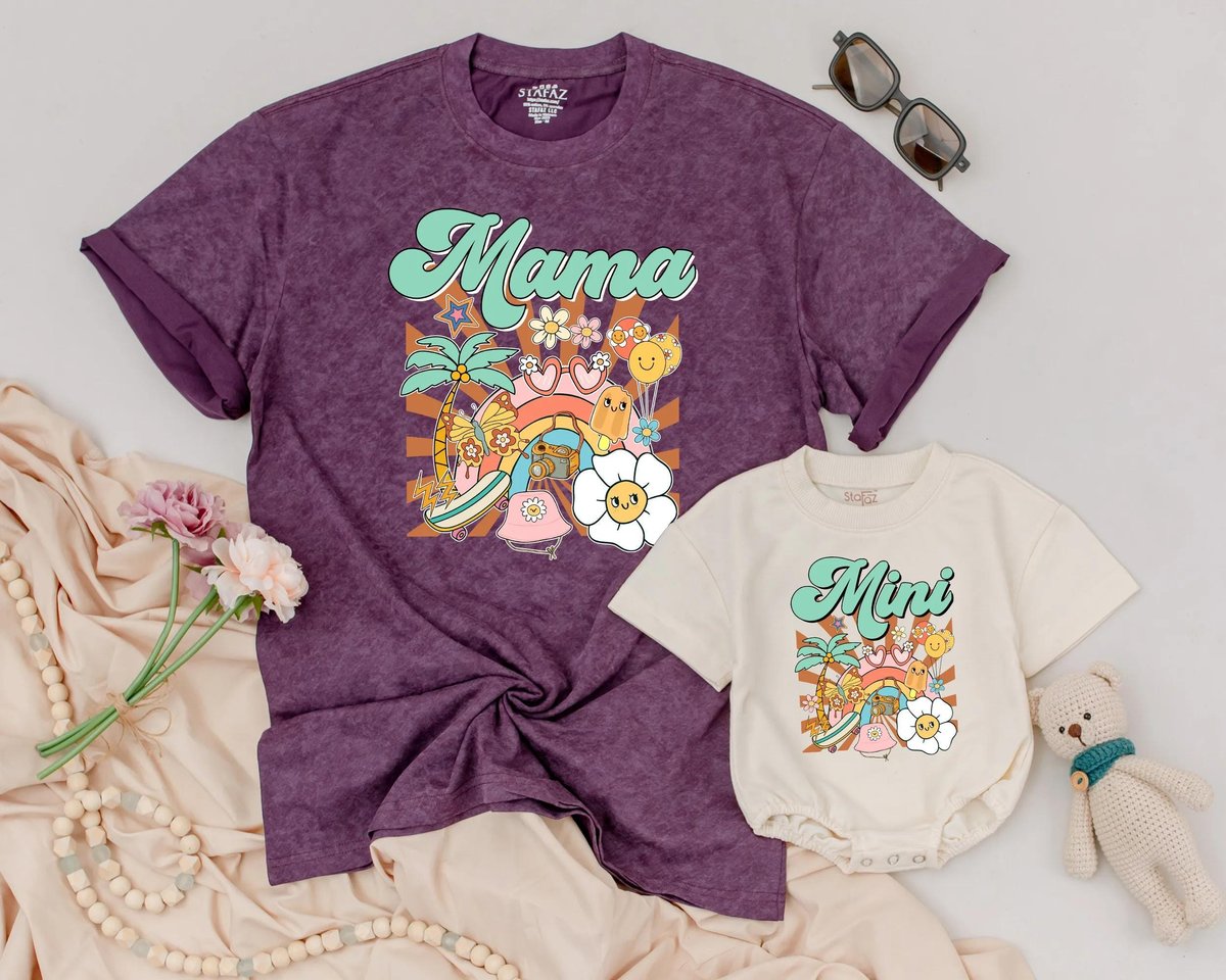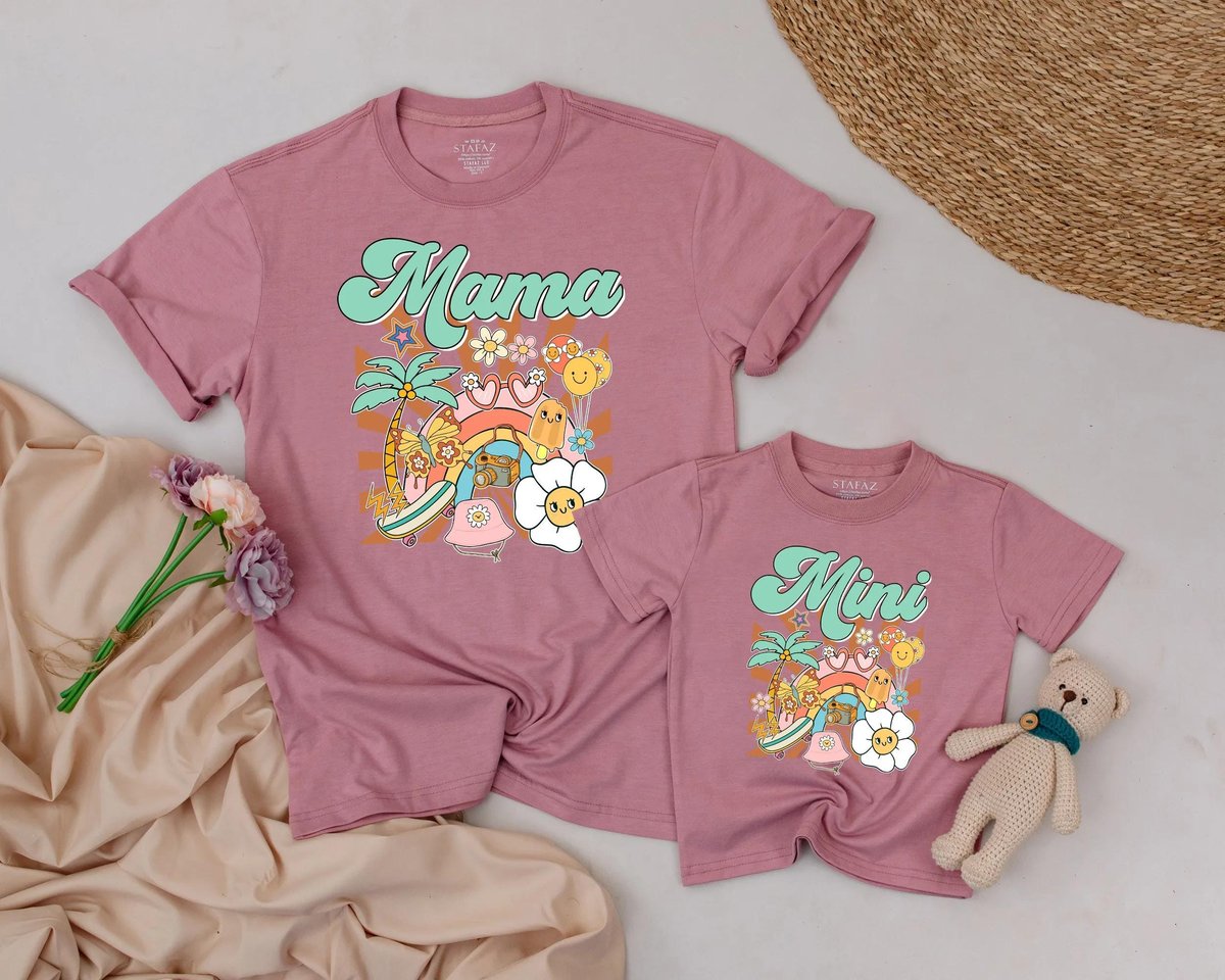 Mama and Mini Summer Matching Shirts Mother’s Day Outfit Mom and Daughter Retro Groovy Beach Shirt 189