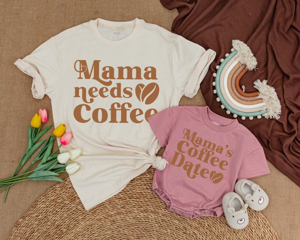 Mama Needs Coffee and Mamas Coffee Date Shirt Mom and Baby Matching Outfit Mama Mini Shirt New Mom G 166