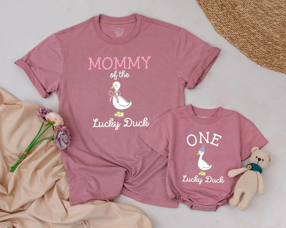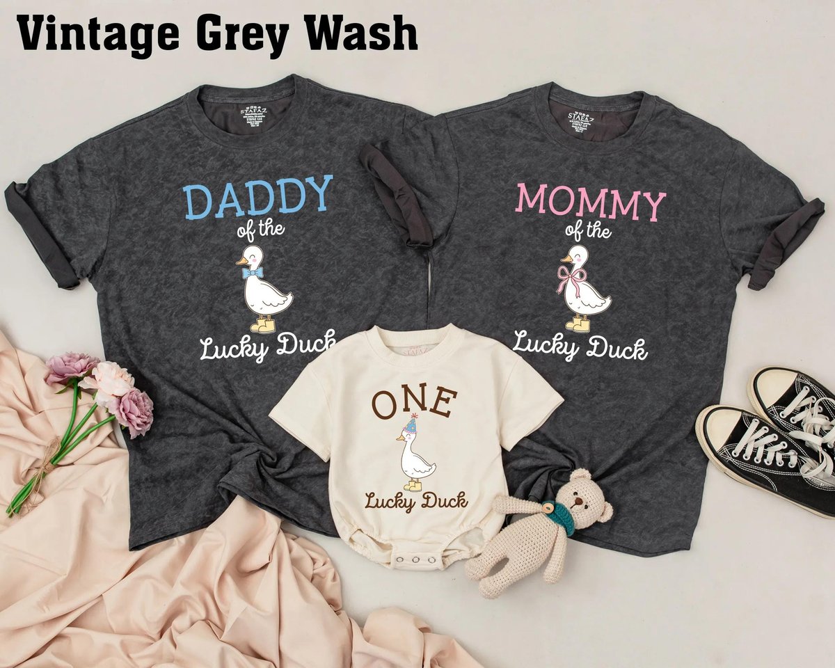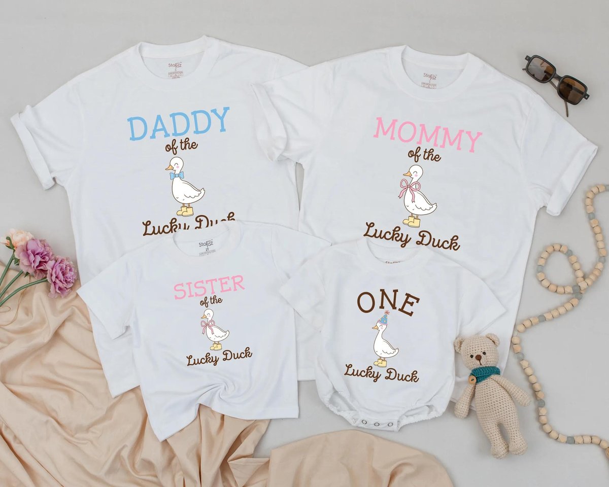 Matching Family Duck Shirts Mommy Daddy Baby Outfits One Lucky Duck Shirt First Birthday Bodysuit 190
