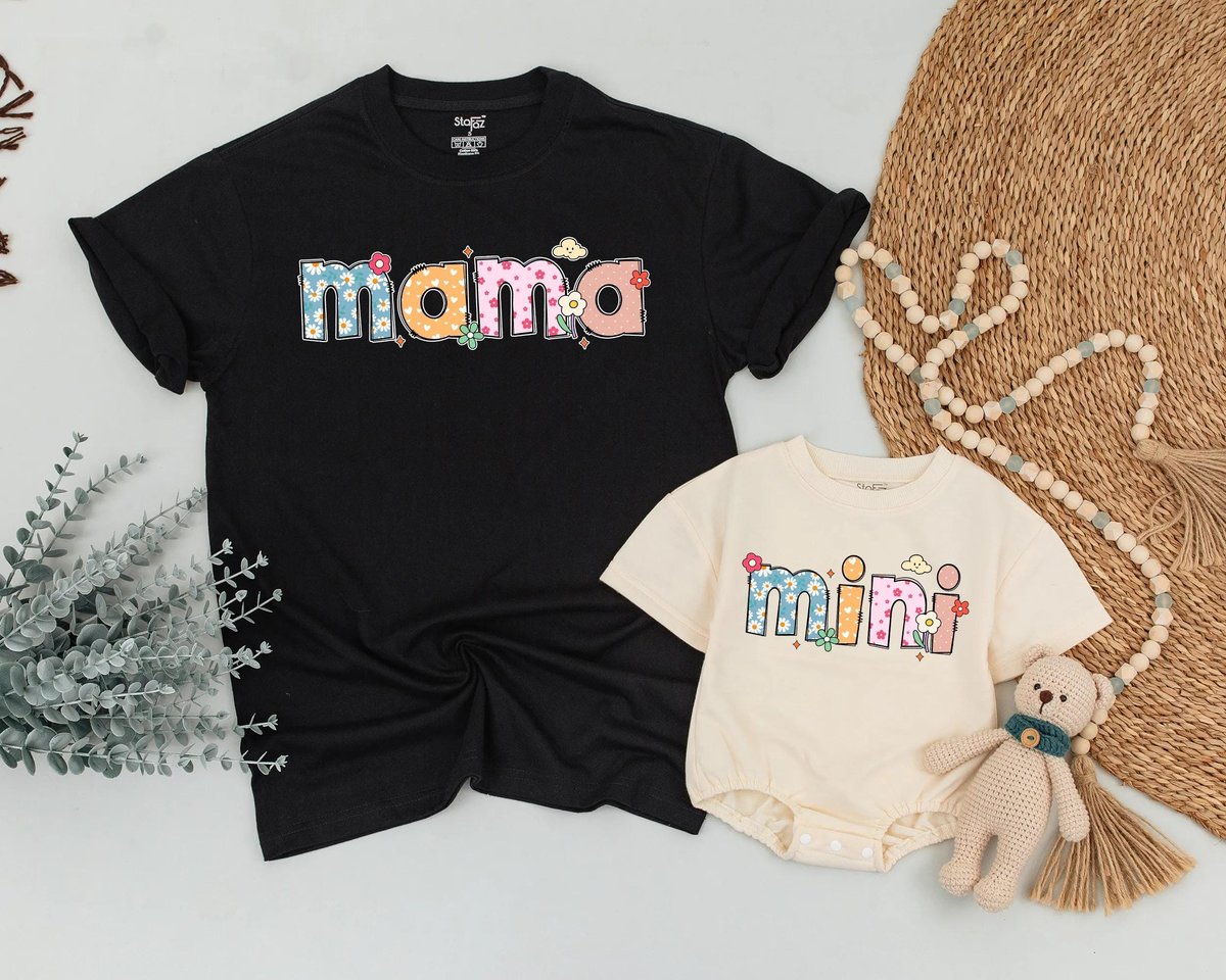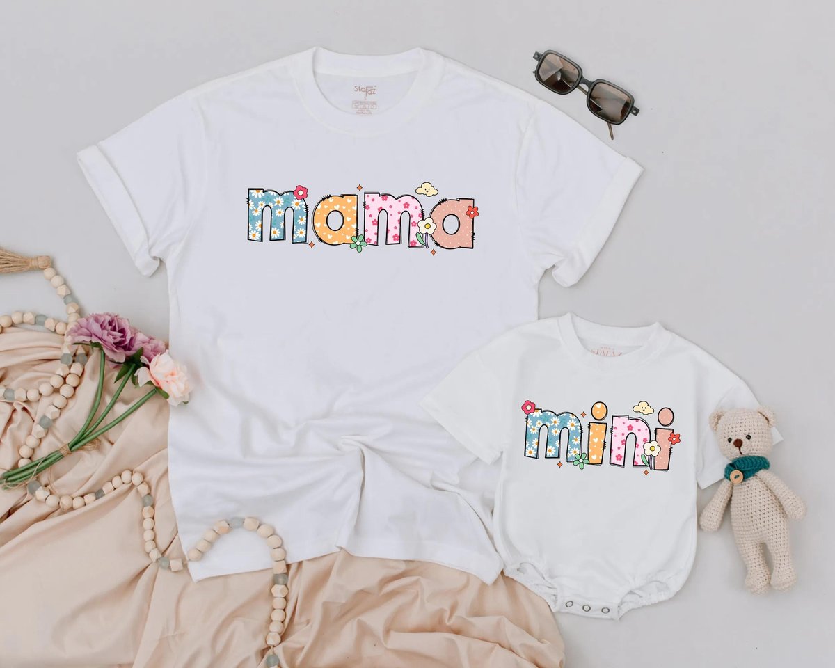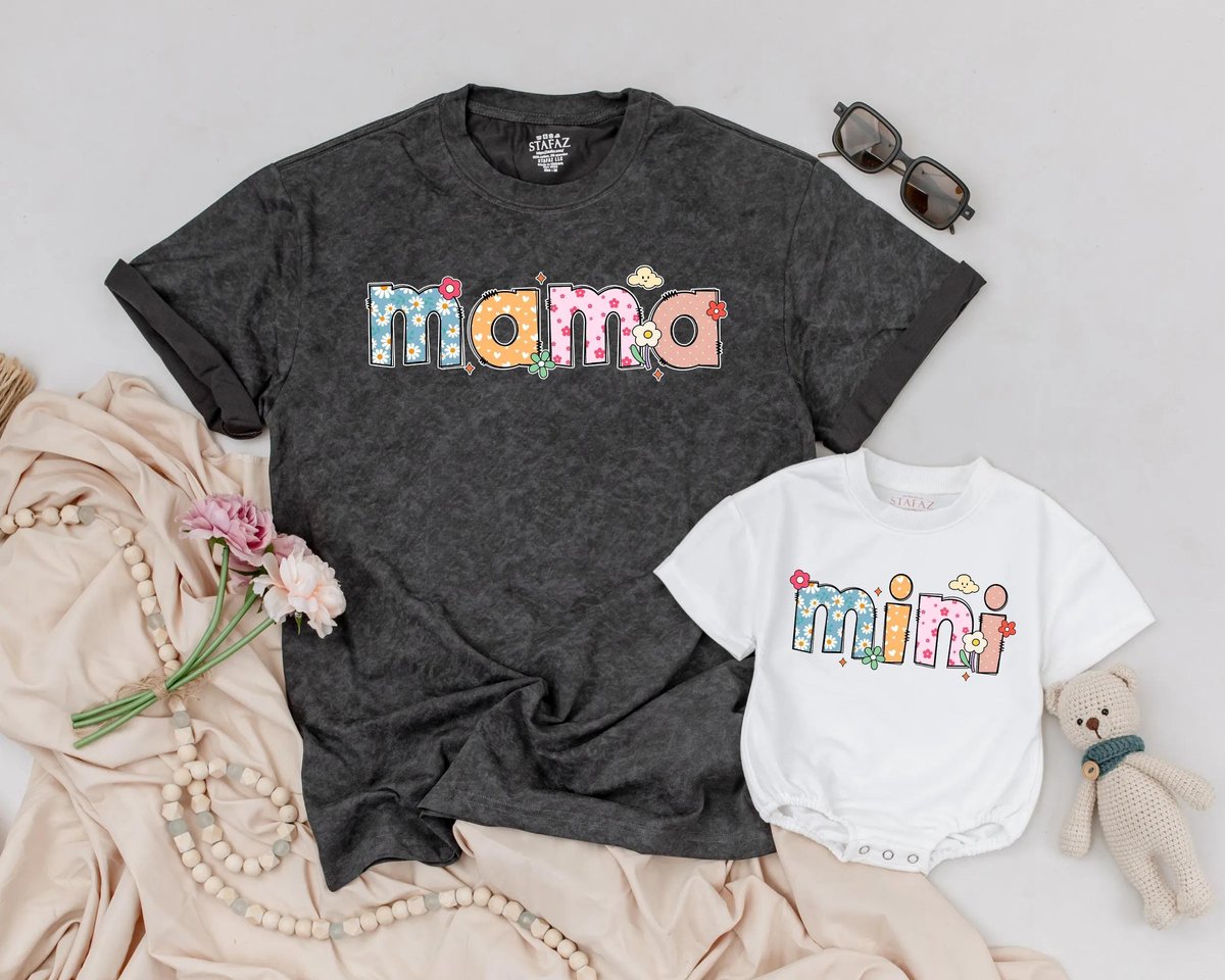 Mothers Day Flower Shirt Retro Mama Mini Matching Tee Mom and Baby Outfit Floral Mommy and Me Shirt 189