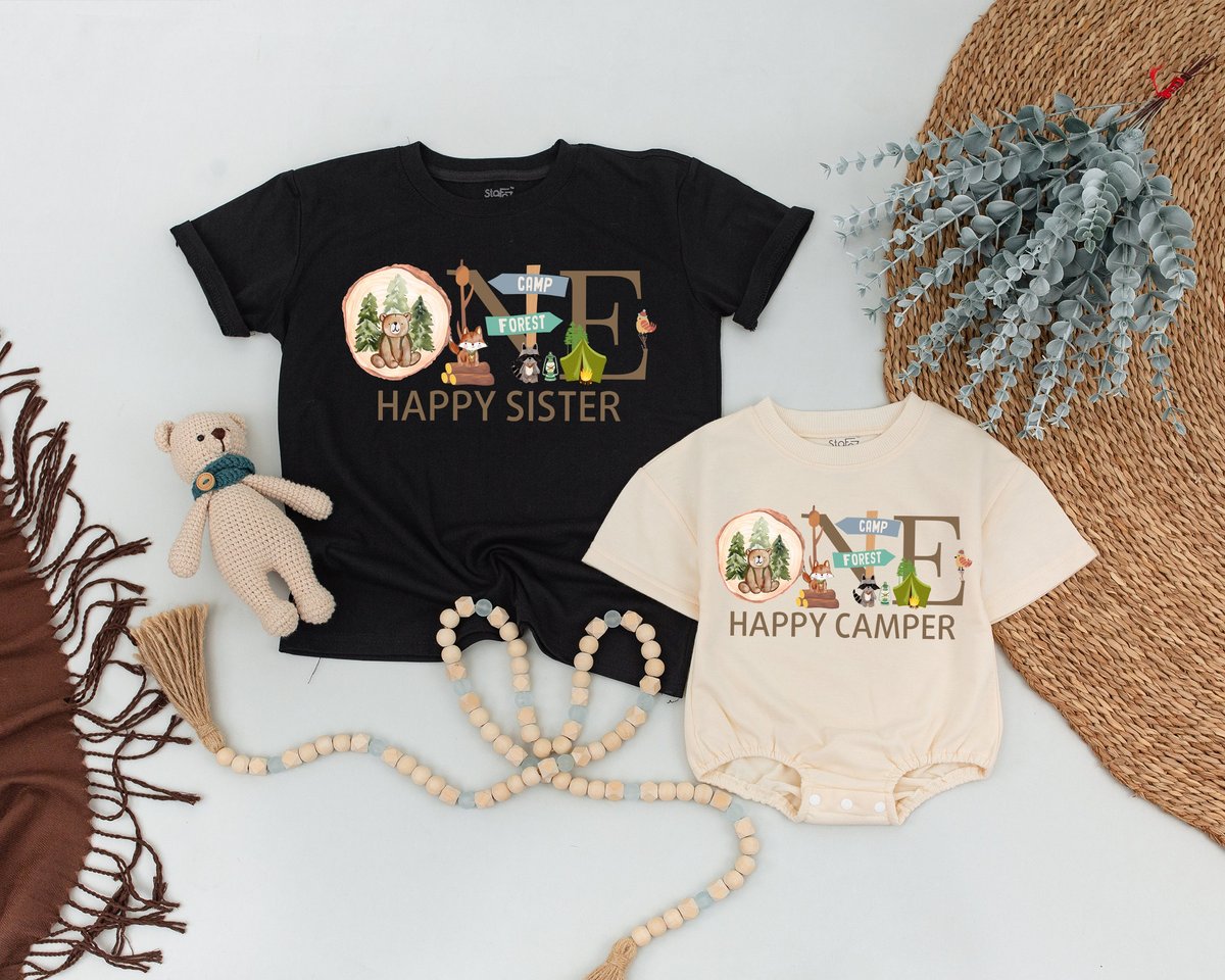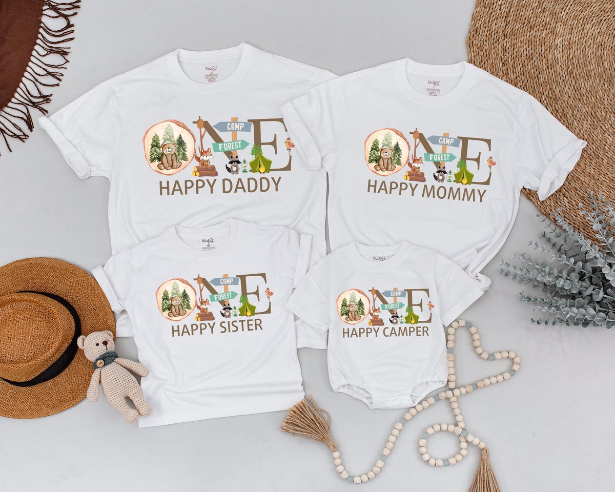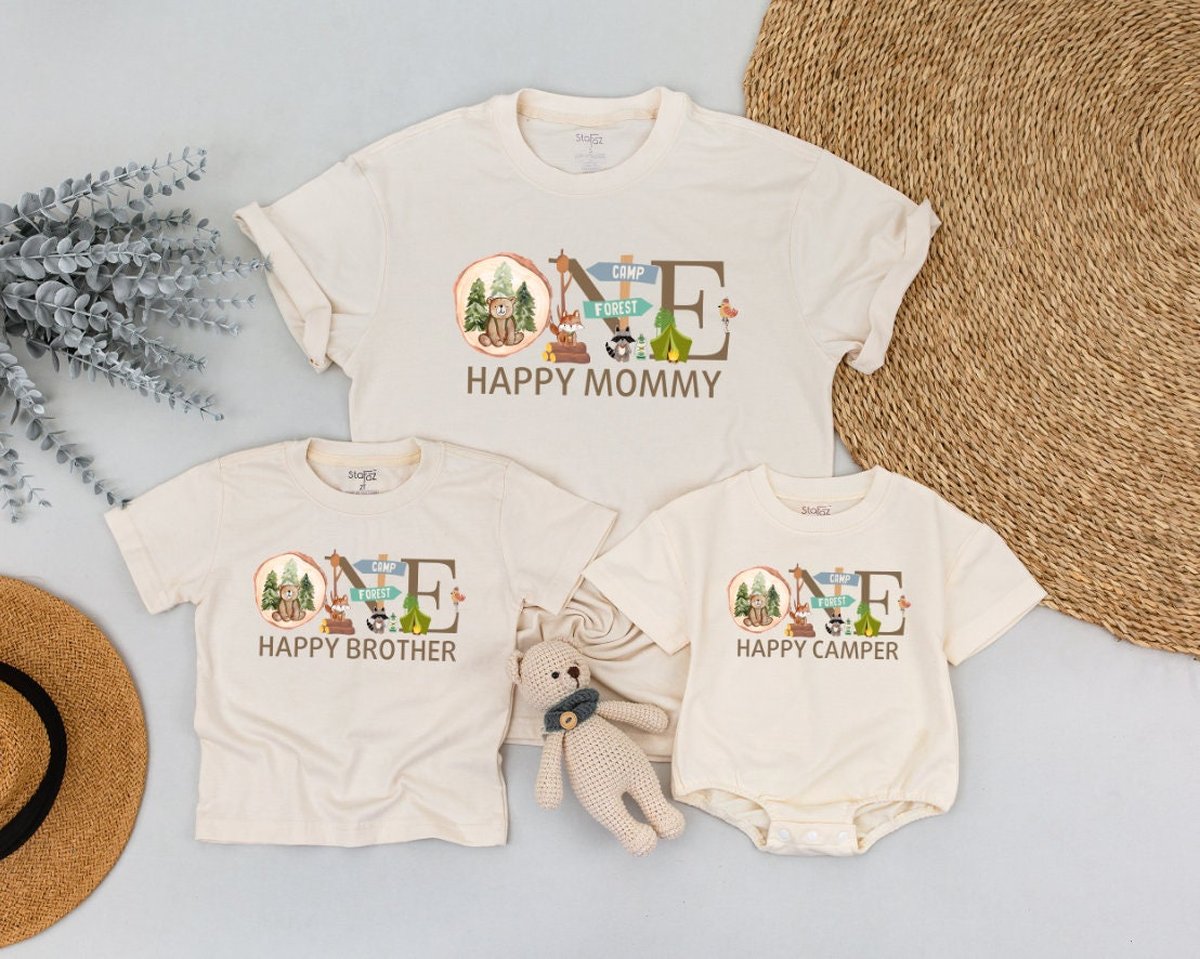 One Happy Camper Birthday Shirt Camping 1st Birthday Outfit Matching Family Camping Shirts Mommy and 166