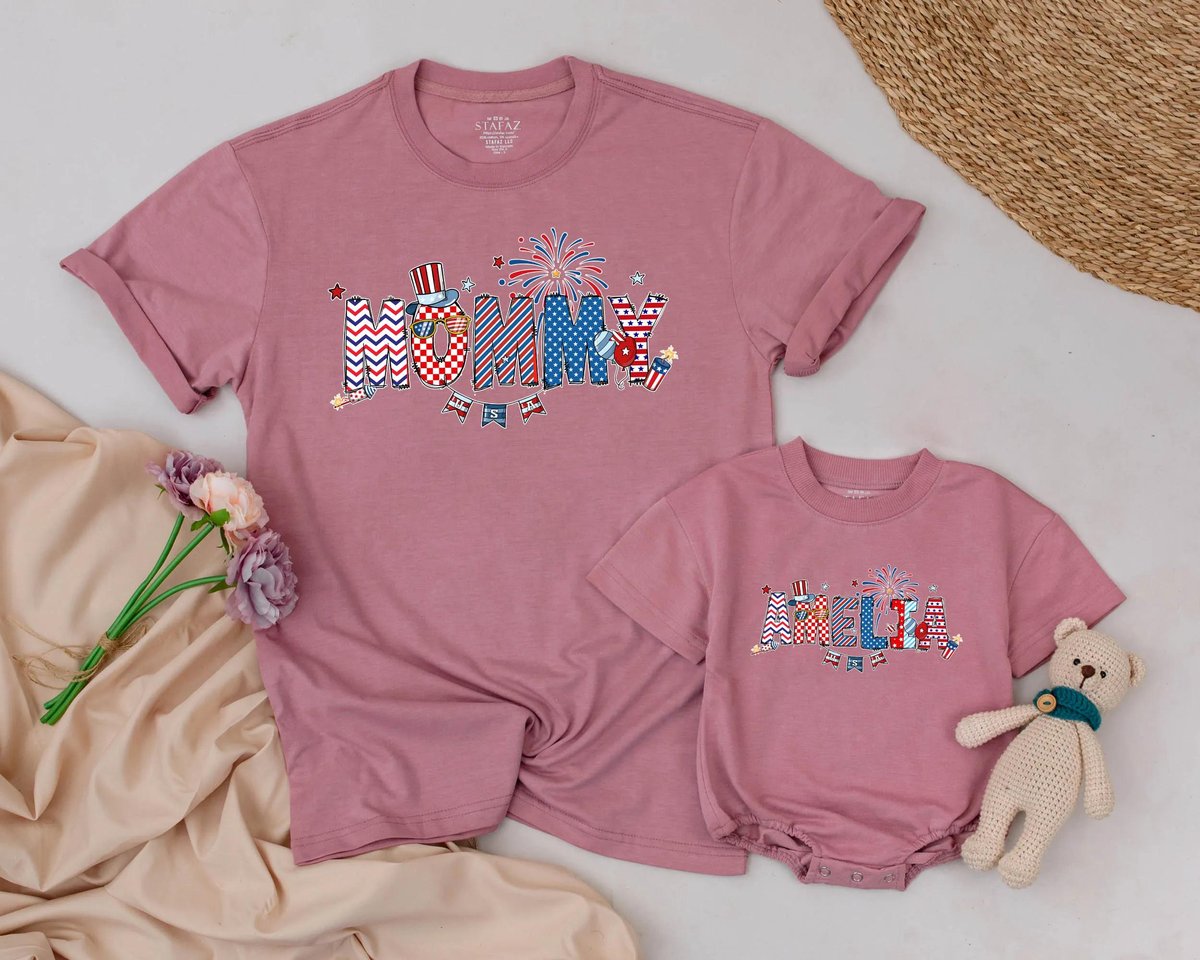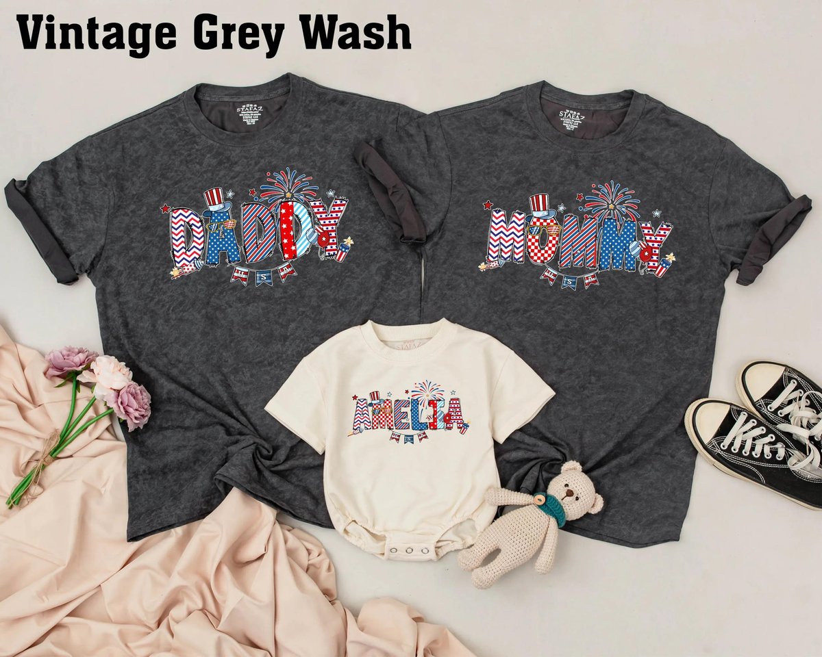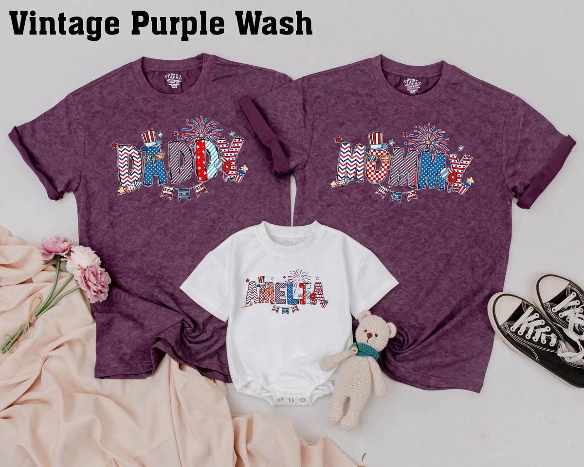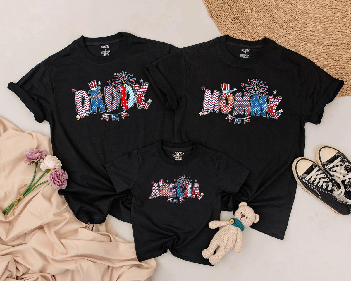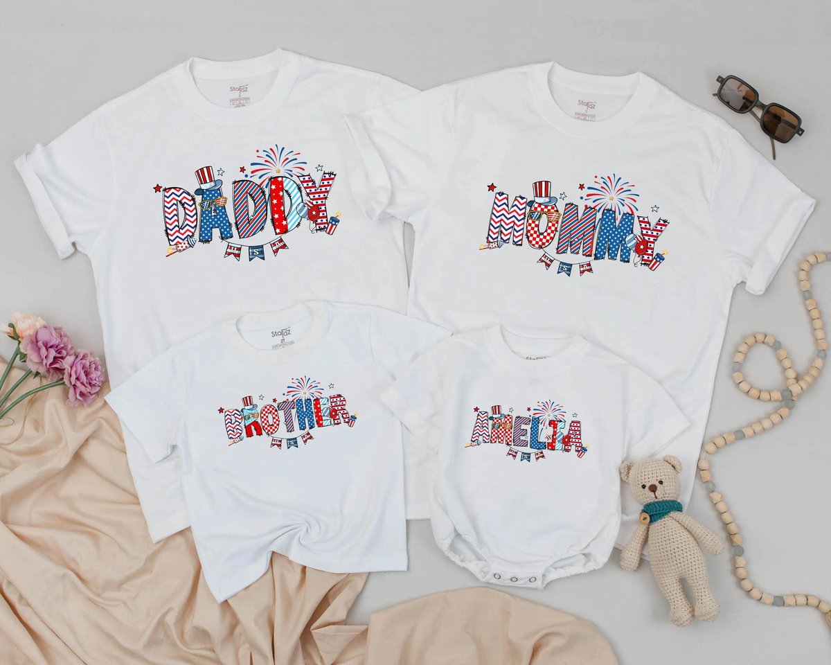 Personalized 4th of July Matching Family Shirts Patriotic USA Flag Outfits Red White Blue Family Tee 430