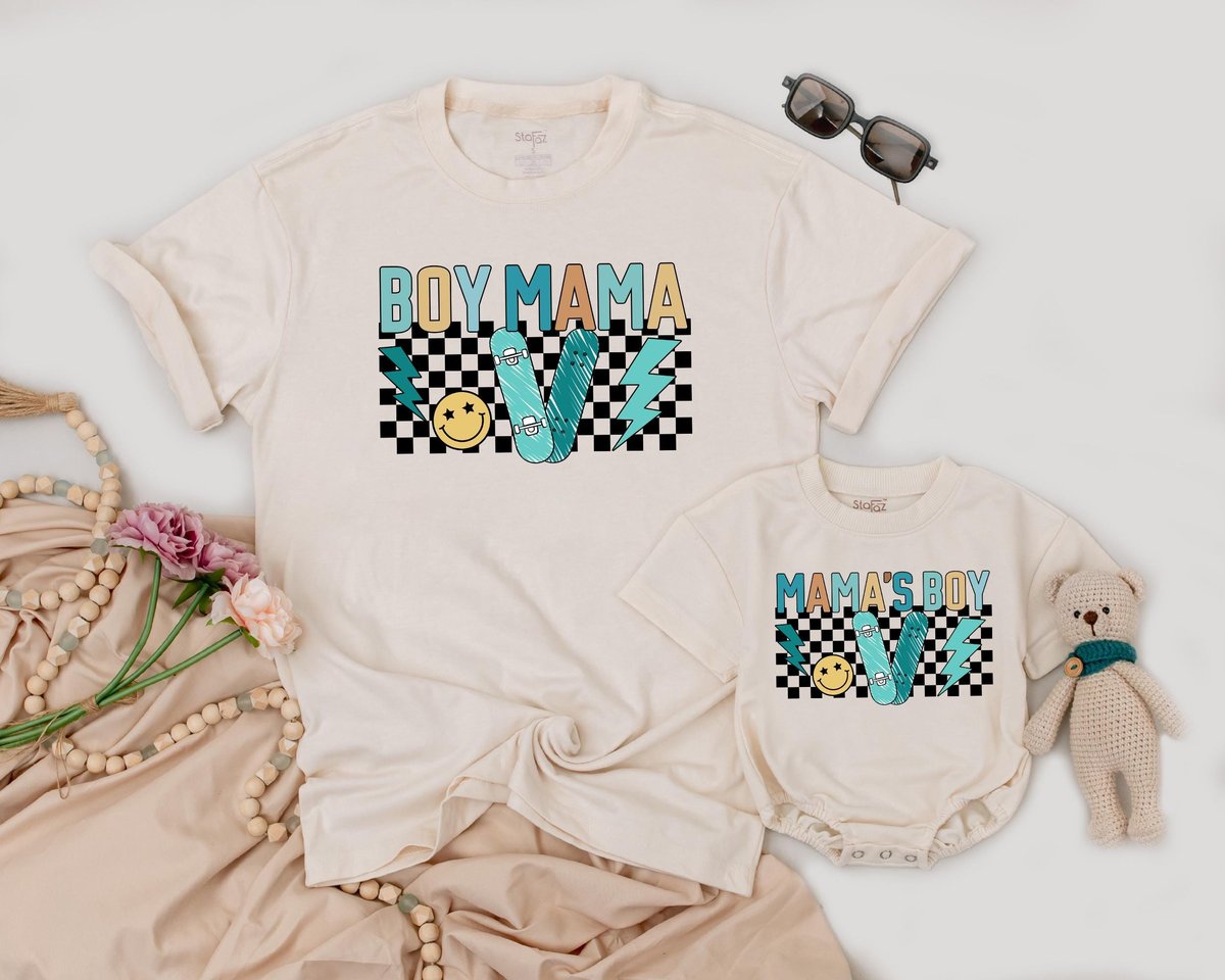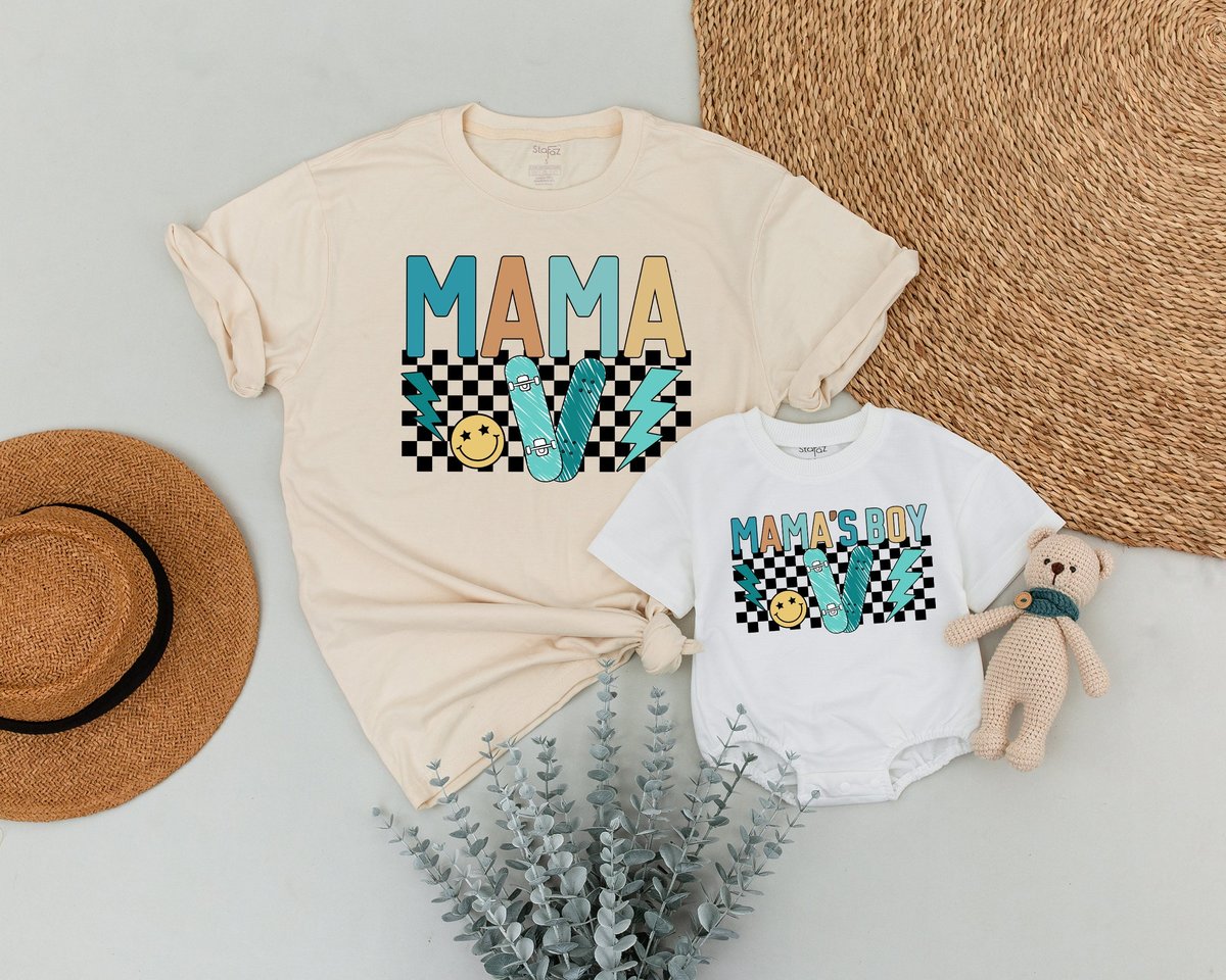 Personalized Boy Mama and Baby Boy Matching Outfit Custom Family Baby Shower Gift Checkered Mom’s B 170