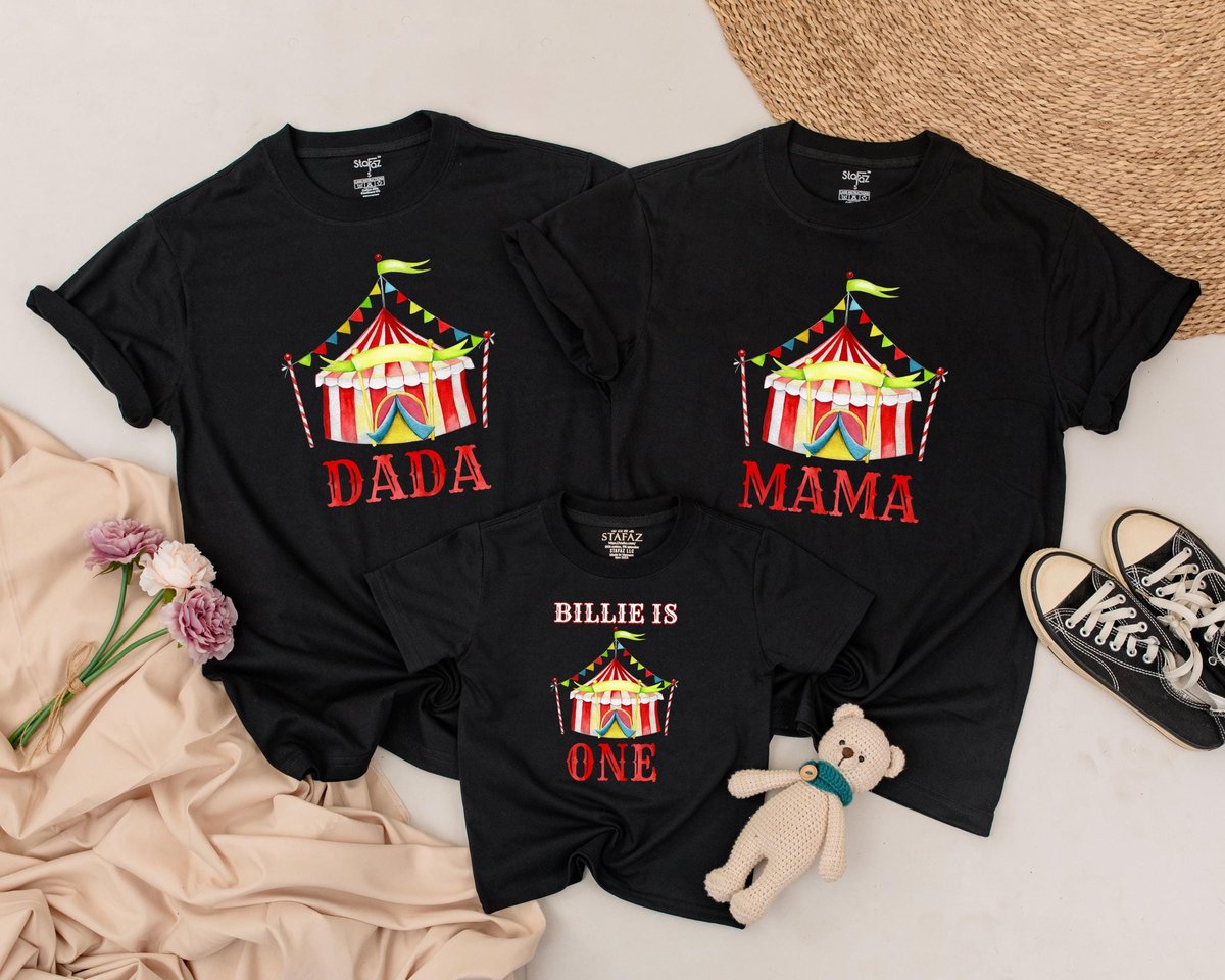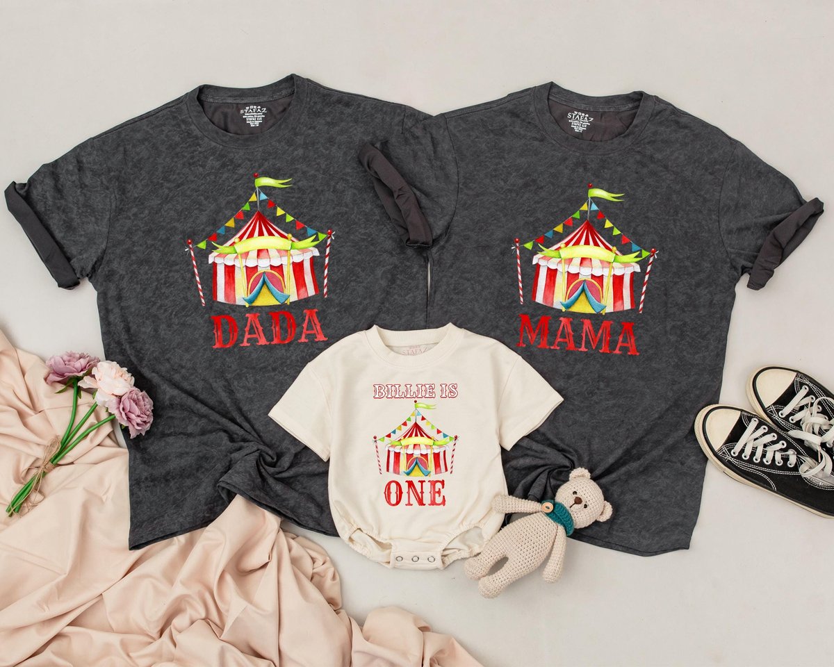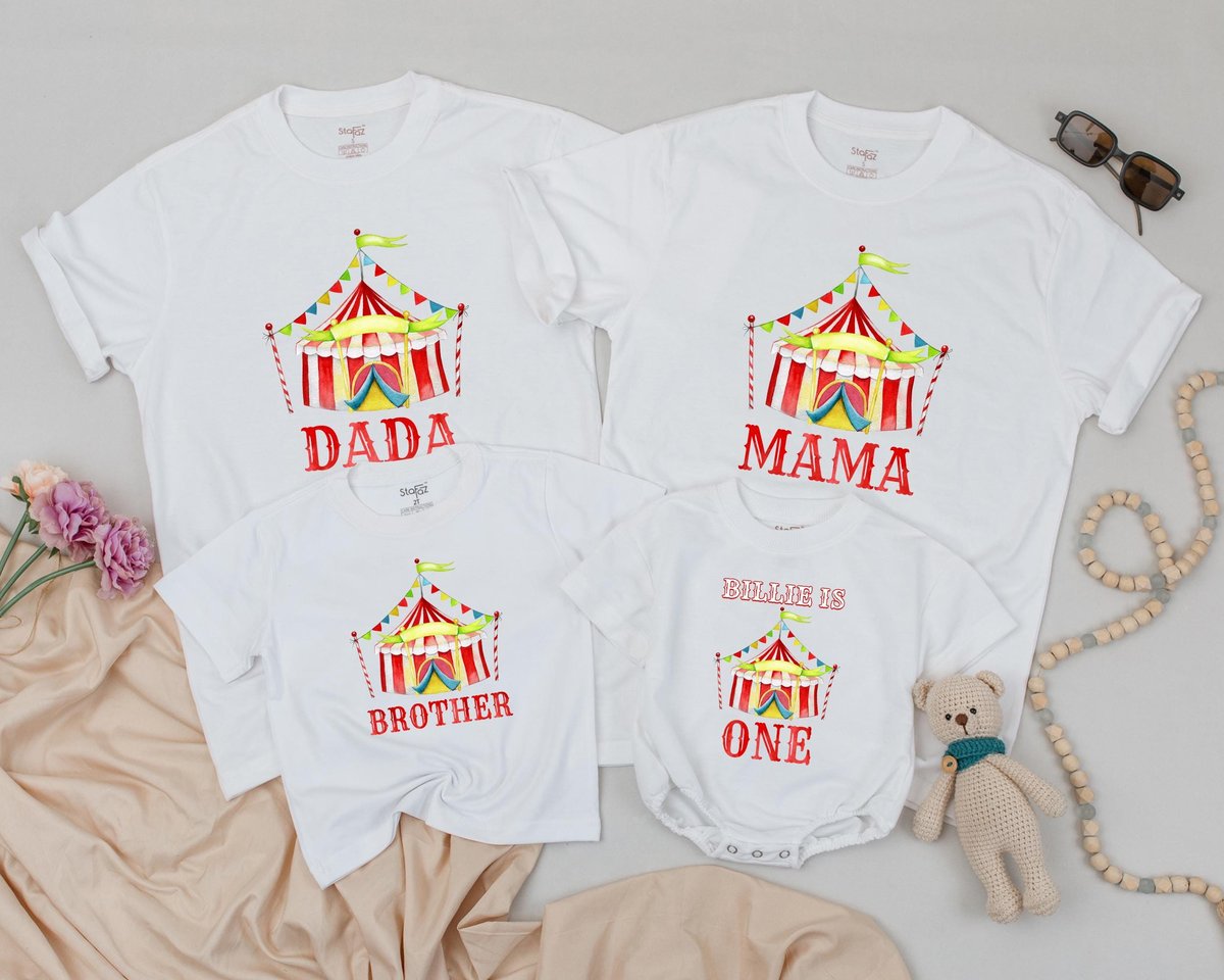 Personalized Circus Birthday Shirts Carnival Family Matching Outfits Boys 1st Birthday Baby Bodysuit 187