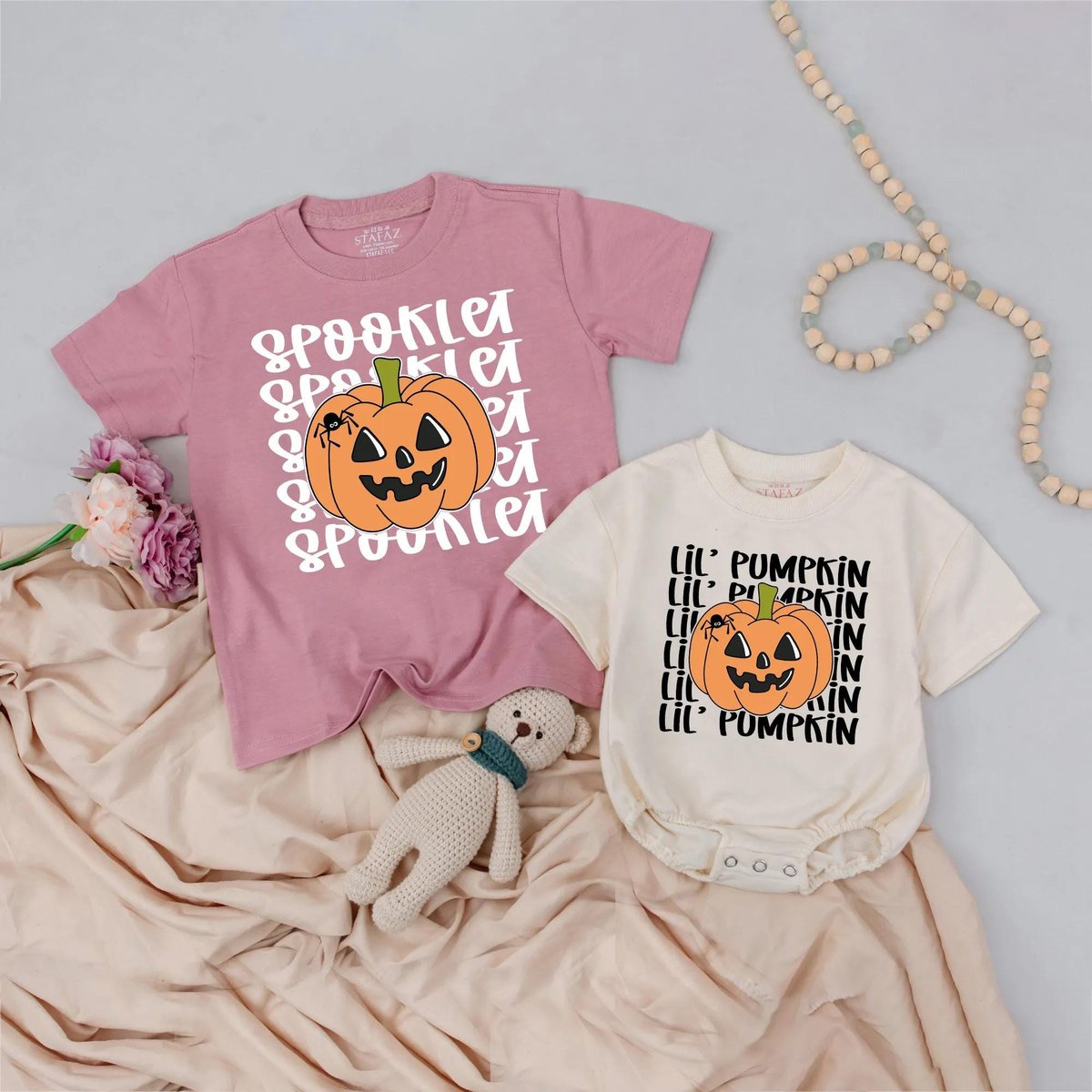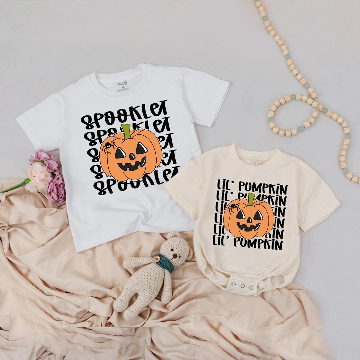 Personalized Halloween Shirt Matching Sibling Outfit Spooky Season Tee Sibling Halloween Costume Pum 437