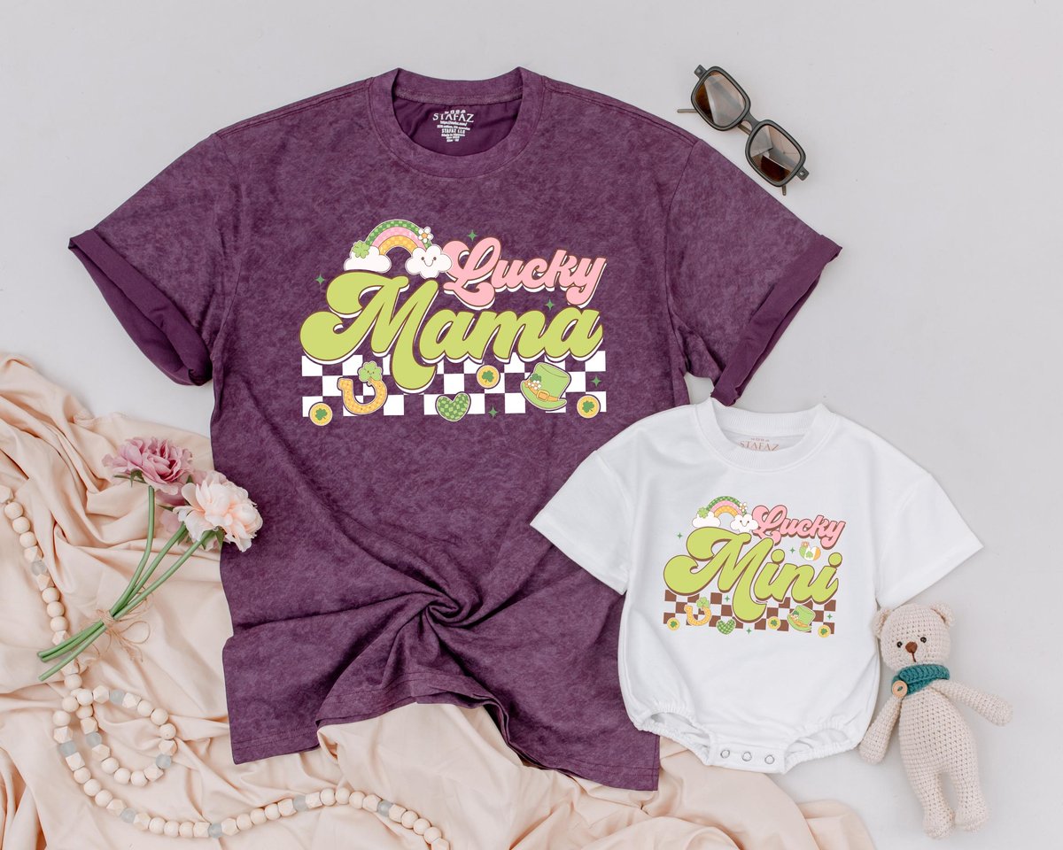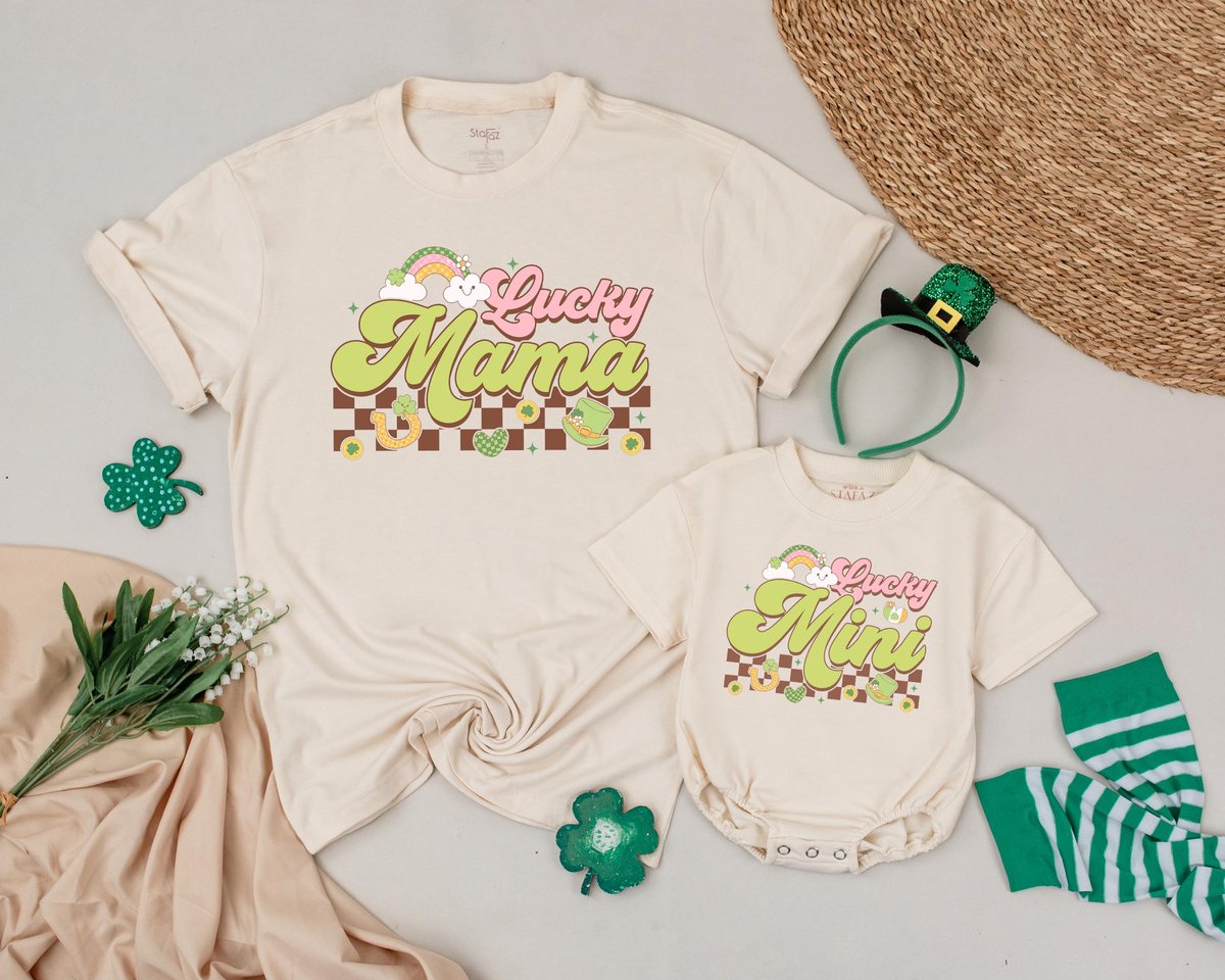Personalized Mama and Mini Shirts Retro Lucky Mom and Baby Shirts 1st Birthday Outfit St Patricks Da 184