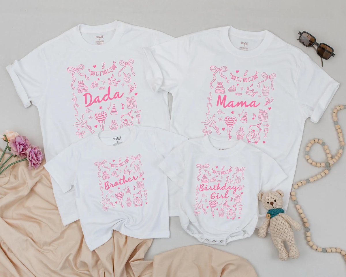 Personalized Matching Bow Birthday Shirt Pink Bow Birthday Party Outfit First Birthday Girl One Year 436
