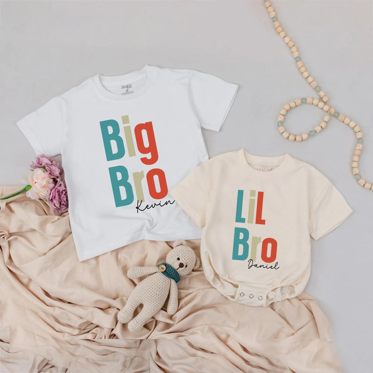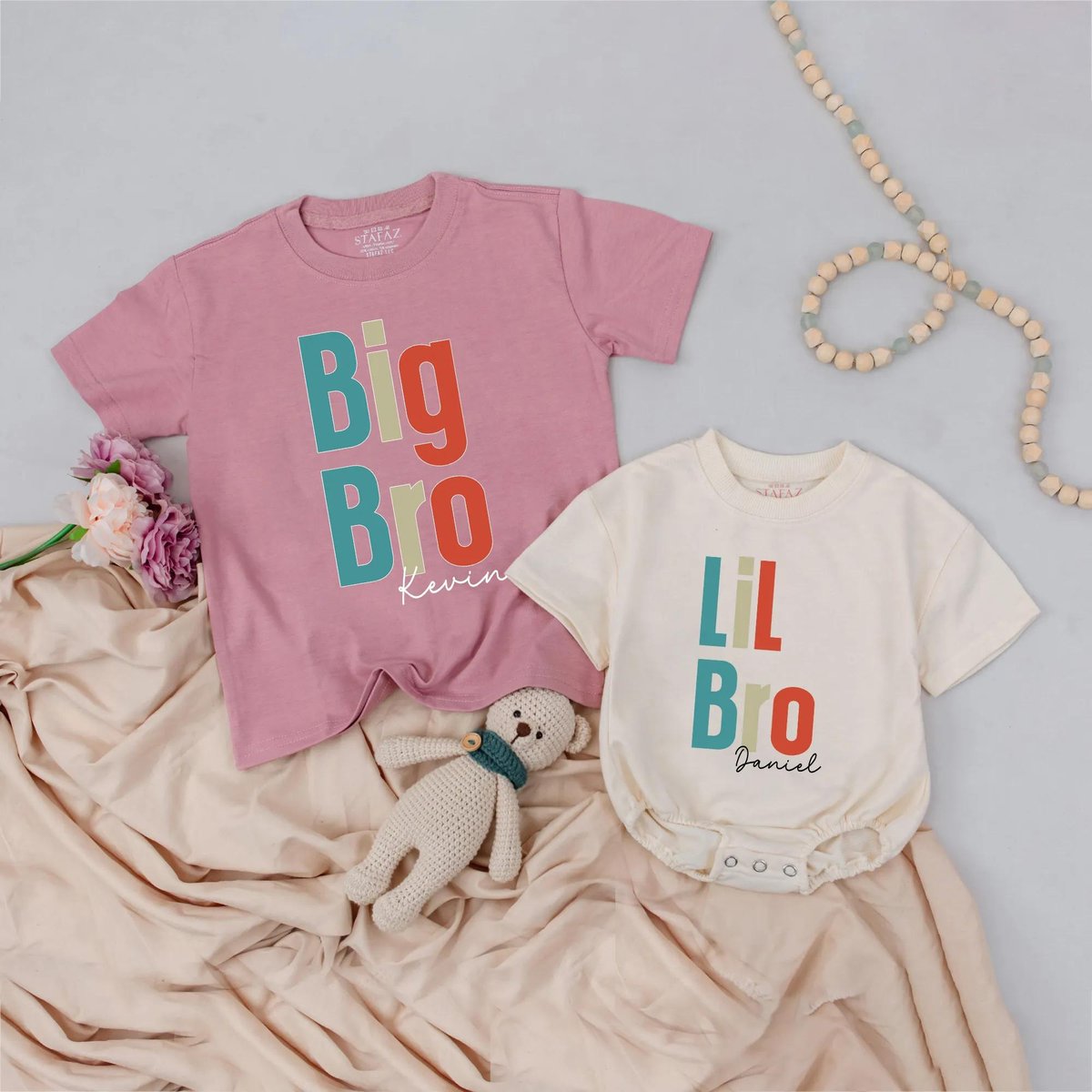 Personalized Name Big Bro Lil Bro Matching Shirts Custom Sibling Outfits Toddler and Baby Brother Cl 432