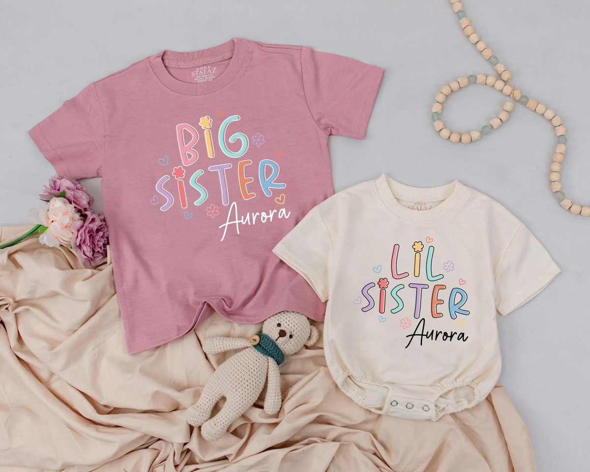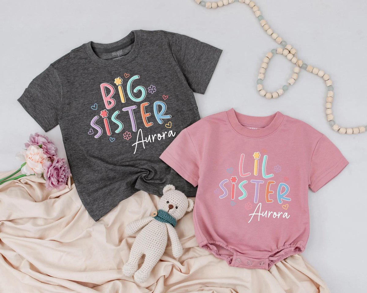 Personalized Sister Matching Outfit Cute Name Gift For Siblings Pastel Style Toddler Sister Outfit N 430