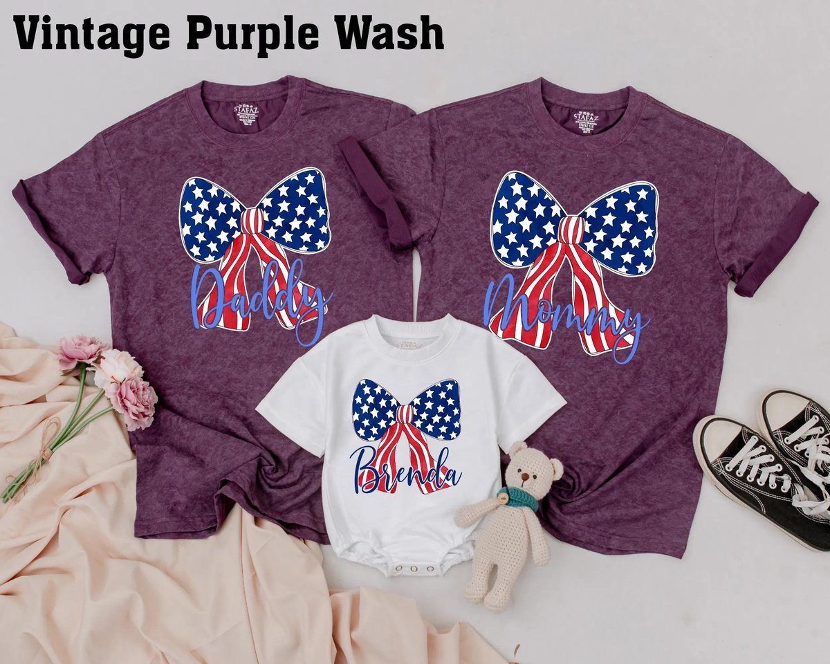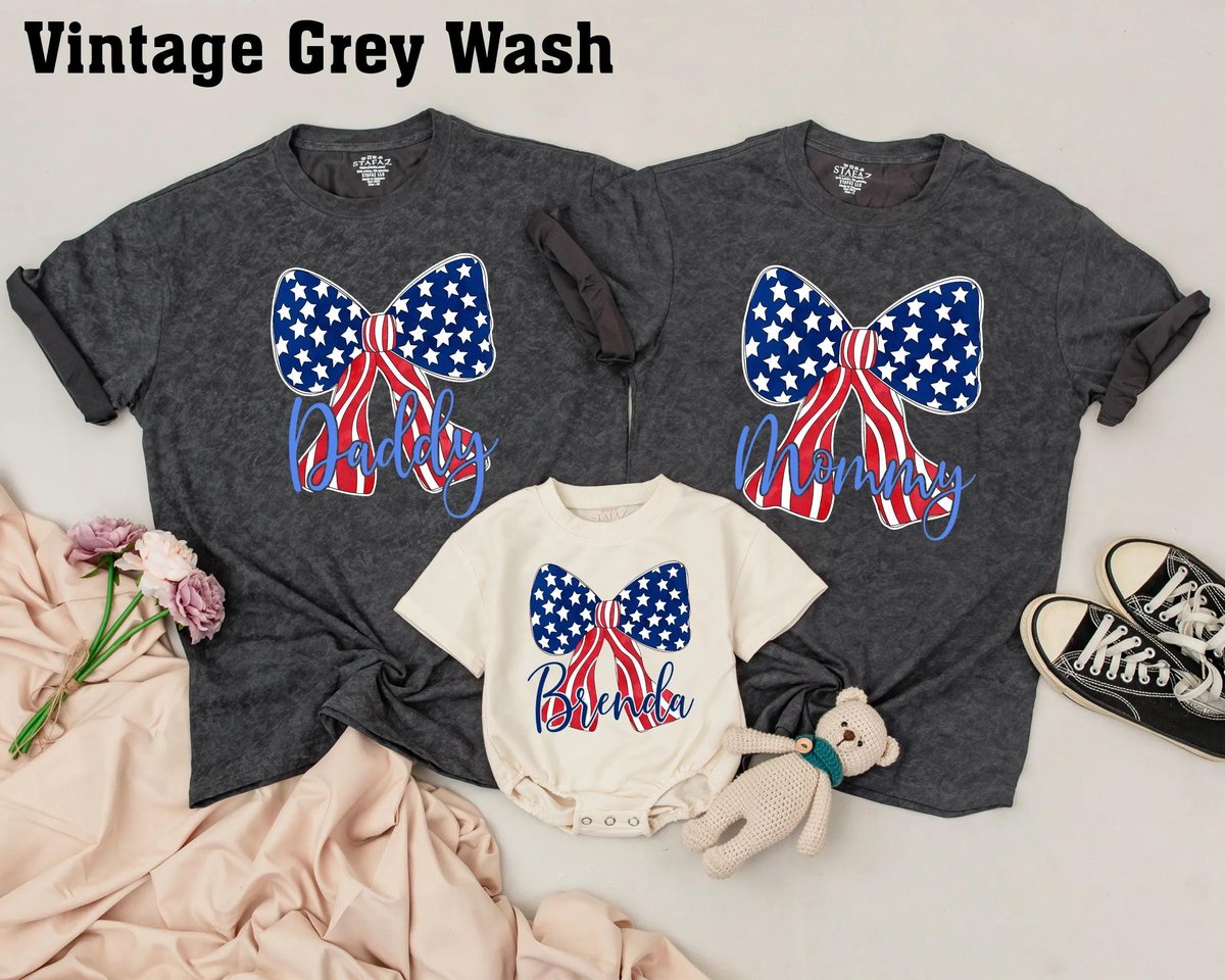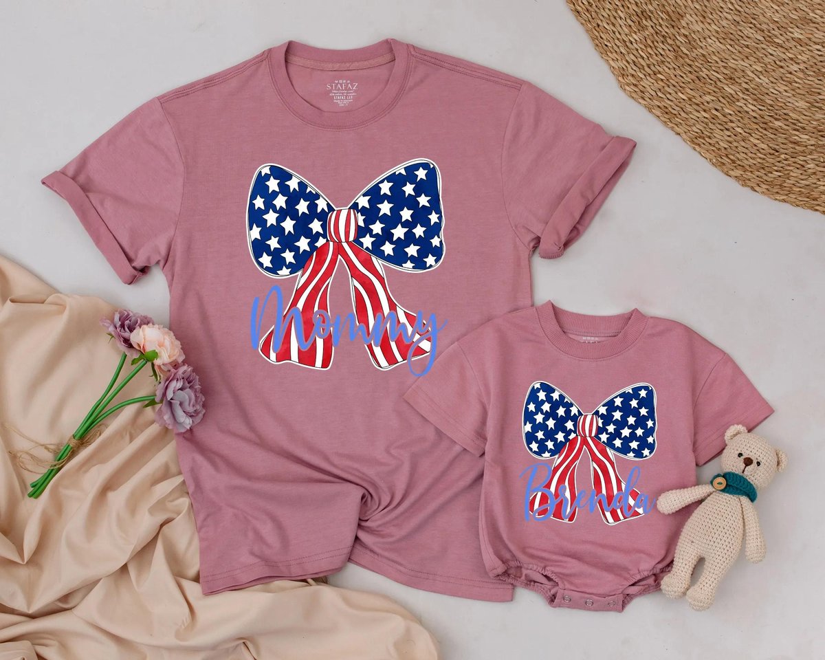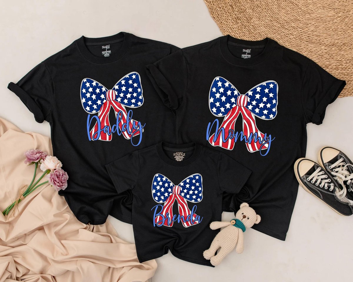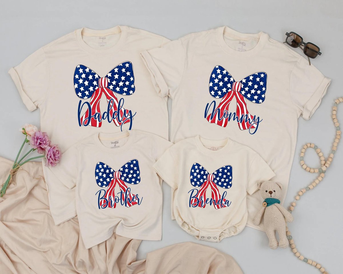 Perspnalized Bow 4th of July Matching Family Shirts Patriotic Red White Blue Outfit USA Flag Bow Fam 430