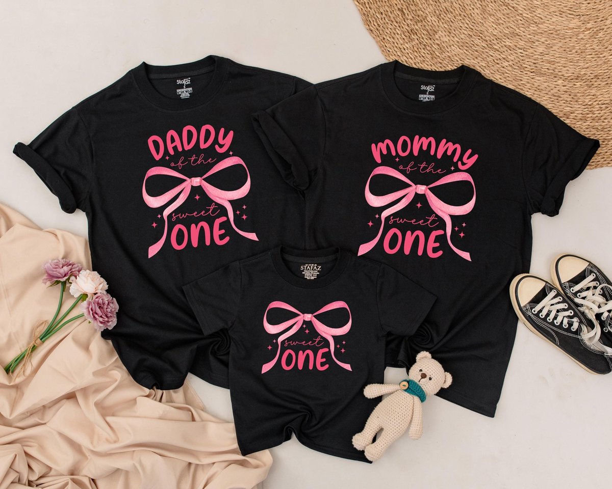 Pink Bow First Birthday Family Shirt Bow 1st Birthday Outfit Birthday Girl Sweet One Birthday Party 187