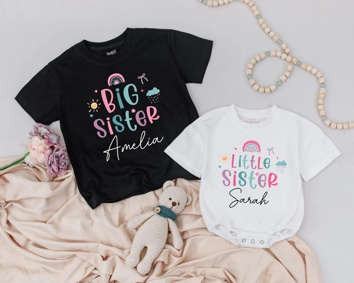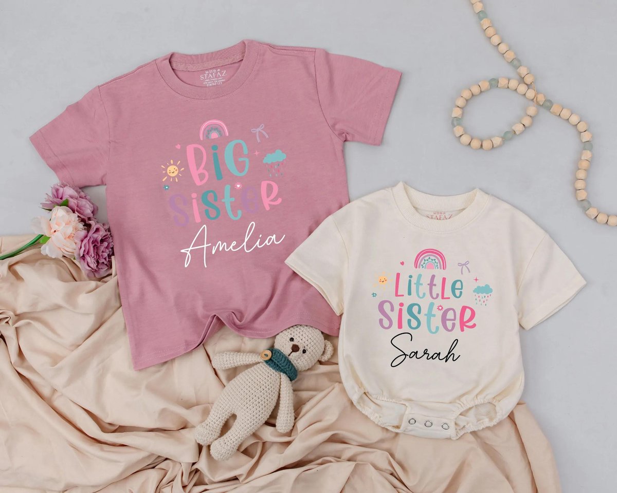 Rainbow Sibling Shirts Big and Little Sister Matching Outfits Baby Girl Clothes Toddler Sister Outfi 189