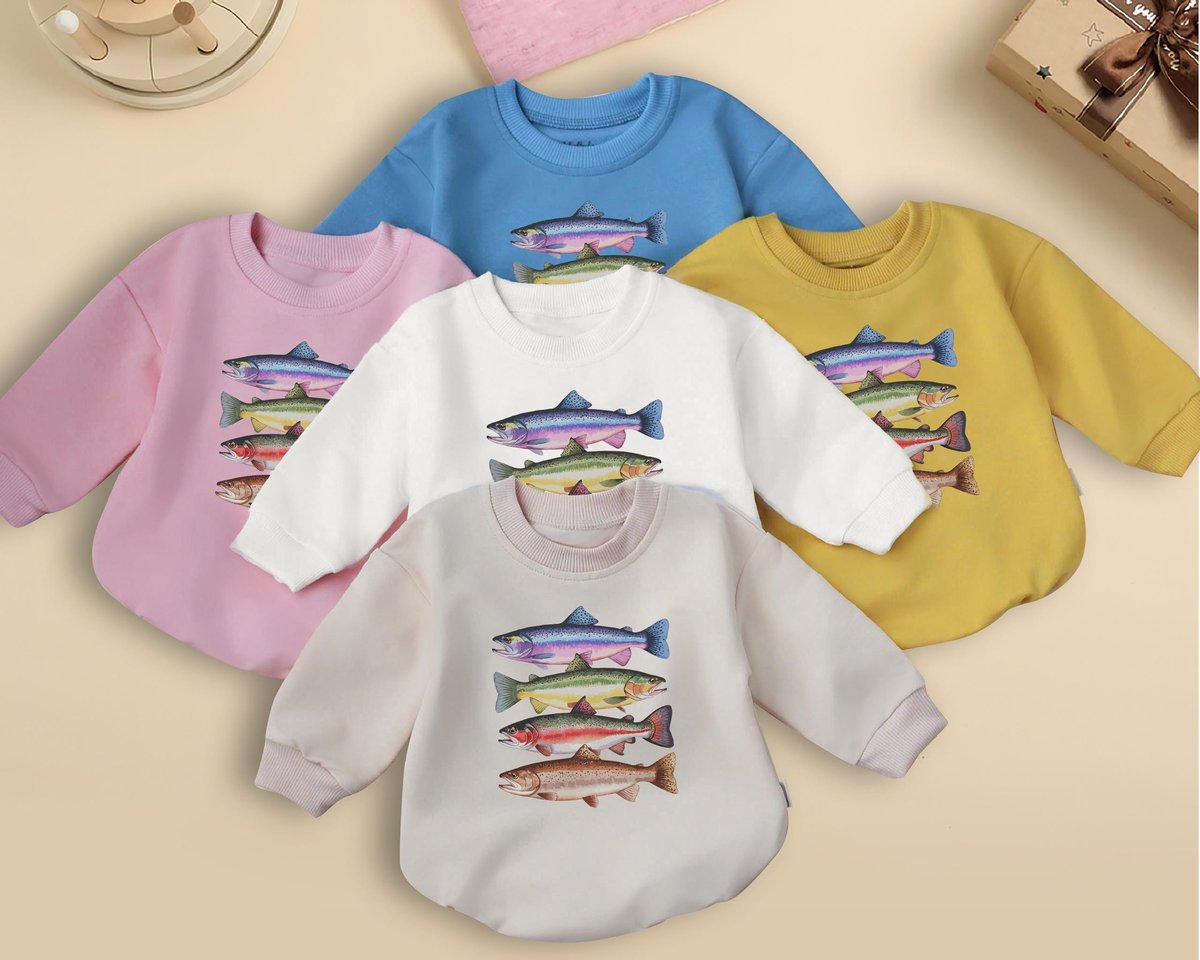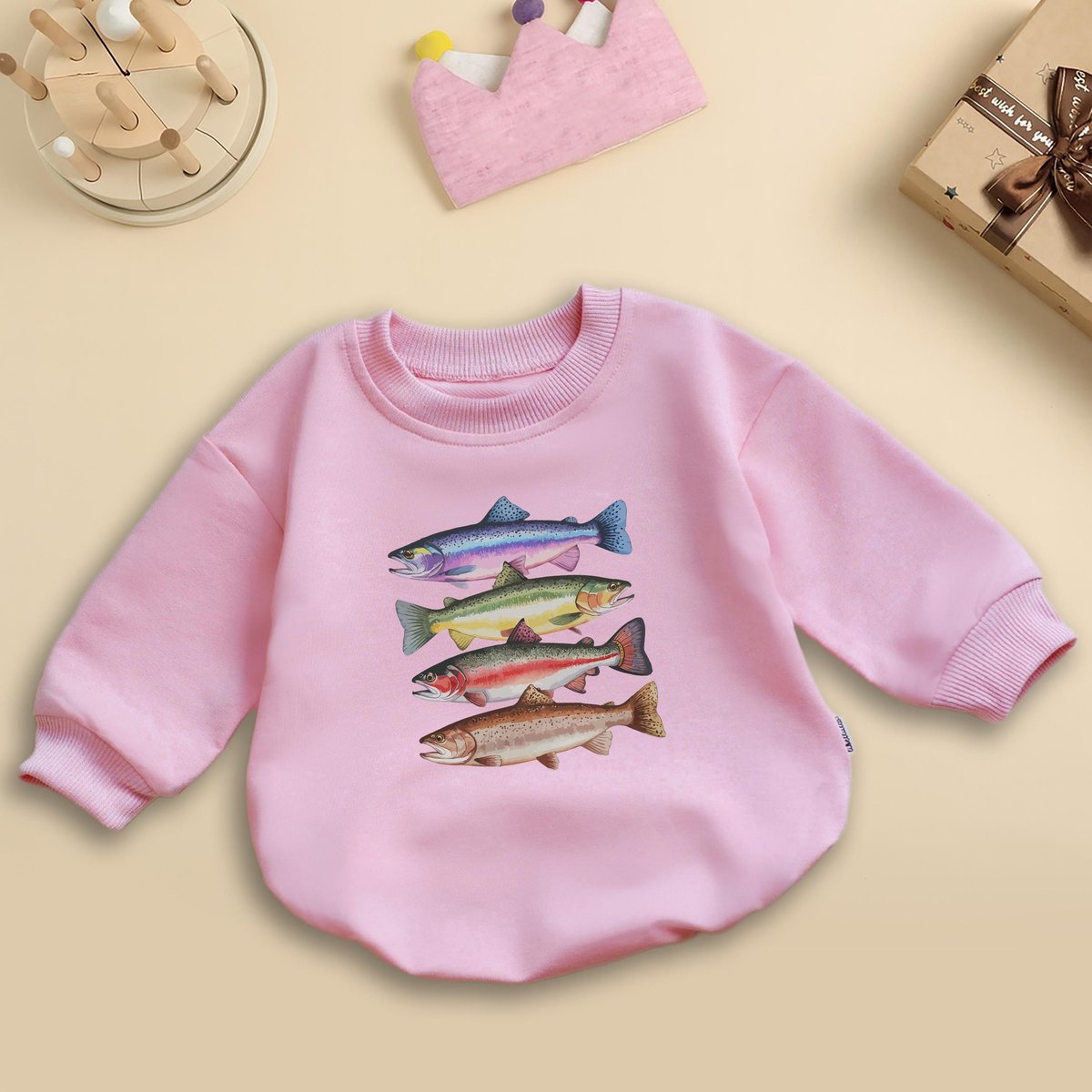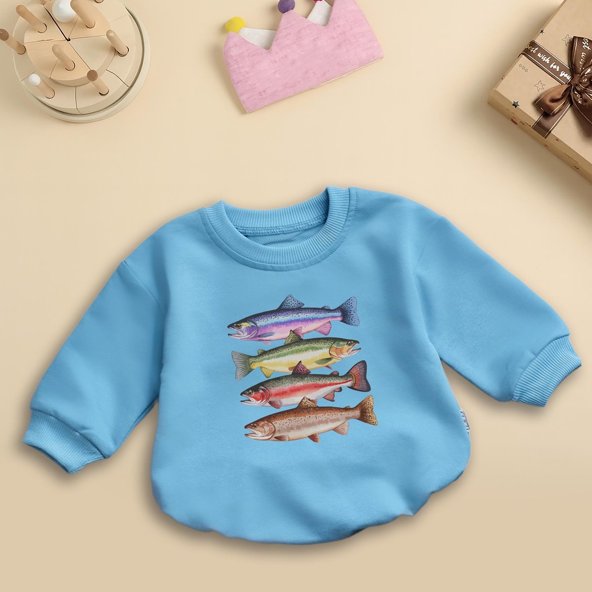 Abstract Colorful Trout In A Row River Fish Trout Species Outfit Trout Baby Romper Fishing Romper fo 436