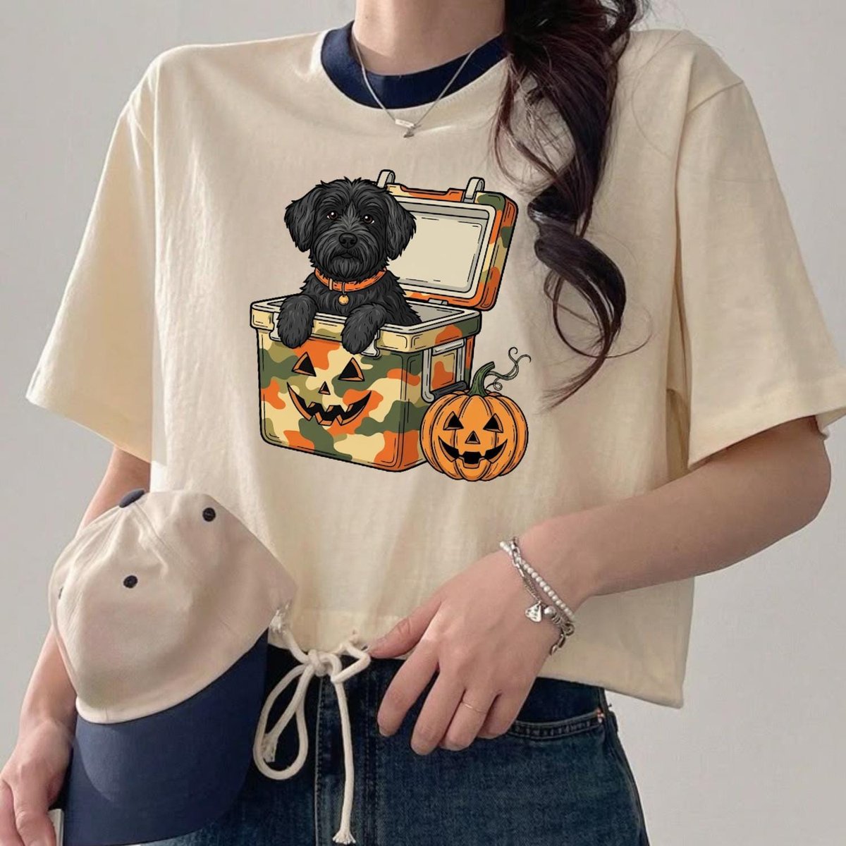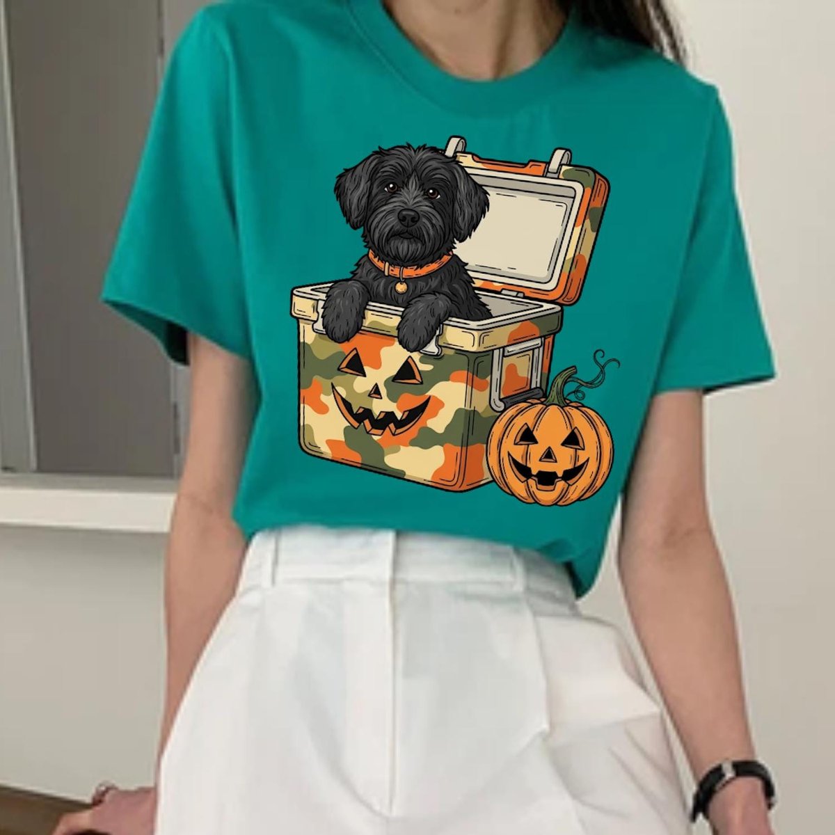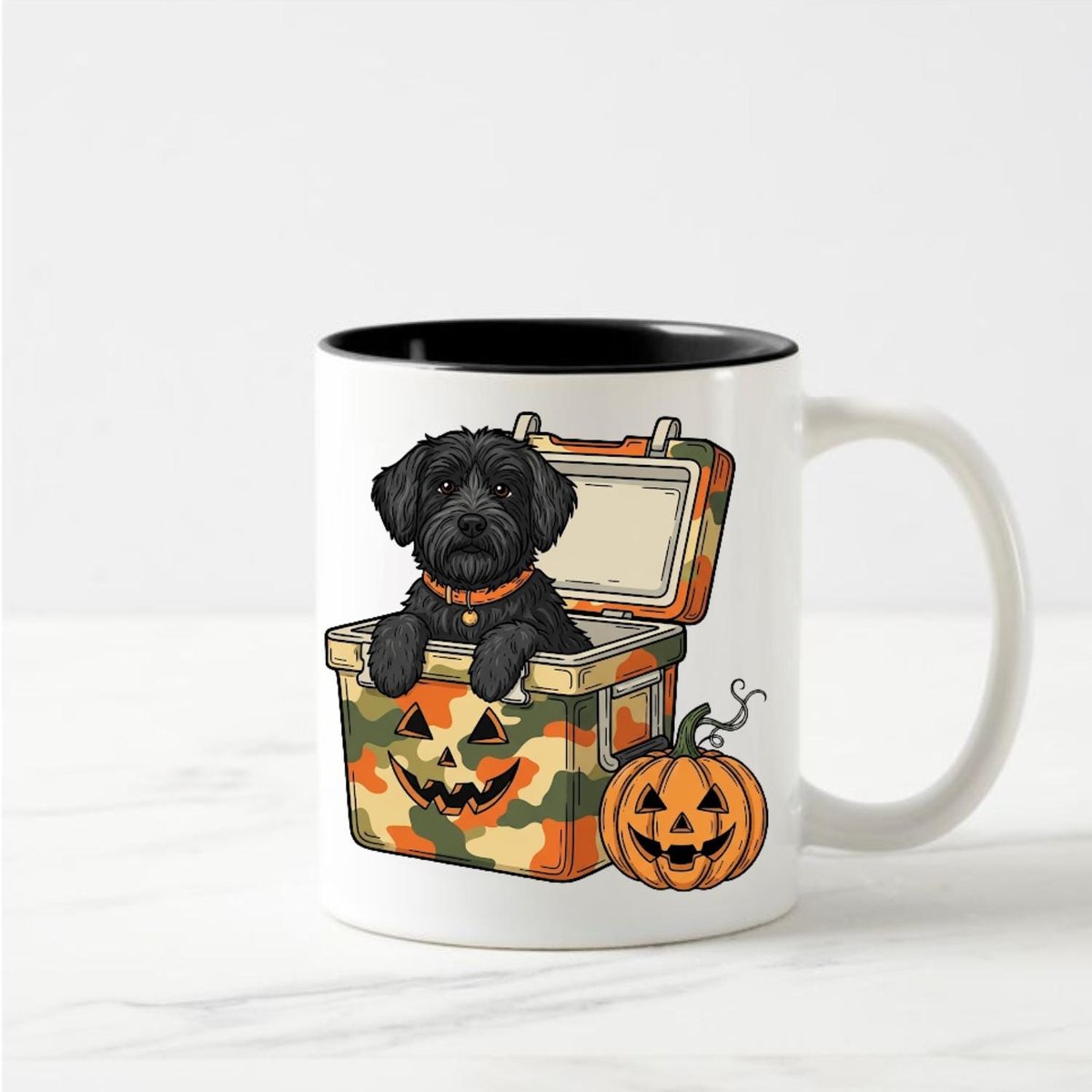 Black Dog in Camo Cooler PNG Halloween Puppy Clipart Digital Download with Jack O Lantern Sublimatio 434