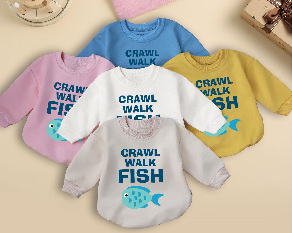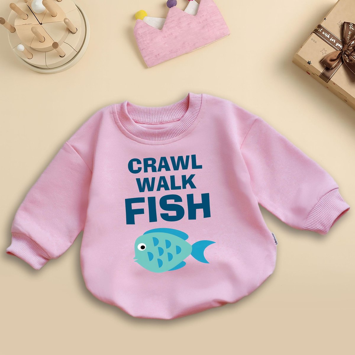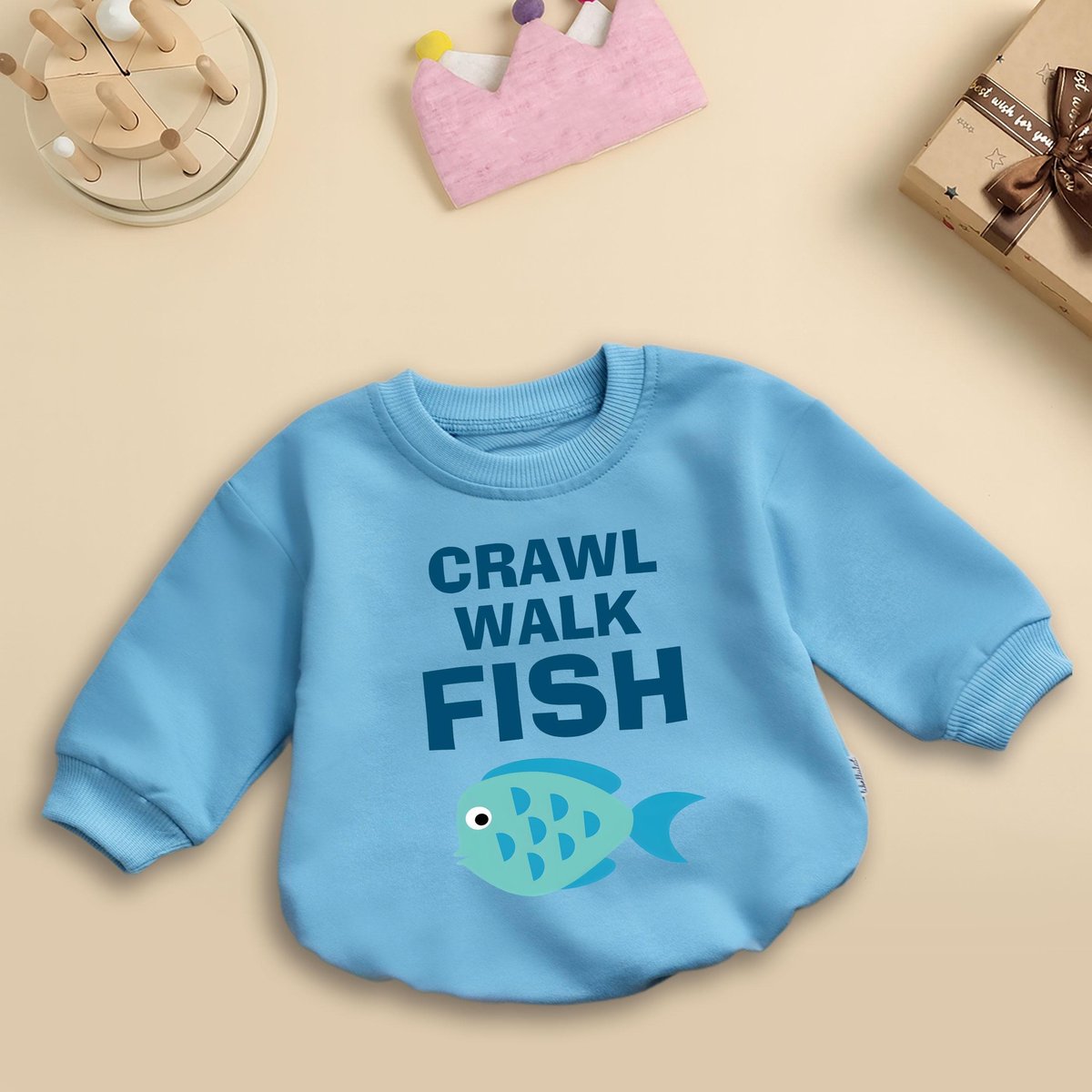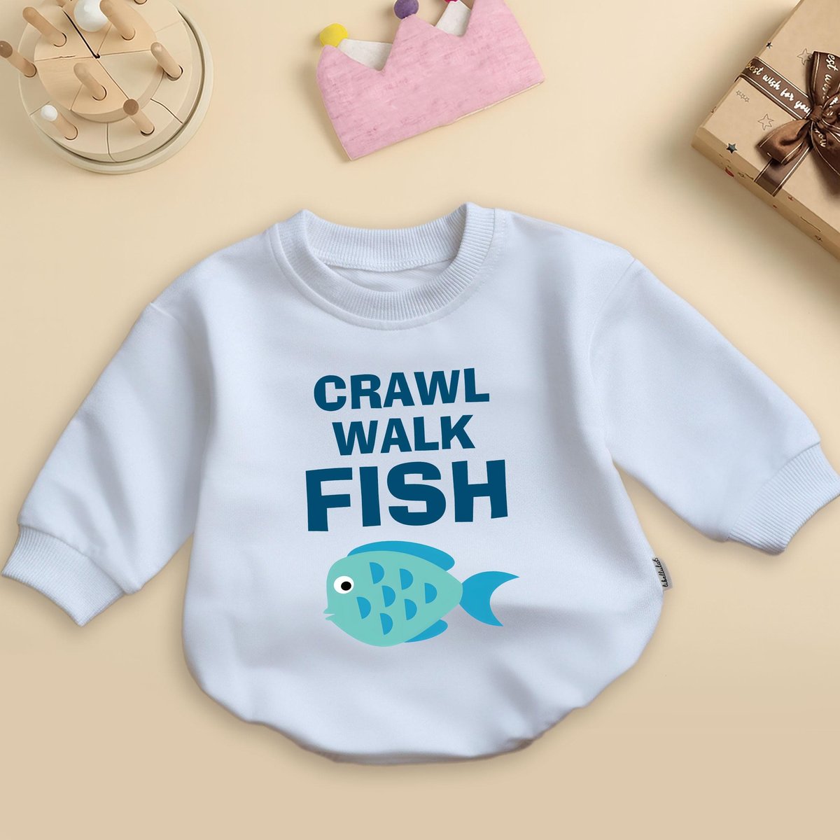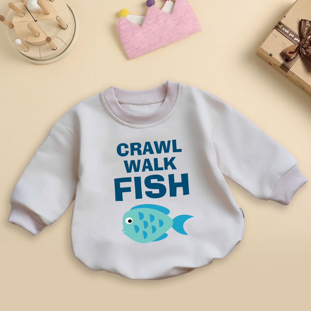 Crawl Walk Fish Romper Sweatshirt Cute Baby Outfit Funny Fish Baby Bodysuit Crawl Walk Fish Clothes 436