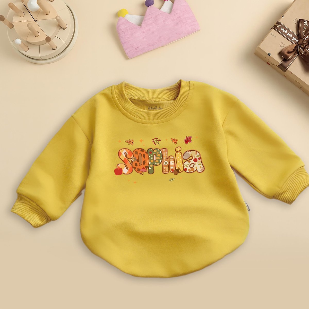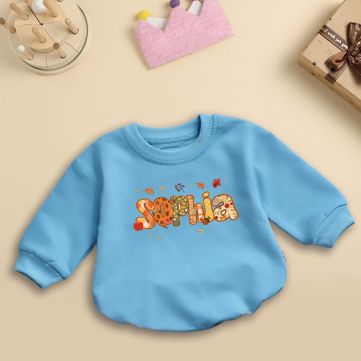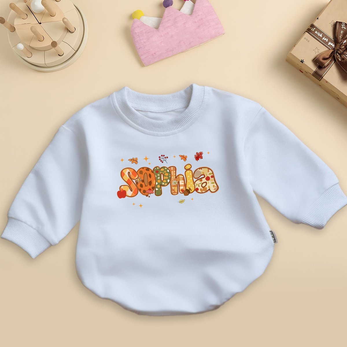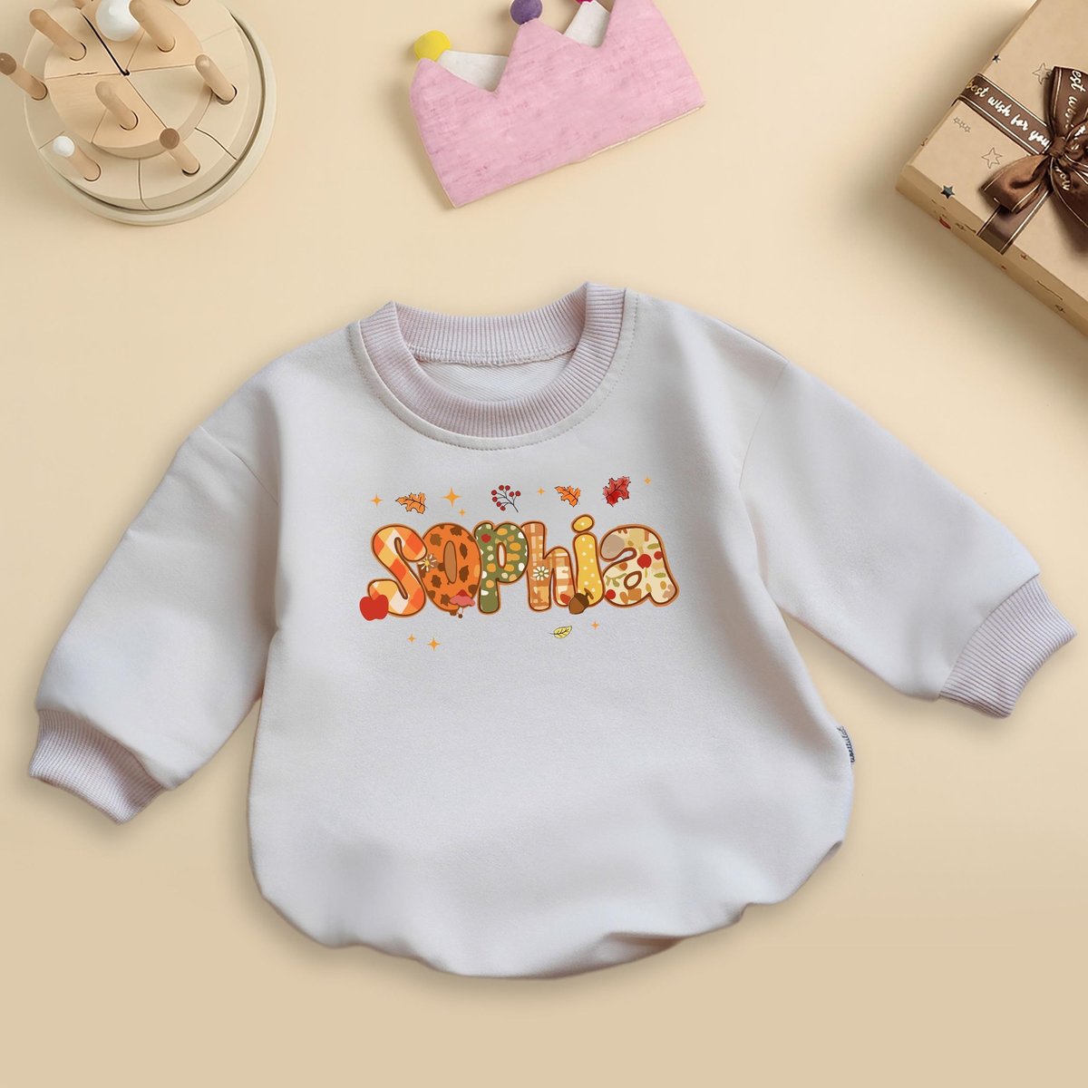 Custom Kids Fall Romper Thanksgiving Baby Bodysuit Autumn Outfit Baby Fall Name Romper 1st Birthday 436
