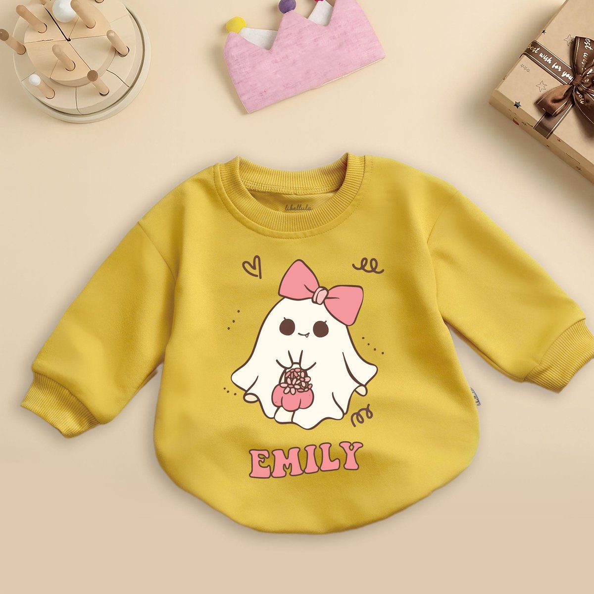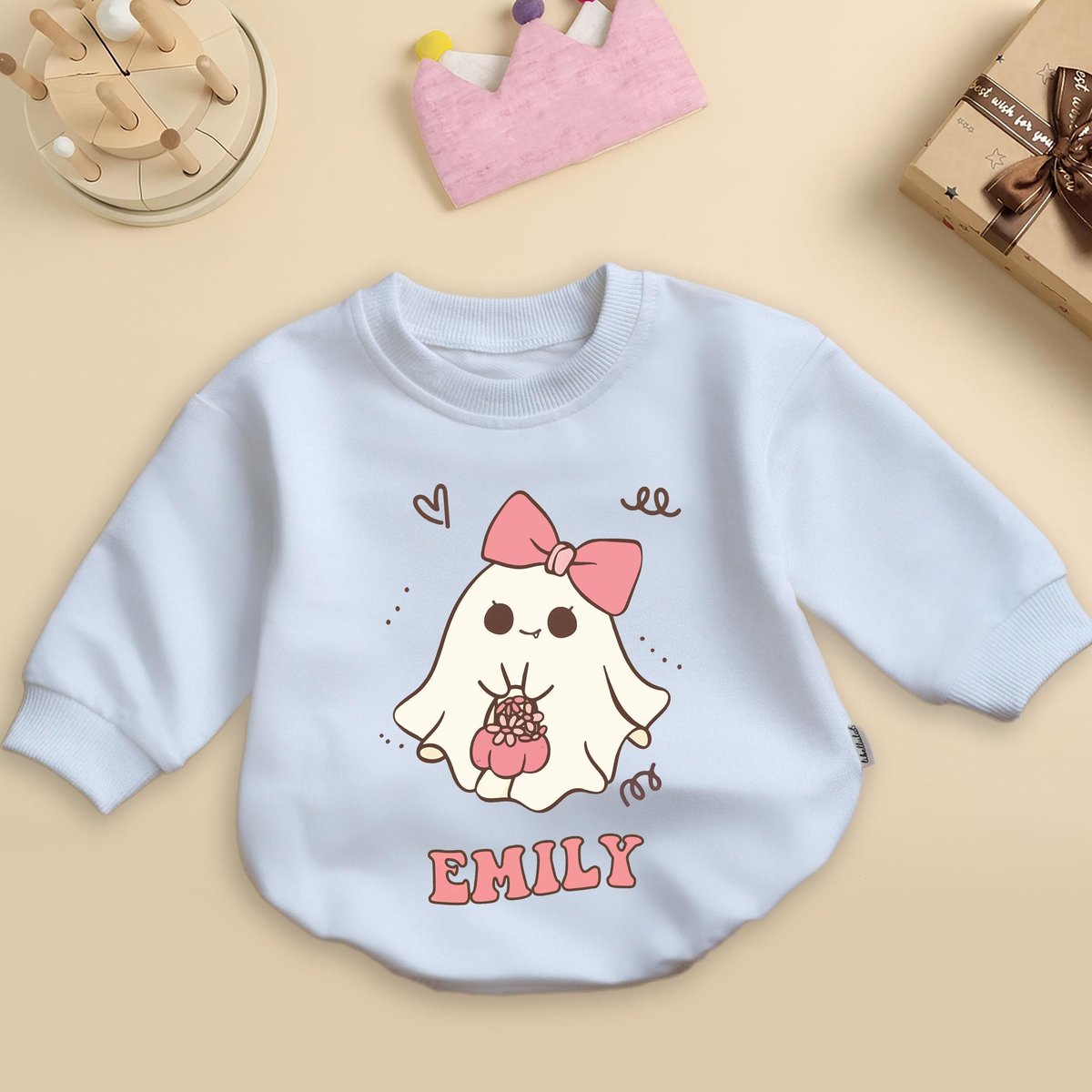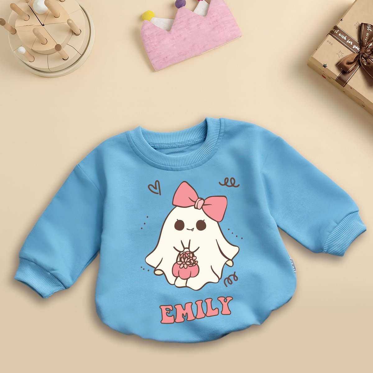 Custom Kids Halloween Romper Cute Retro Ghost Pink Bow Bodysuit Spooky Ghoul Coquette Pastel Bow Bab 436