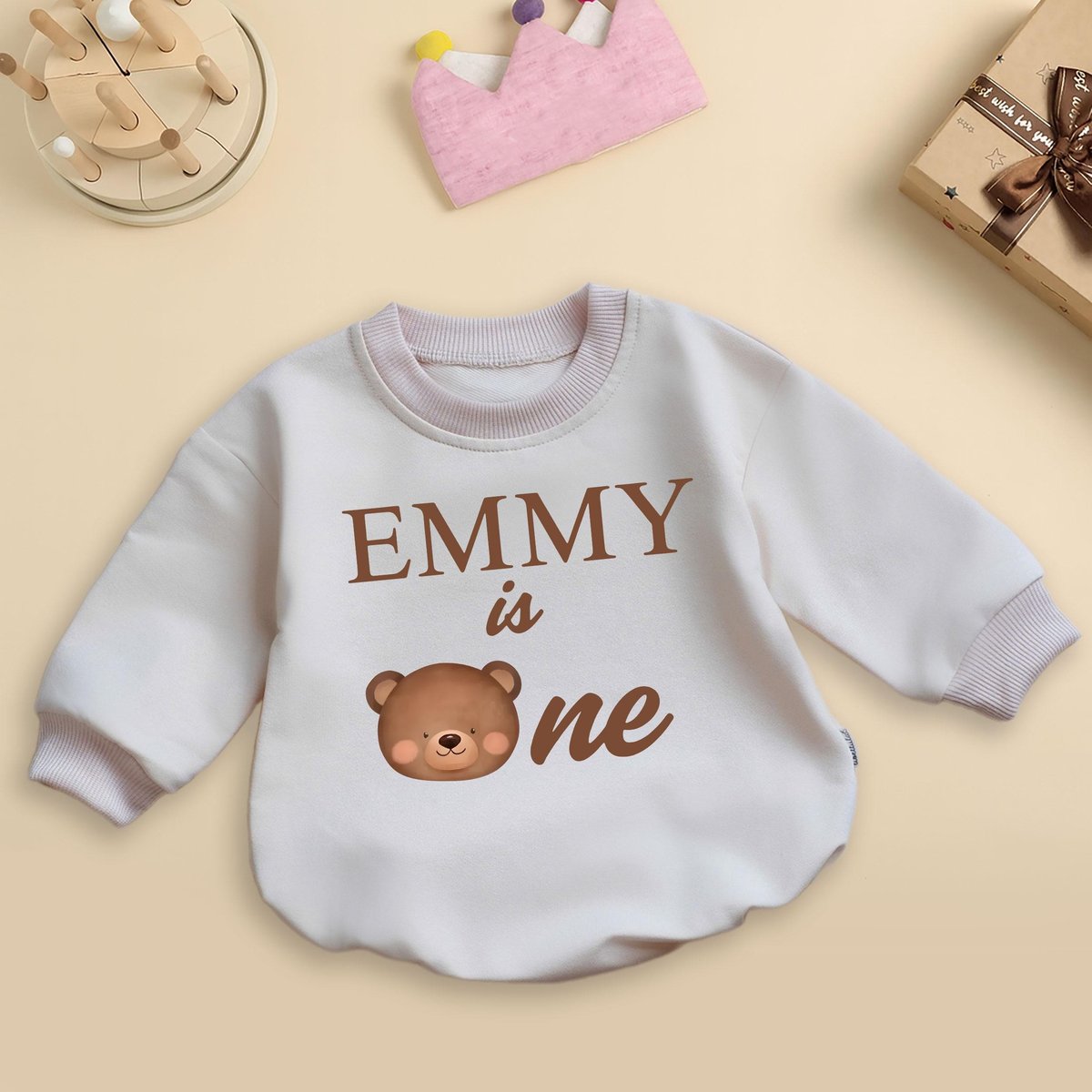 Custom Teddy Bear Birthday Boy Romper Bear First Birthday Bodysuits 1st Birthday baby Outfits Minima 435