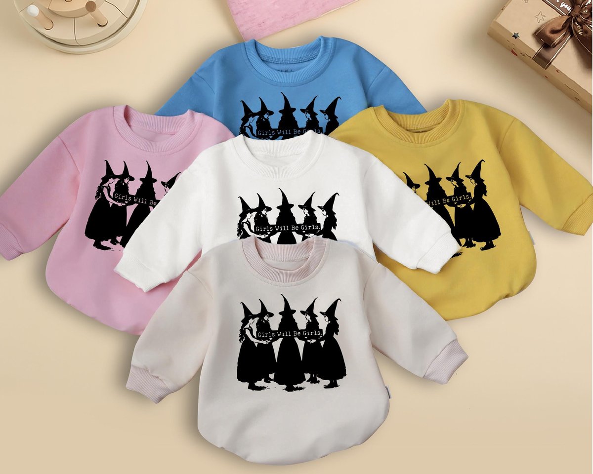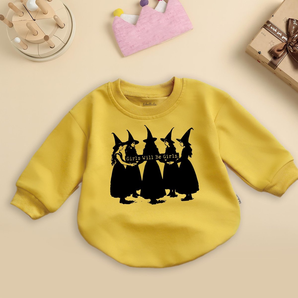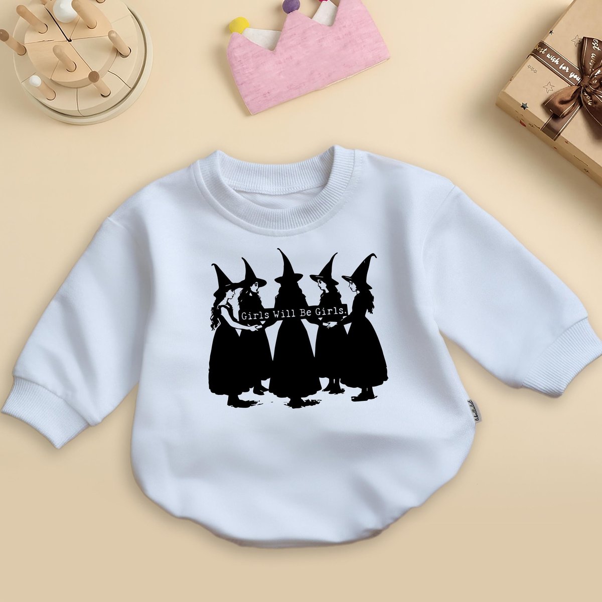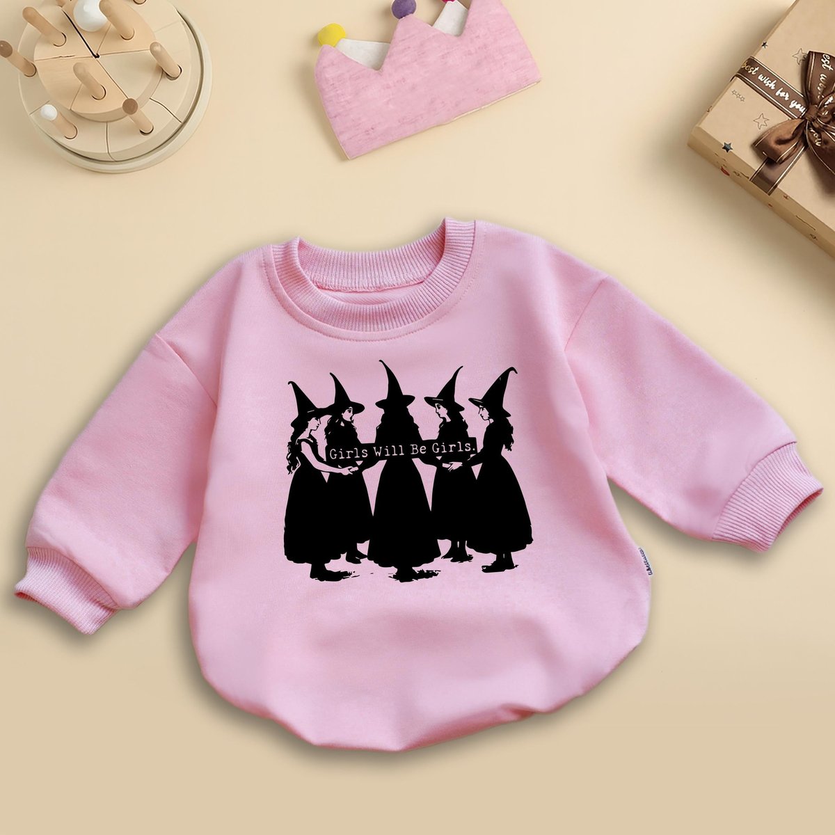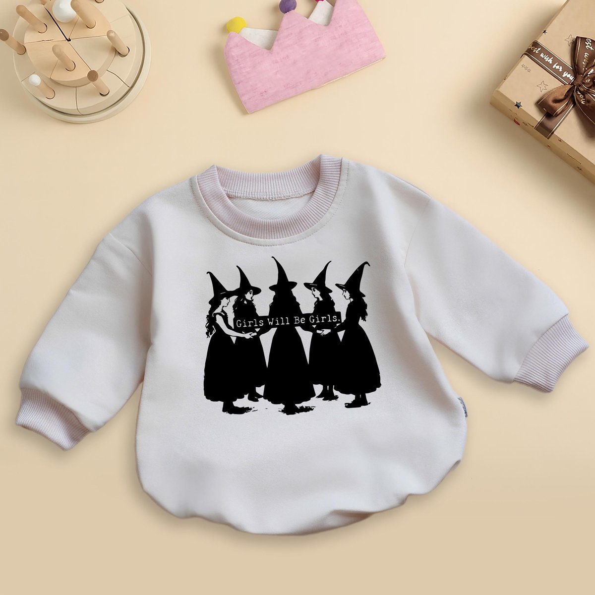 Girls Will Be Girls Baby Sweatshirt Witch Halloween Baby Outfit Baby Shower Gift Newborn Gifts Witch 436
